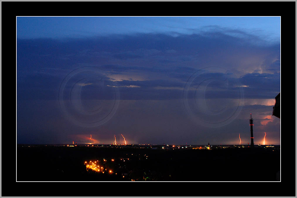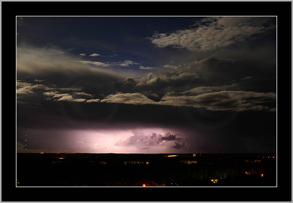A lot of short streaks of light below clouds. If nothing else then at least one can study city silhouette or cloud structure...