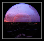 Red rainbow is born, when the sun is in the horizon and is about to descend. Red light hits the rain in the opposite horizon creating reb bow. Picture psk1534 shows the sun while in the opposite horizon the red bow 1532 could be seen.