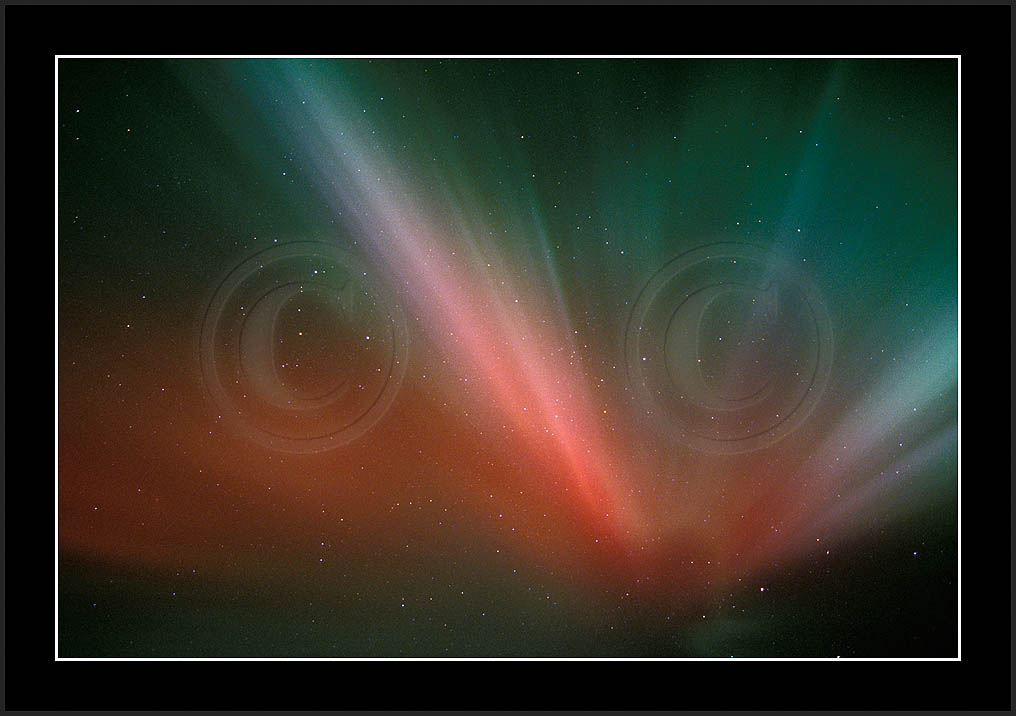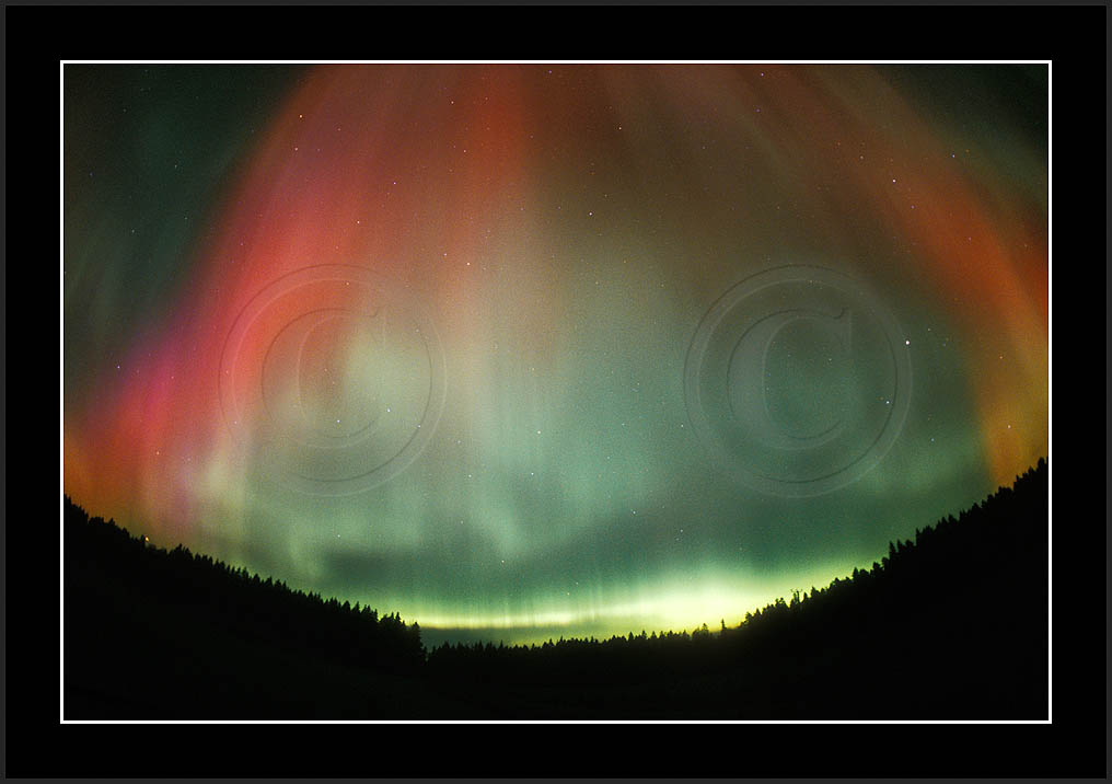 Weather was not optimal (we also lost here many good displays due to daylight), but still several displays were monitored. The best observed at my latitude was 22/23 Oct (starting from image au16742). This display produced exceptionally active corona; it was photographed with 8 mm fisheye using Fuji's Provia 400 push processed to 1600ASA; grainy image is the price to pay to freeze movement. Pay attention to the many shapes of corona found in 8 mm pictures.