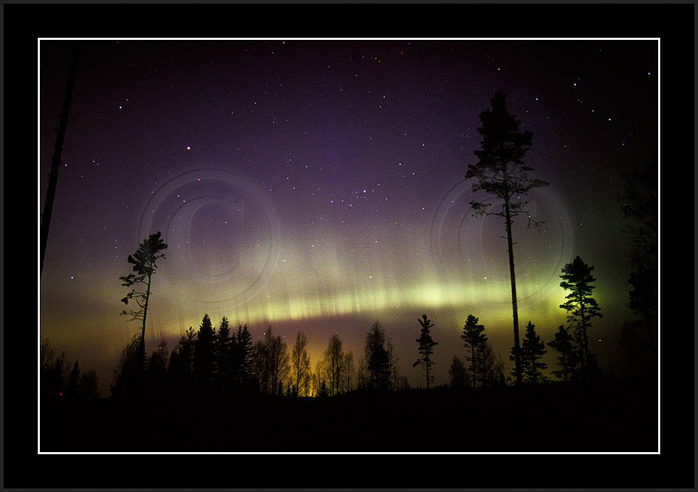 Autumn 2002 turned out to be a good period for auroras. Already in light late summer sky Aug 9/10 during Perseid watch a lonely arch did show up (re21534), followed by a short lived but nice display Sep 3/4 (re21631-re21732). Sep continued with increased activity in 7/8, but unfortunately I had a most severe fog much of the night and could not get too good a history of that night (re21832 and re 21953). Then, finally after having got the first truly dark skies, in Sep 10/11 a good display was witnessed (re22124-re23332) followed by another less spectacular on in Sep 11/12 (images re23433...). For Oct 2002 see two next pages.