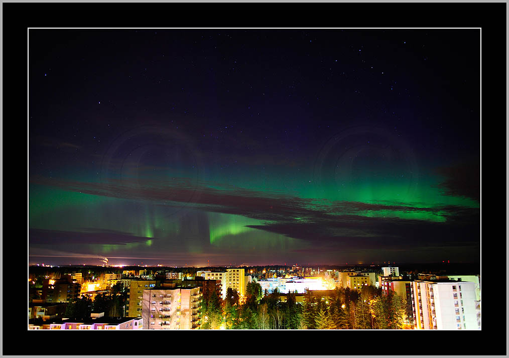 My latitude 60N has not since 2006 experienced any reasonable aurora show - not to speak of a great show. Just five samples from April 2009 were posted in April 2011! The greens in my first digital auroras are still too caramel even though saturation was greatly reduced.