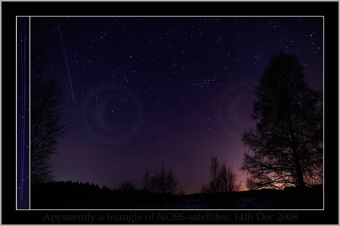 Only bright Iridium flares are shown here. People have different opinions of Iridium flares: It is great to have these stunning lights in the night sky; even more so because in internet one can find accurate predictions of times and coordinates of the flashes. Or it is pity that purely nature's own phenomenon - bright meteors - this way became inflated; during old times a big meteor was the reward of tens of nights spent outdoors; it was one major motivation to continue night watches.
