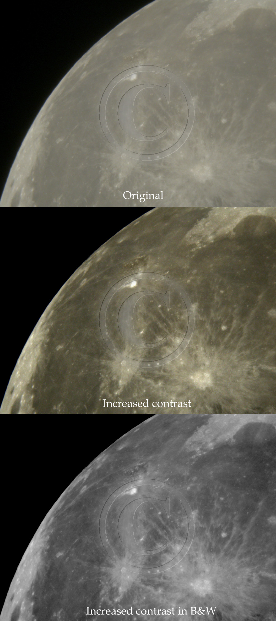 Images have not been made too contrasty, although some details would jump out a lot better if this was done. Below you see original image and some higher contrast versions of it. This kind of contrast enchangement can be used in any image if appropriate.