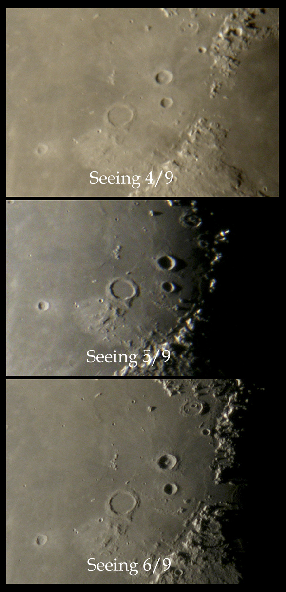 *Seeing 6 means that exposing a lot it is possible to find some relatively sharp magnified crater images, but it is also evident that they are not yet the best possible. On some occasions these can be used to average 2 or more images to get a smoother look.