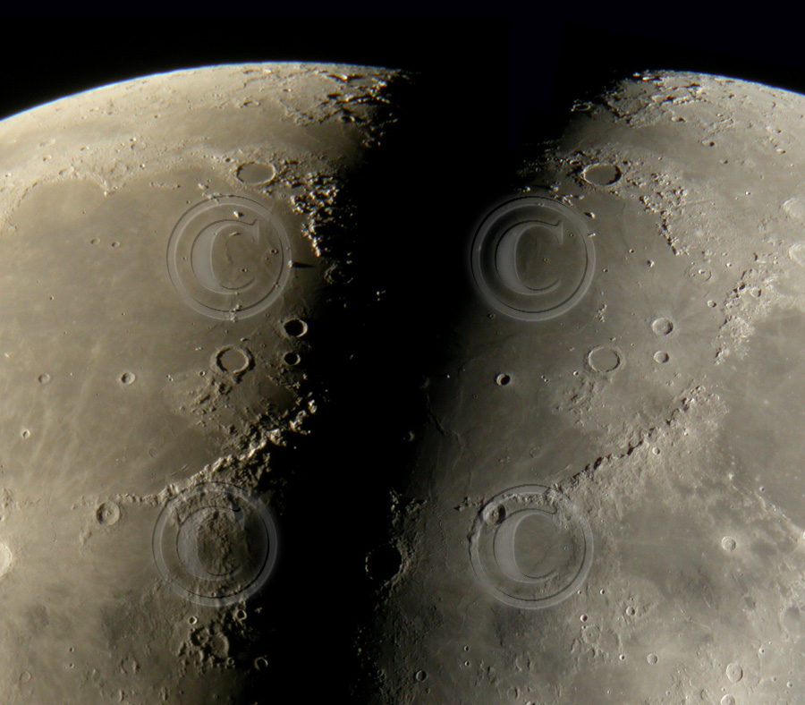 It is a bit pity that the height of the images had to be kept quite small to avoid too severe a stretching in horizontal direction.Typically full resolution TIF-files are between 11-17 MB. These images at their full size have the resolution given in category "Lunar phases". (See also Tuning lunar images .)