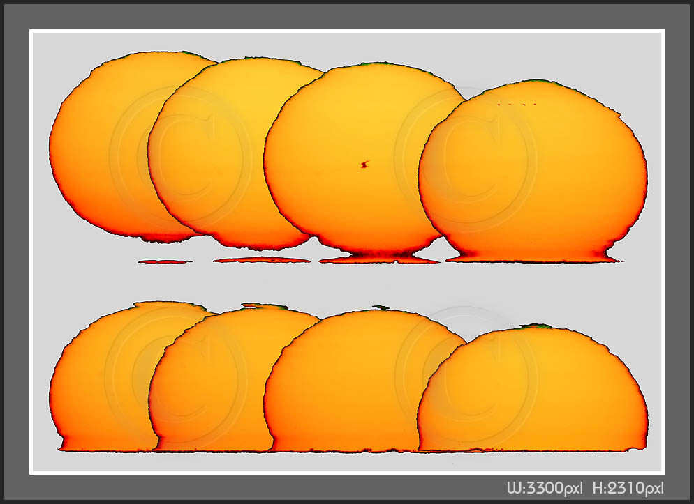 So, my solar distortion and green flash are now digital. Next thumbnail pages have been photographed 2009 on my new vantage point at sea level. Here is a number of facts to keep in mind while going through pictures.