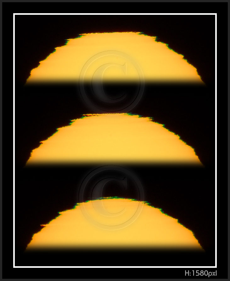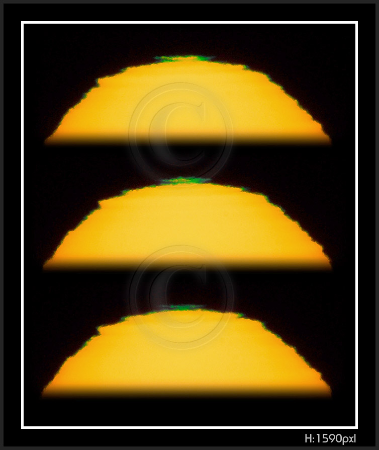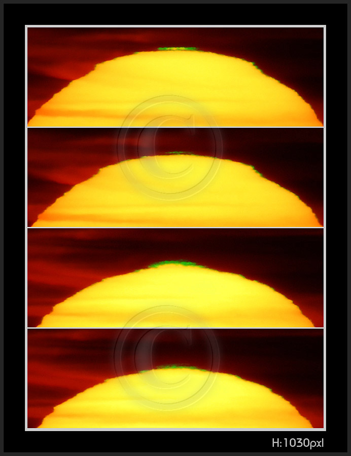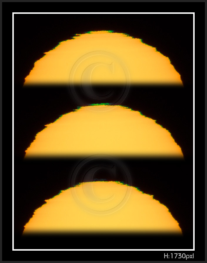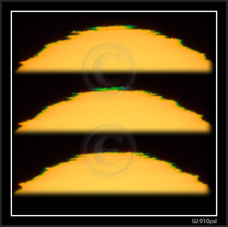 So, my solar distortion and green flash are now digital. Next thumbnail pages have been photographed 2009 on my new vantage point at sea level. Here is a number of facts to keep in mind while going through pictures.