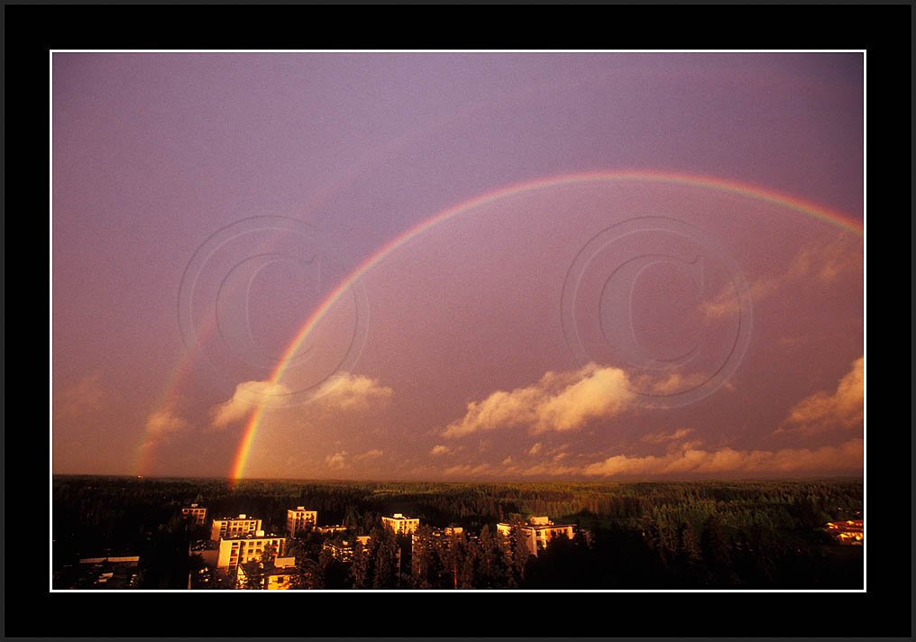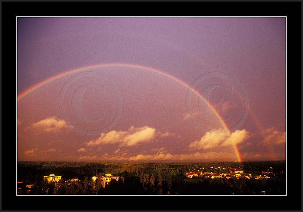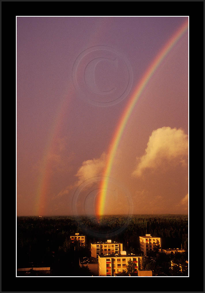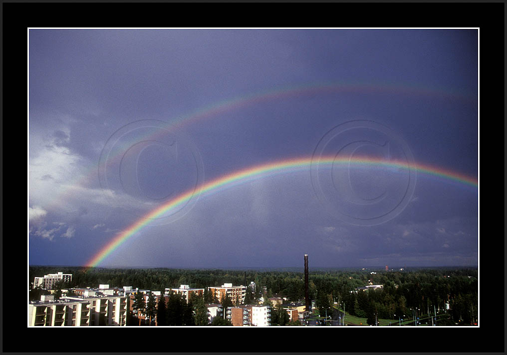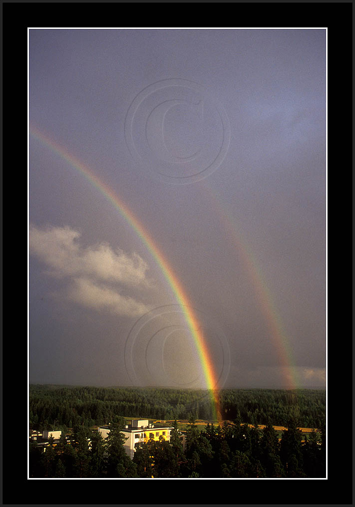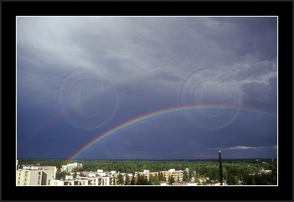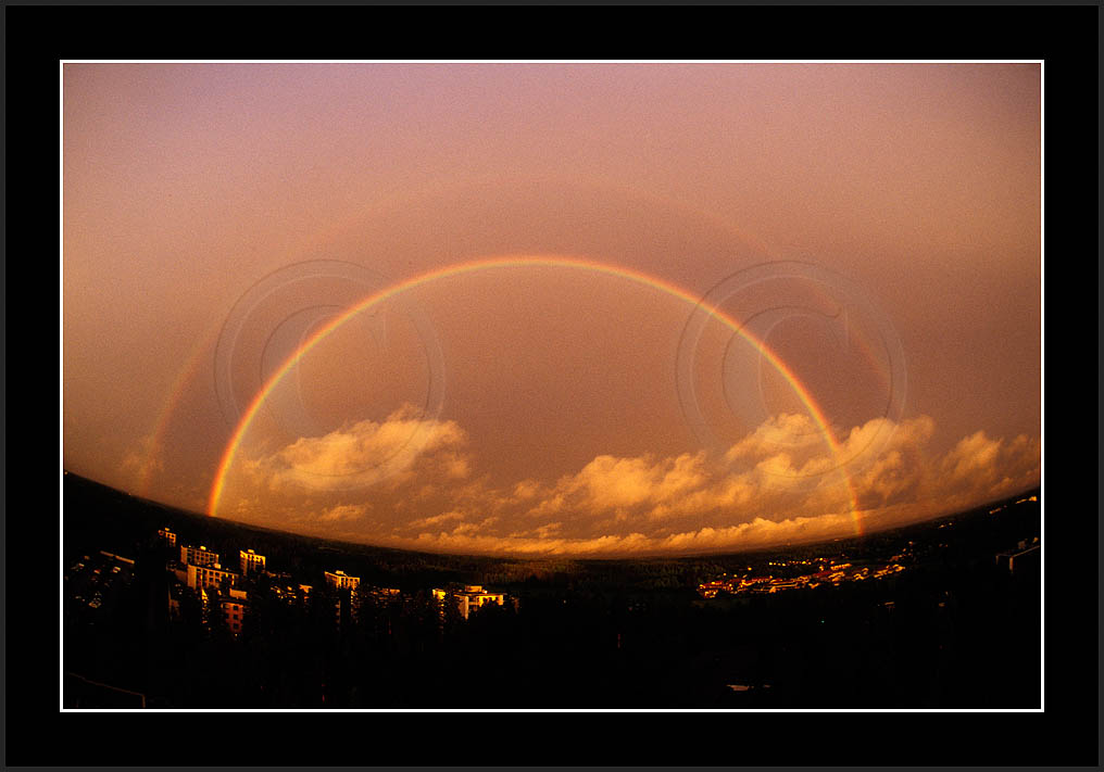 Image sk01711 is photographed in moonlight. It is my ever first sighting of this phenomenon (Sep 2001). Upper right corner has turqoise colour due to aurora. The last two rows show good samples of supernumerary bows.