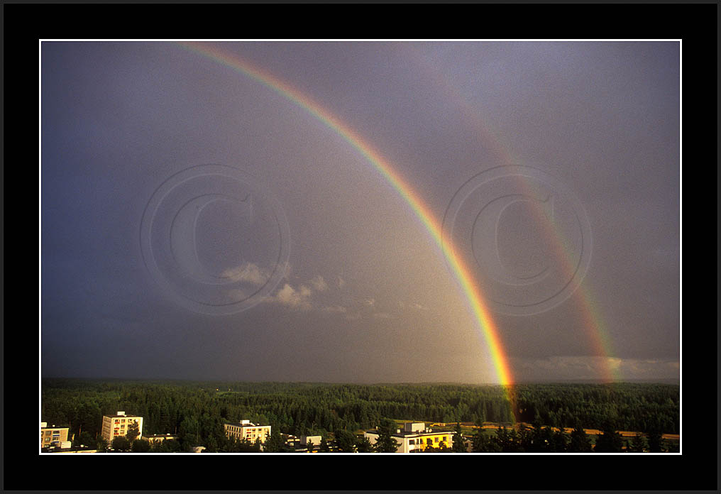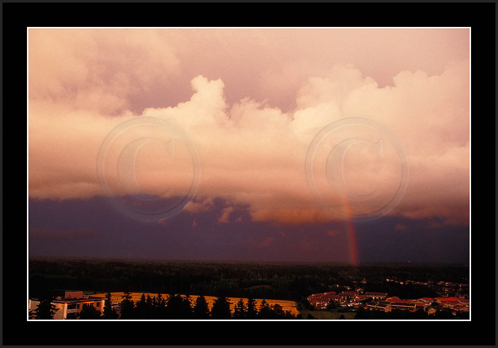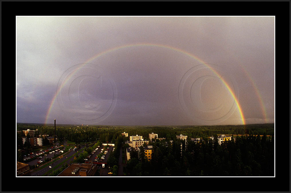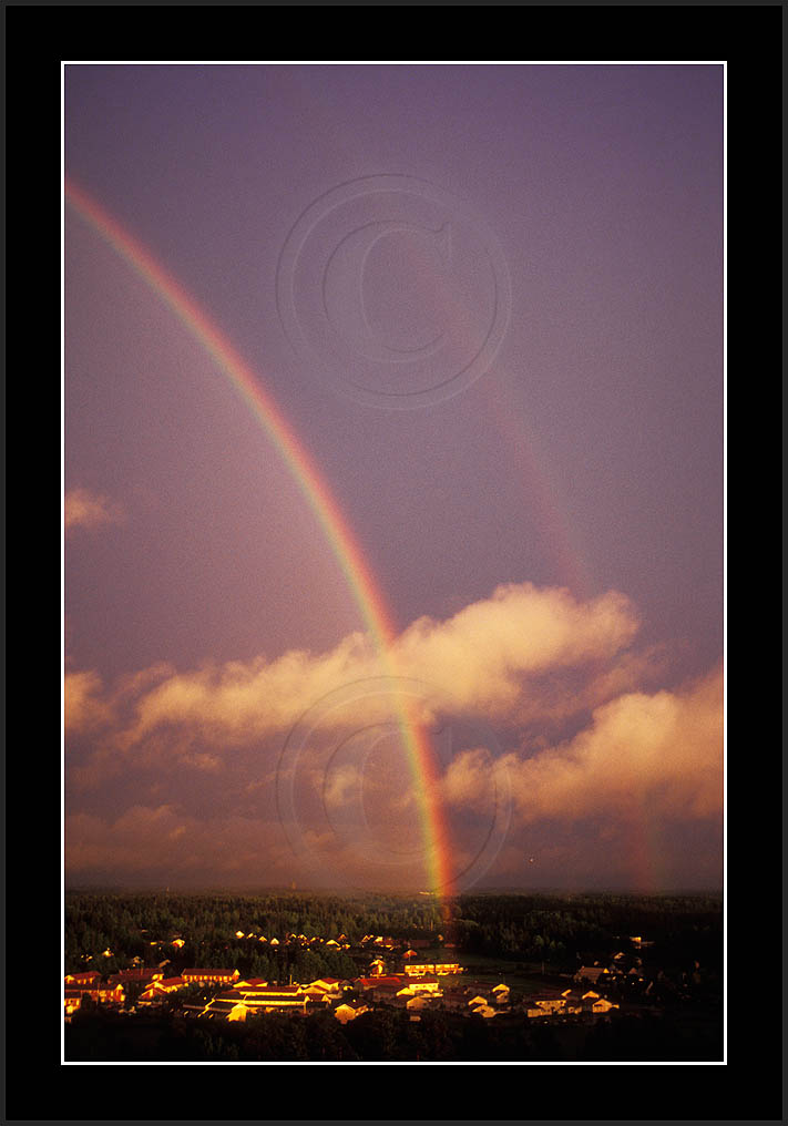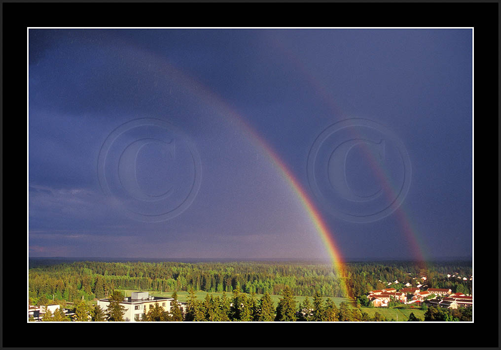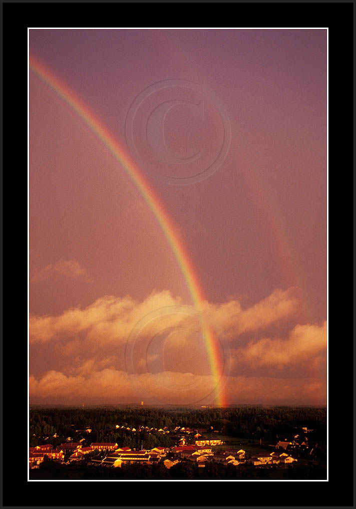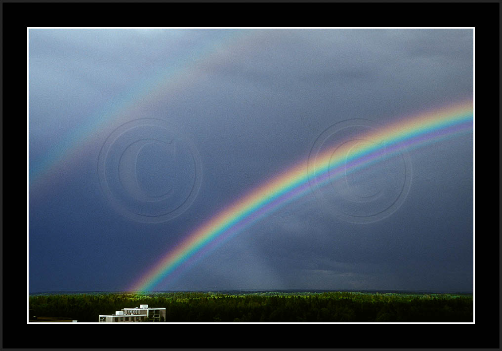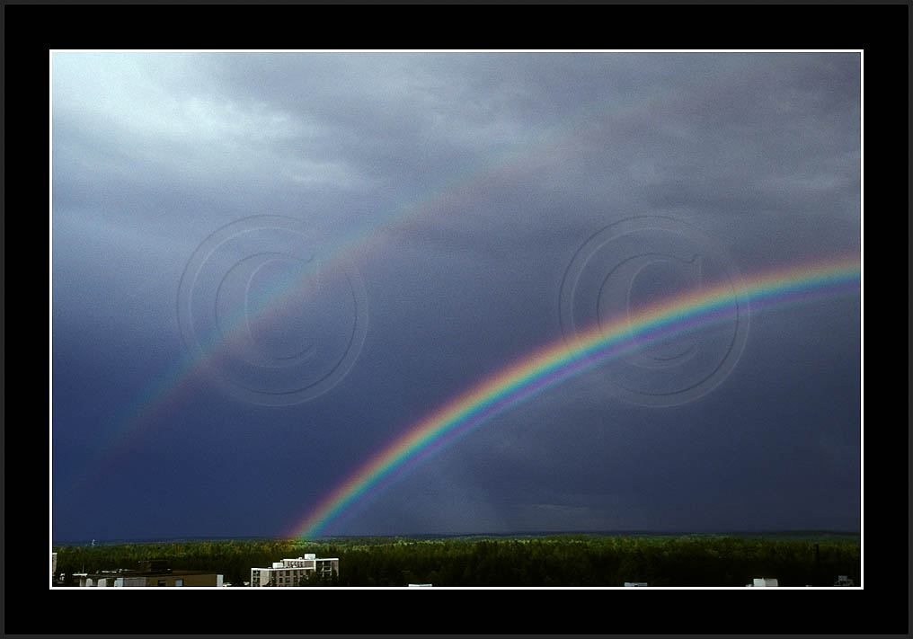 Image sk01711 is photographed in moonlight. It is my ever first sighting of this phenomenon (Sep 2001). Upper right corner has turqoise colour due to aurora. The last two rows show good samples of supernumerary bows.