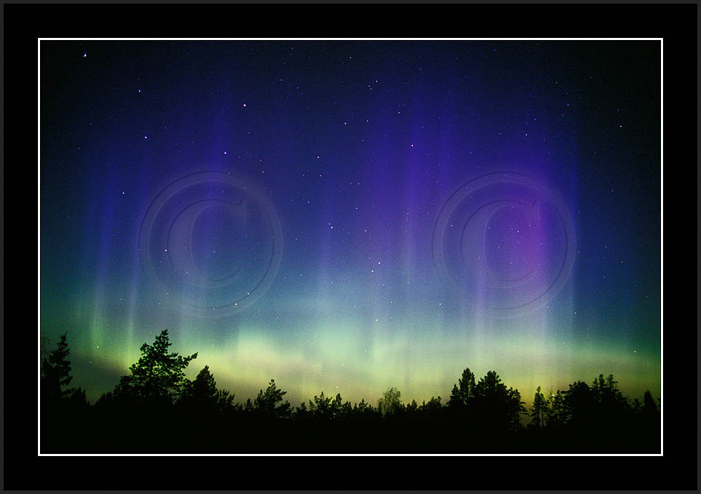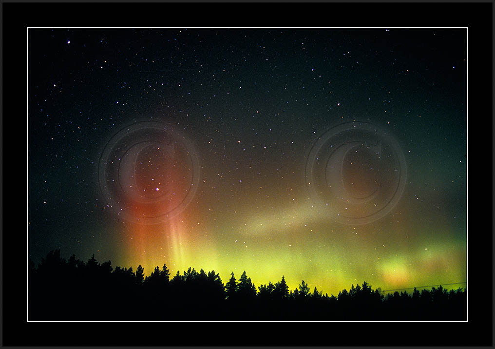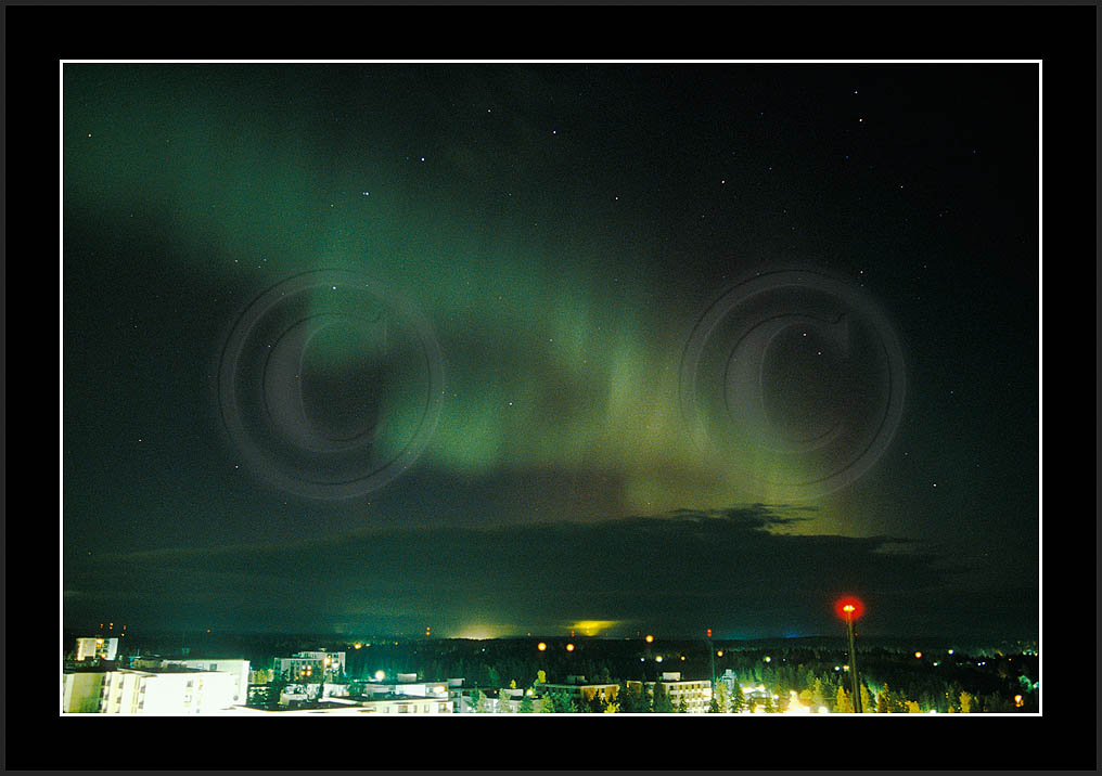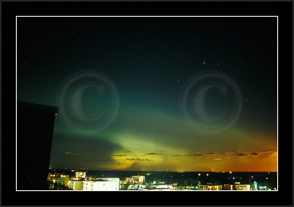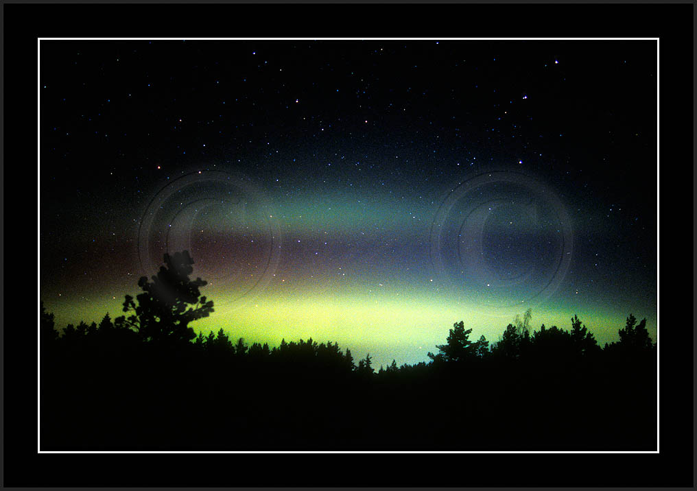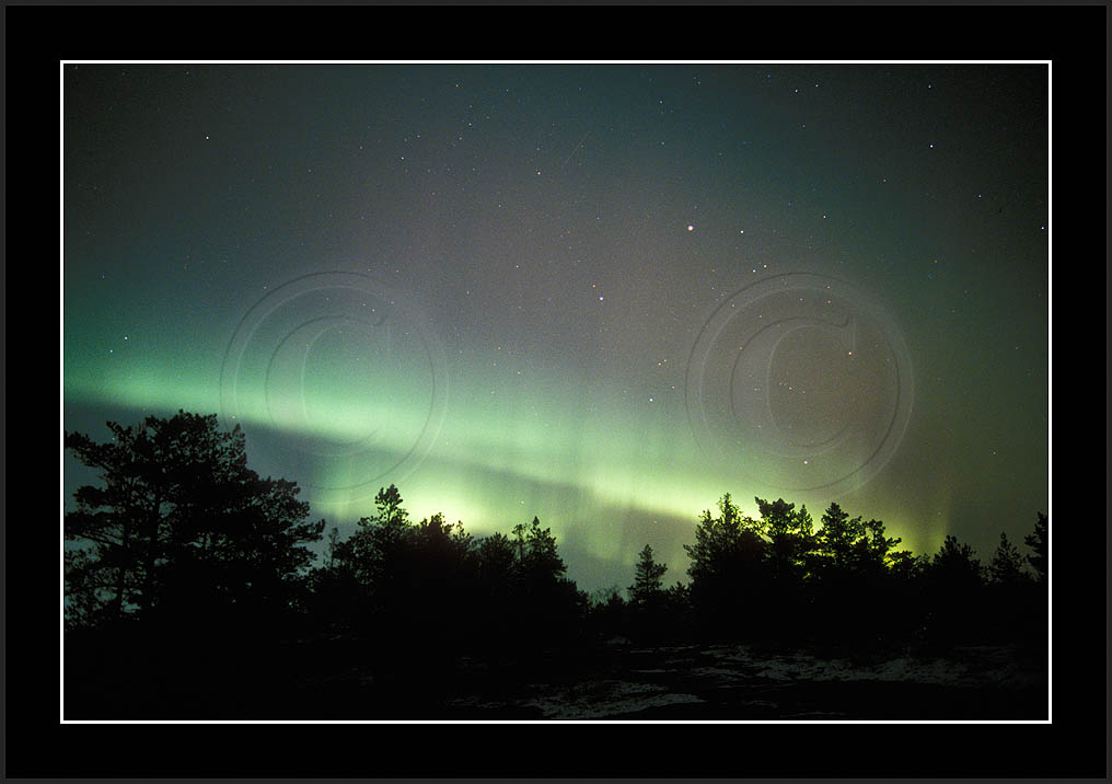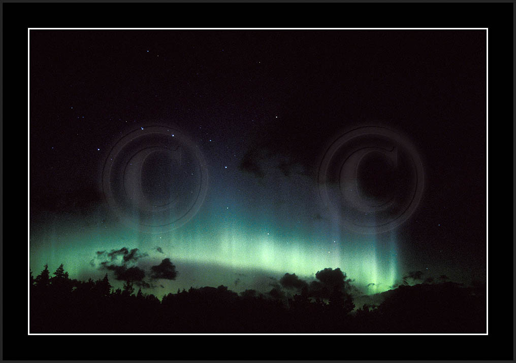 During these years auroral activity was pretty low at my (geomagnetic) latitude. Images re05442-re05553 show how Kodak's new film E100SW made aurora photography very rewarding: one film could catch the whole spectrum of colours. Also Kodak's old and cheaper Elitechrome EB100 gives similair results (both films exposed and developed for 400ASA speed). A bit more is said about films, digital cameras and visual perception on aurora page "Year 2001". Image re06212 is my best recording of simultaneous aurora and noctilucent cloud (NLC). However, showing both phenomena in same scan is hard due to their large difference in brightness. NLC is overexposed between horizon and aurora.