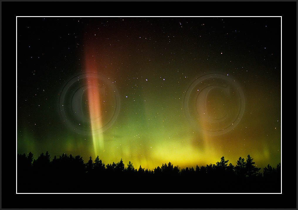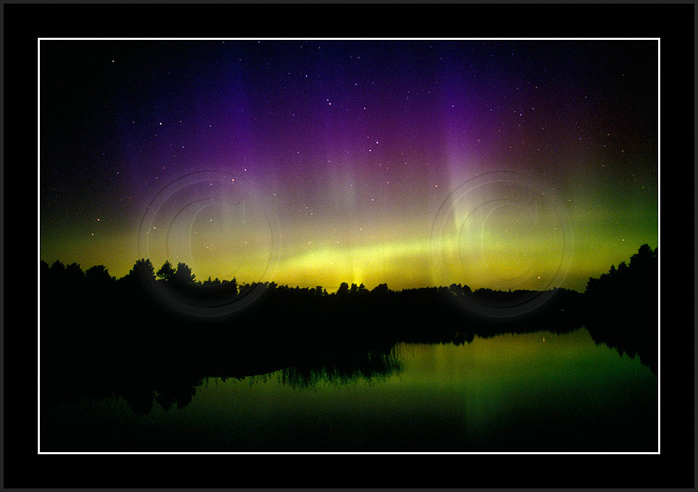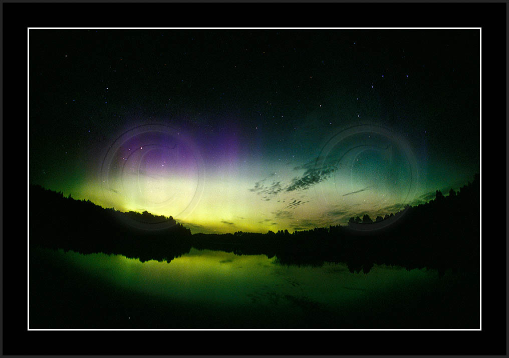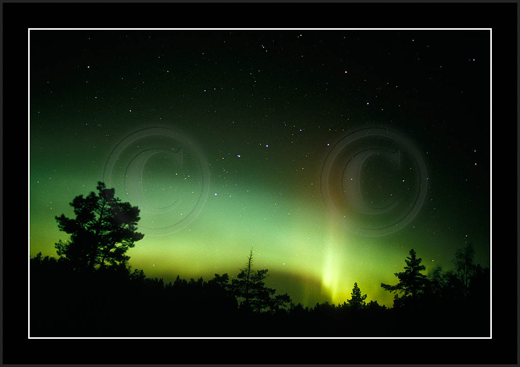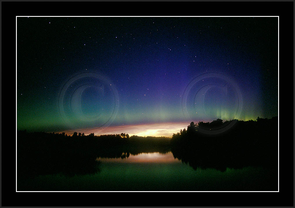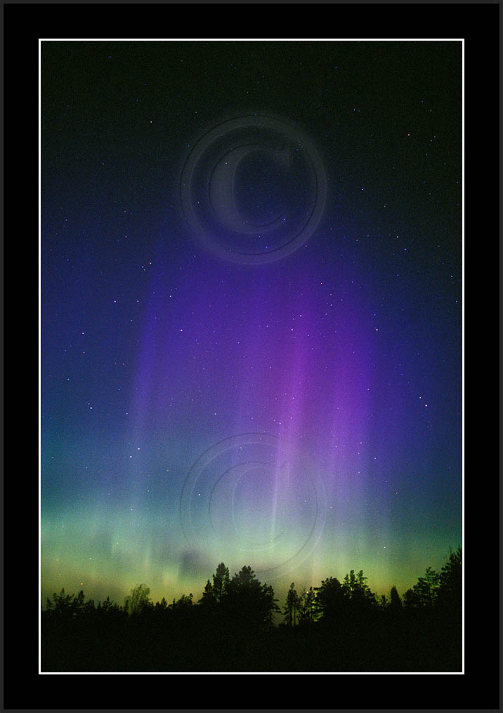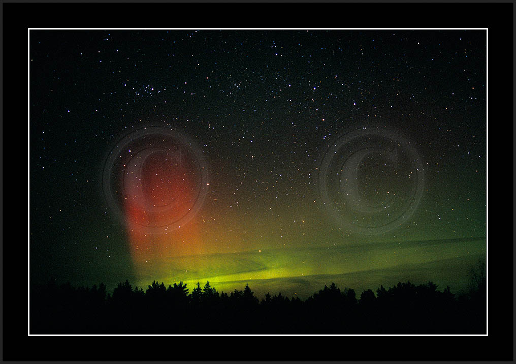 During these years auroral activity was pretty low at my (geomagnetic) latitude. Images re05442-re05553 show how Kodak's new film E100SW made aurora photography very rewarding: one film could catch the whole spectrum of colours. Also Kodak's old and cheaper Elitechrome EB100 gives similair results (both films exposed and developed for 400ASA speed). A bit more is said about films, digital cameras and visual perception on aurora page "Year 2001". Image re06212 is my best recording of simultaneous aurora and noctilucent cloud (NLC). However, showing both phenomena in same scan is hard due to their large difference in brightness. NLC is overexposed between horizon and aurora.