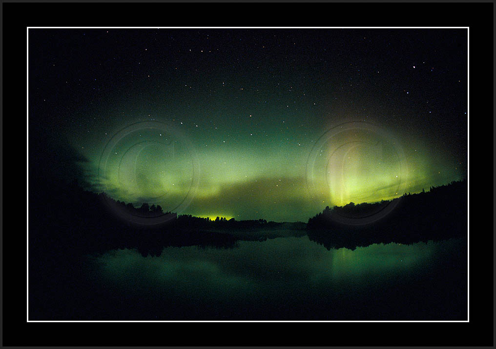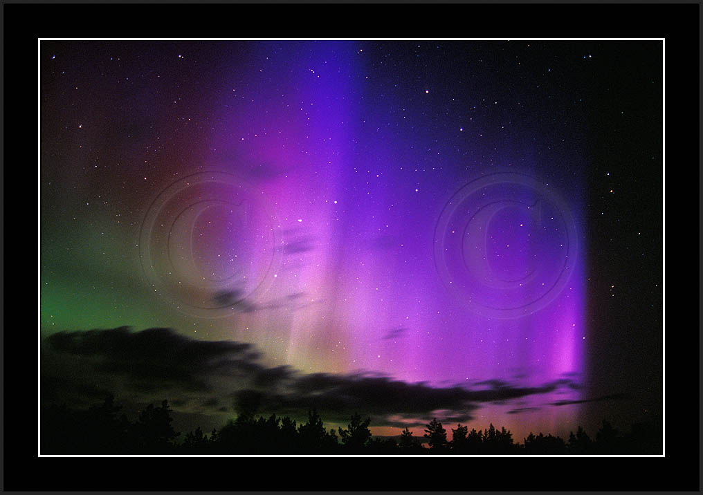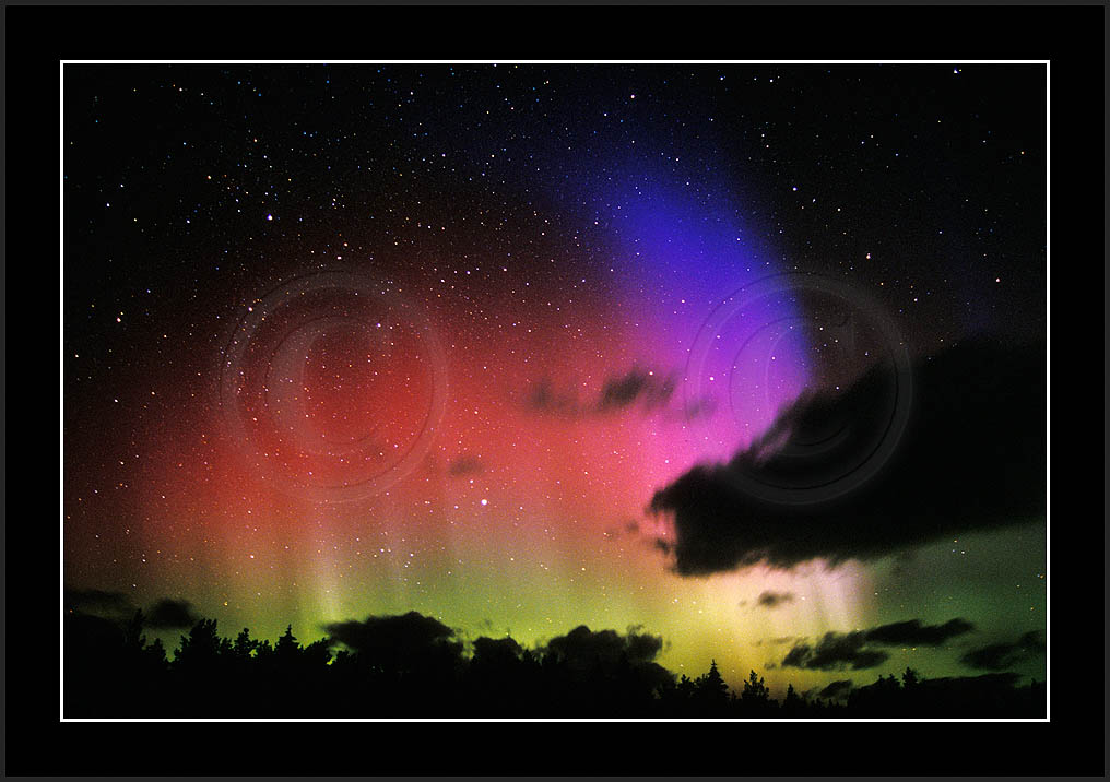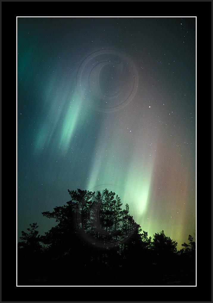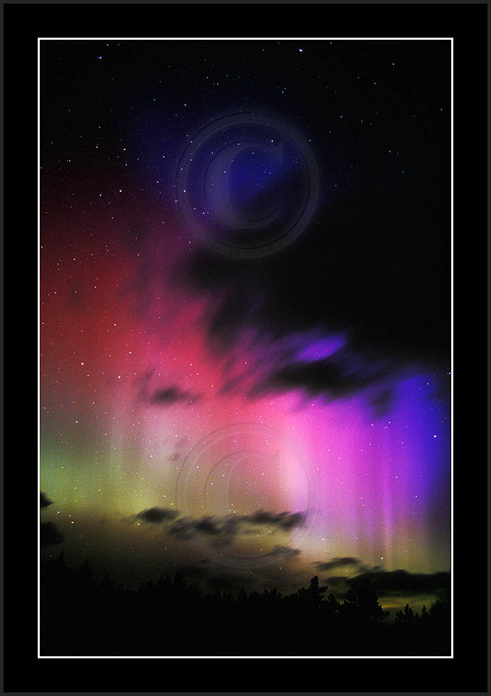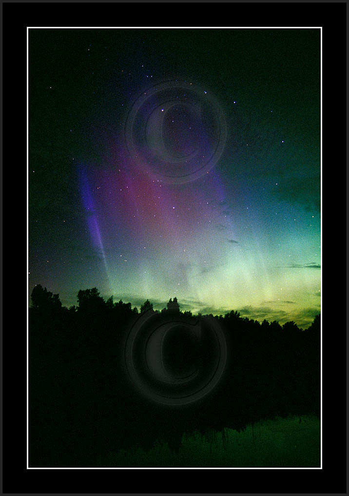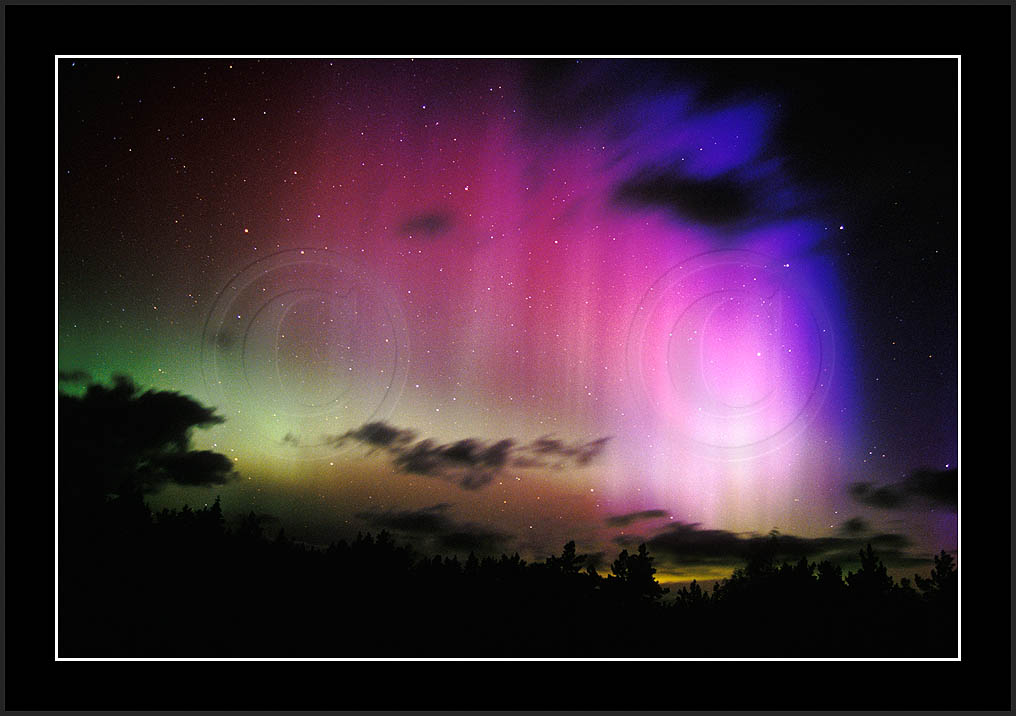 During these years auroral activity was pretty low at my (geomagnetic) latitude. Images re05442-re05553 show how Kodak's new film E100SW made aurora photography very rewarding: one film could catch the whole spectrum of colours. Also Kodak's old and cheaper Elitechrome EB100 gives similair results (both films exposed and developed for 400ASA speed). A bit more is said about films, digital cameras and visual perception on aurora page "Year 2001". Image re06212 is my best recording of simultaneous aurora and noctilucent cloud (NLC). However, showing both phenomena in same scan is hard due to their large difference in brightness. NLC is overexposed between horizon and aurora.