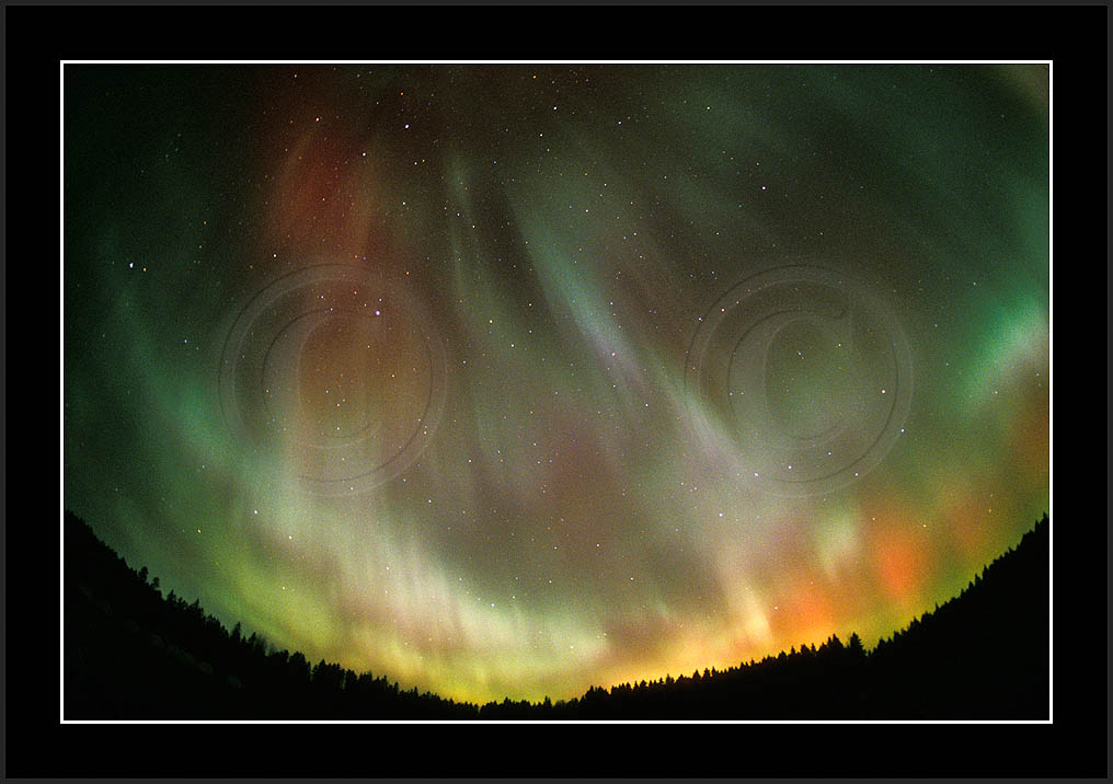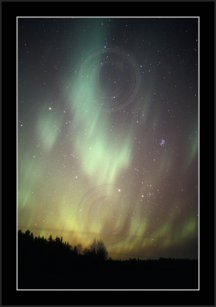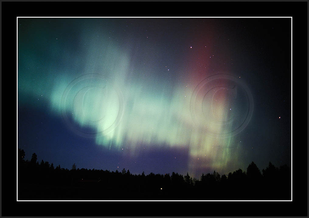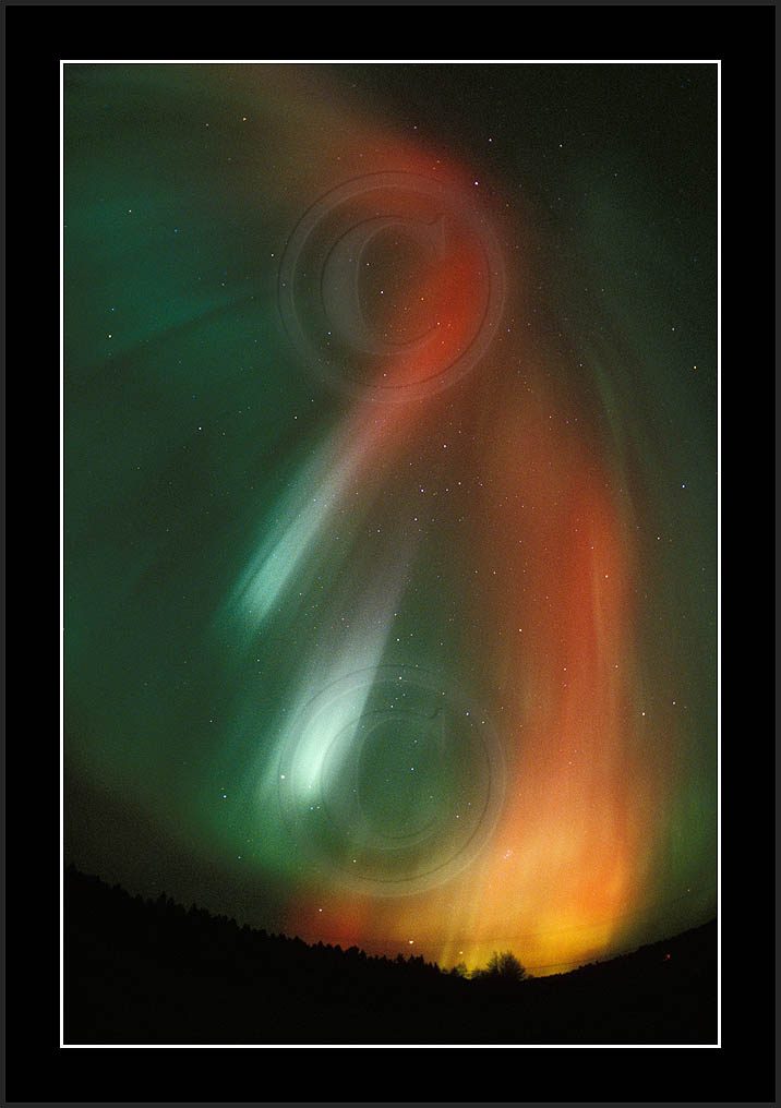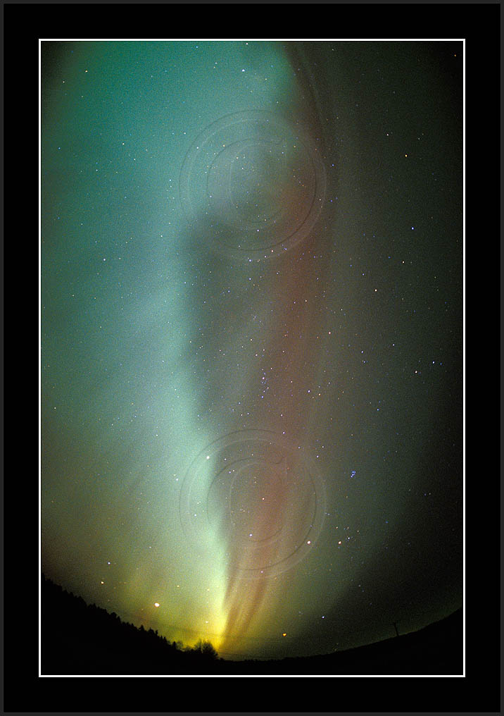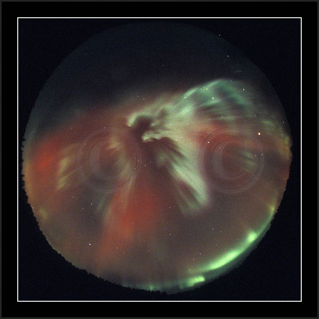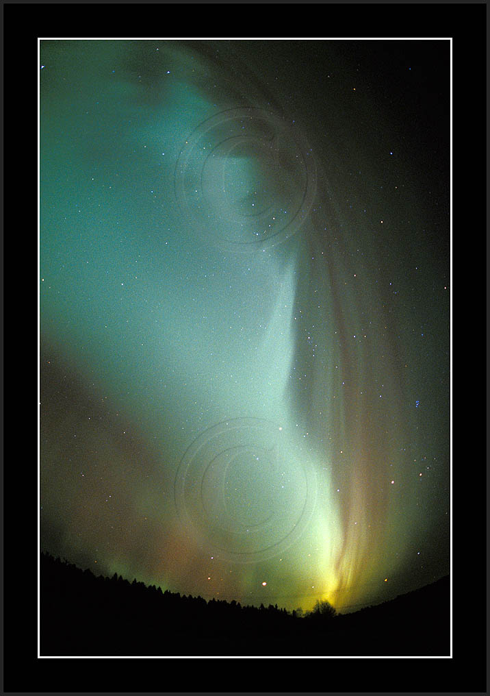 Weather was not optimal (we also lost here many good displays due to daylight), but still several displays were monitored. The best observed at my latitude was 22/23 Oct (starting from image au16742). This display produced exceptionally active corona; it was photographed with 8 mm fisheye using Fuji's Provia 400 push processed to 1600ASA; grainy image is the price to pay to freeze movement. Pay attention to the many shapes of corona found in 8 mm pictures.