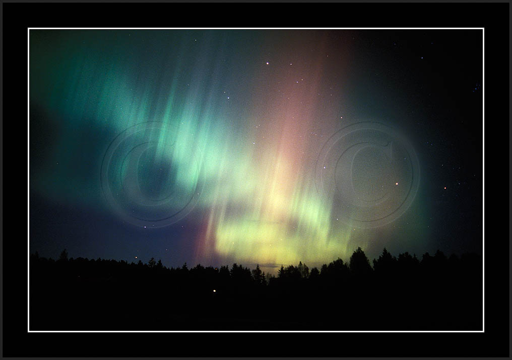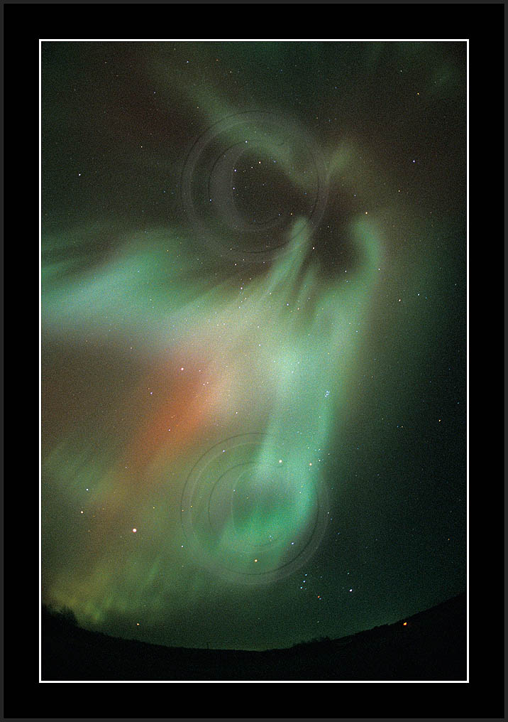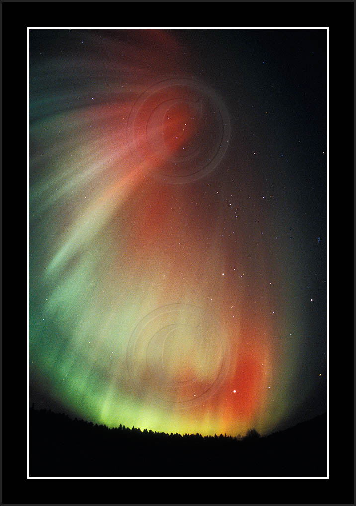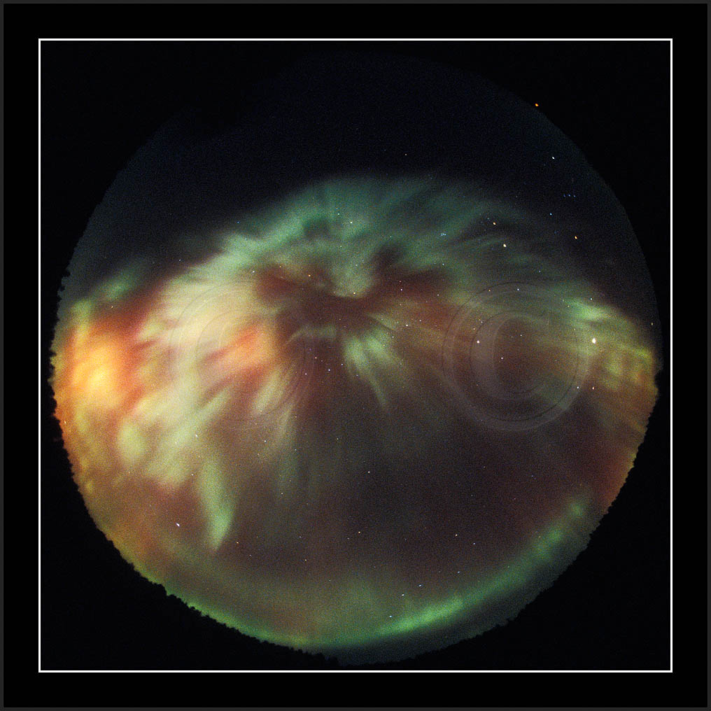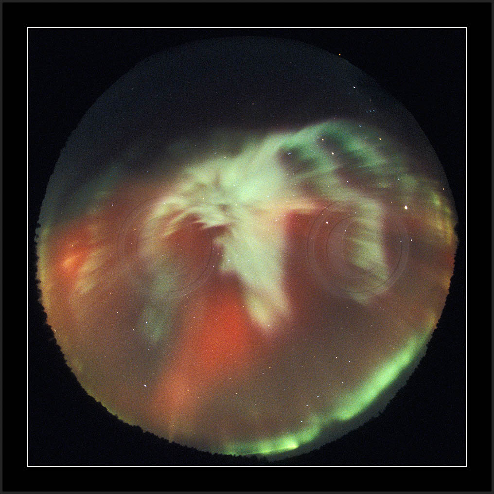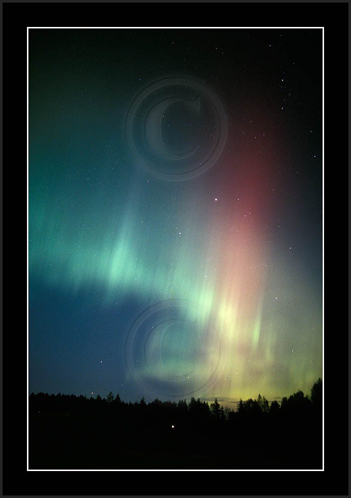 Weather was not optimal (we also lost here many good displays due to daylight), but still several displays were monitored. The best observed at my latitude was 22/23 Oct (starting from image au16742). This display produced exceptionally active corona; it was photographed with 8 mm fisheye using Fuji's Provia 400 push processed to 1600ASA; grainy image is the price to pay to freeze movement. Pay attention to the many shapes of corona found in 8 mm pictures.