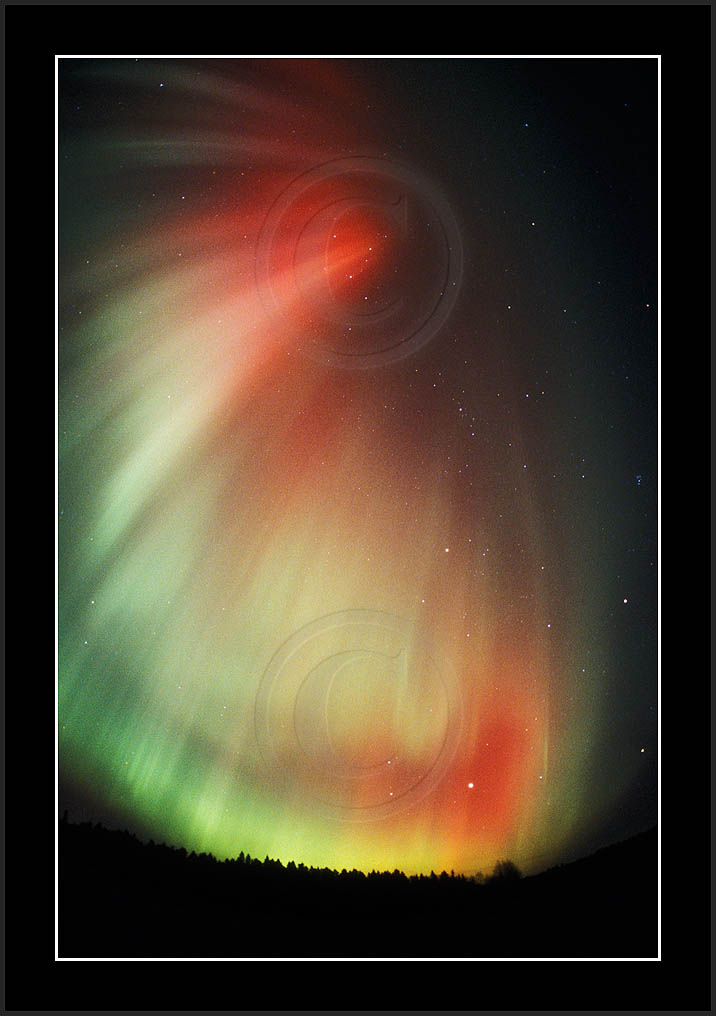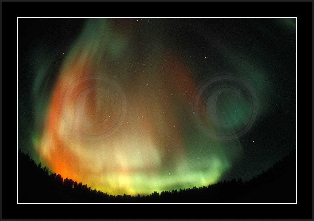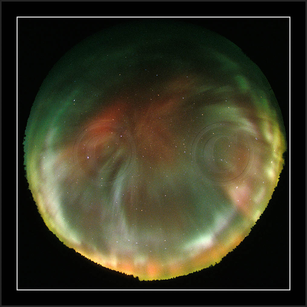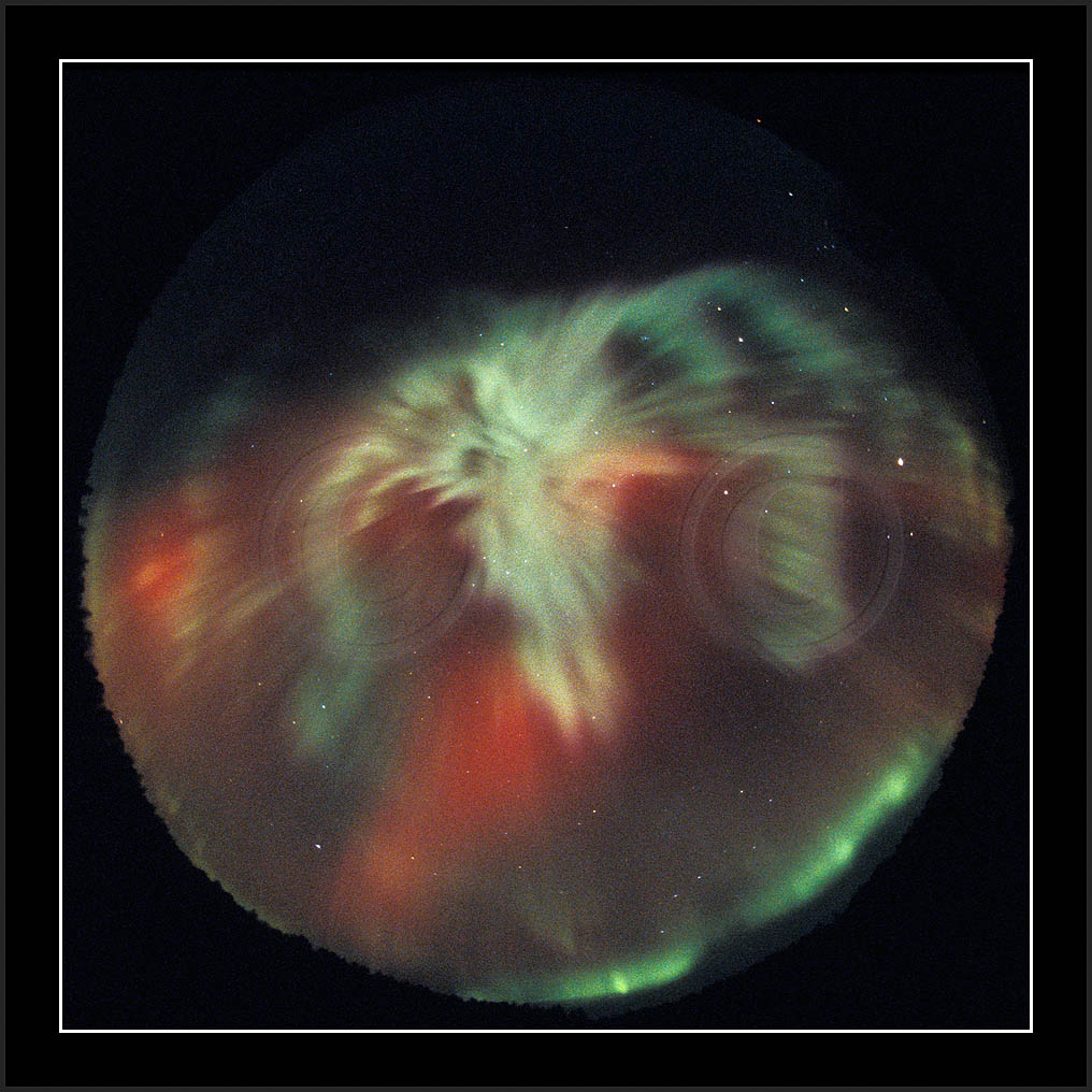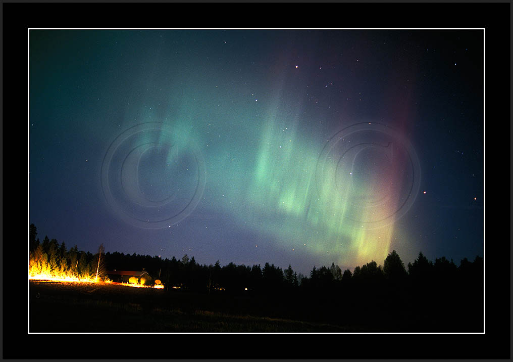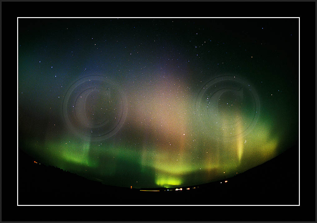 Weather was not optimal (we also lost here many good displays due to daylight), but still several displays were monitored. The best observed at my latitude was 22/23 Oct (starting from image au16742). This display produced exceptionally active corona; it was photographed with 8 mm fisheye using Fuji's Provia 400 push processed to 1600ASA; grainy image is the price to pay to freeze movement. Pay attention to the many shapes of corona found in 8 mm pictures.