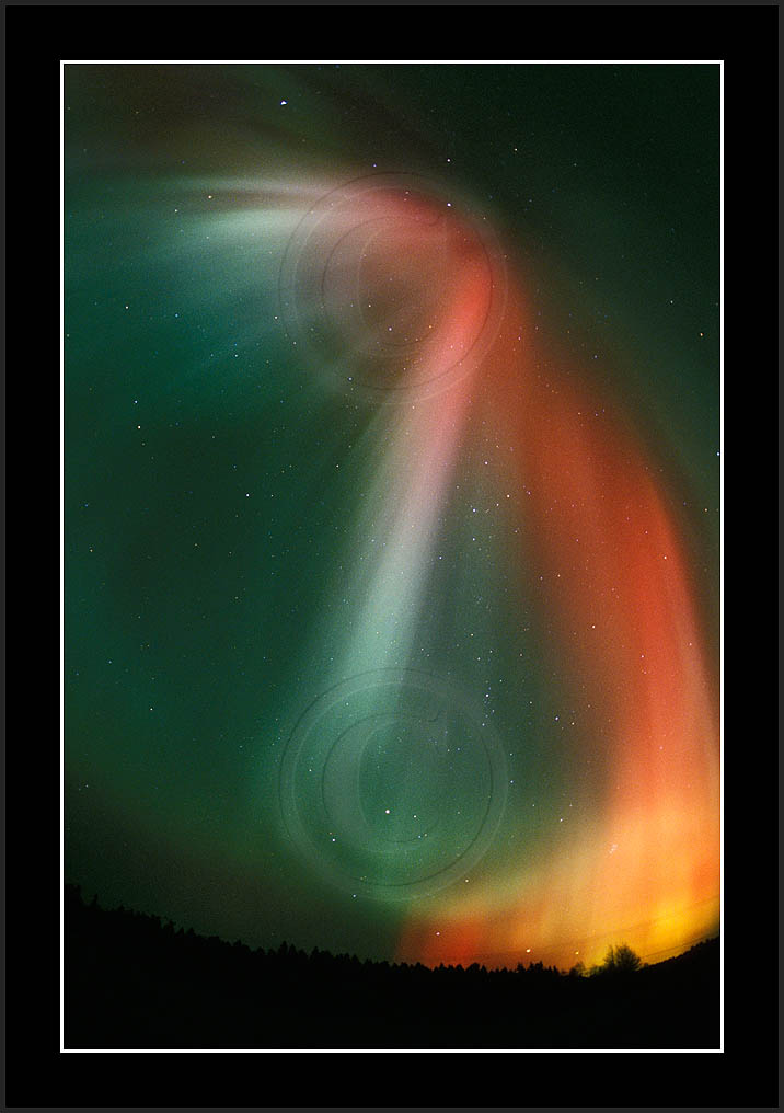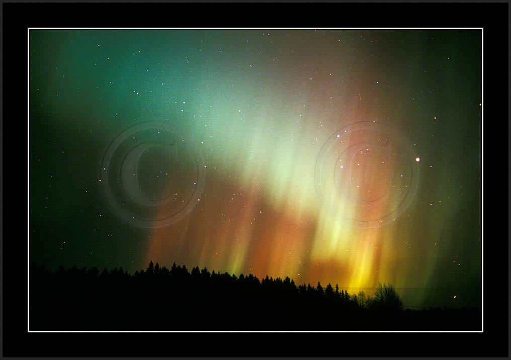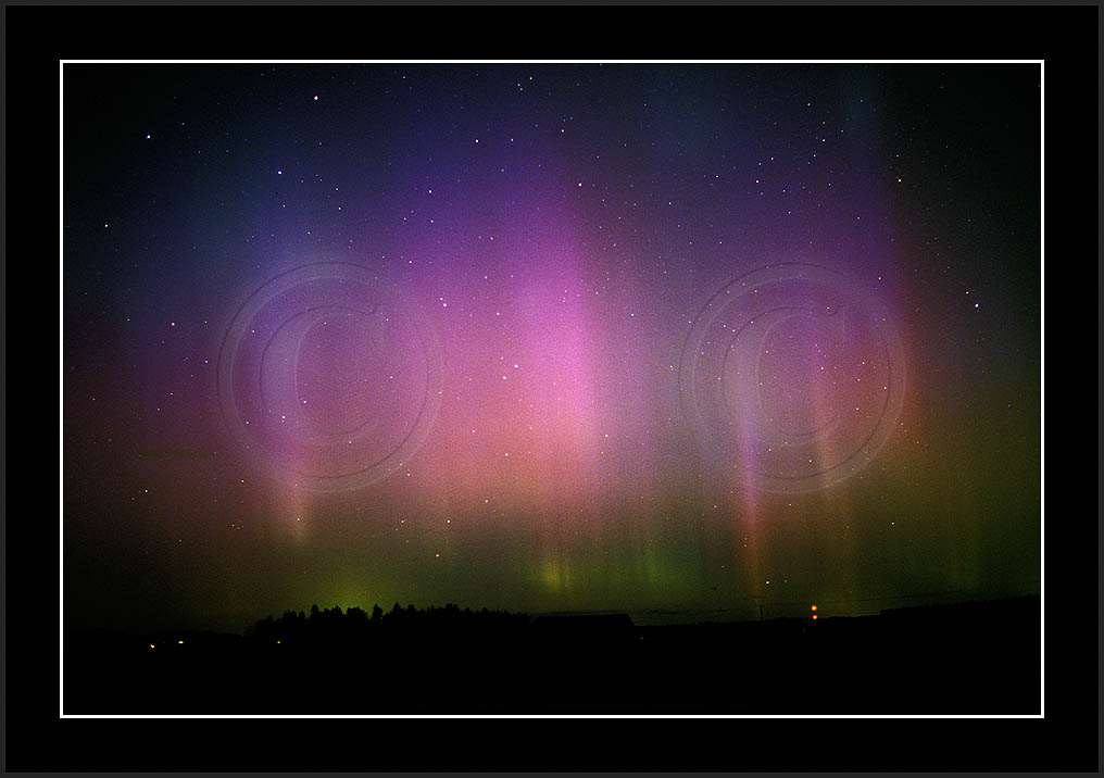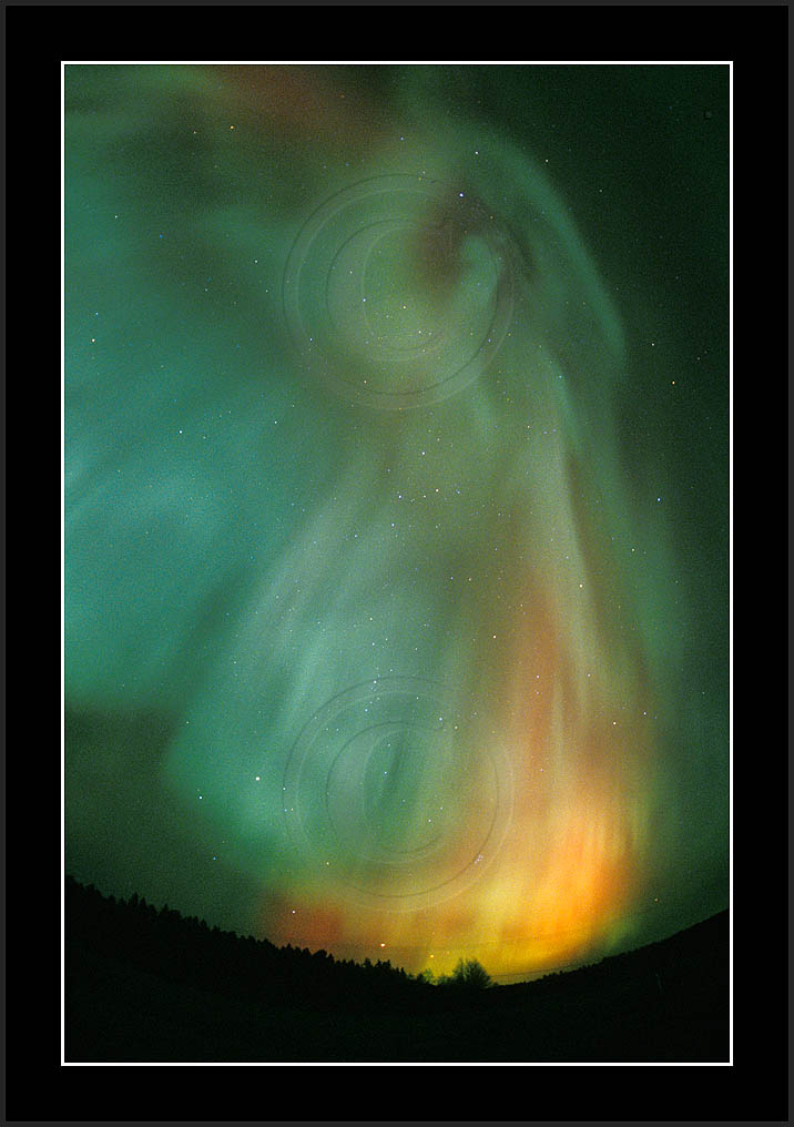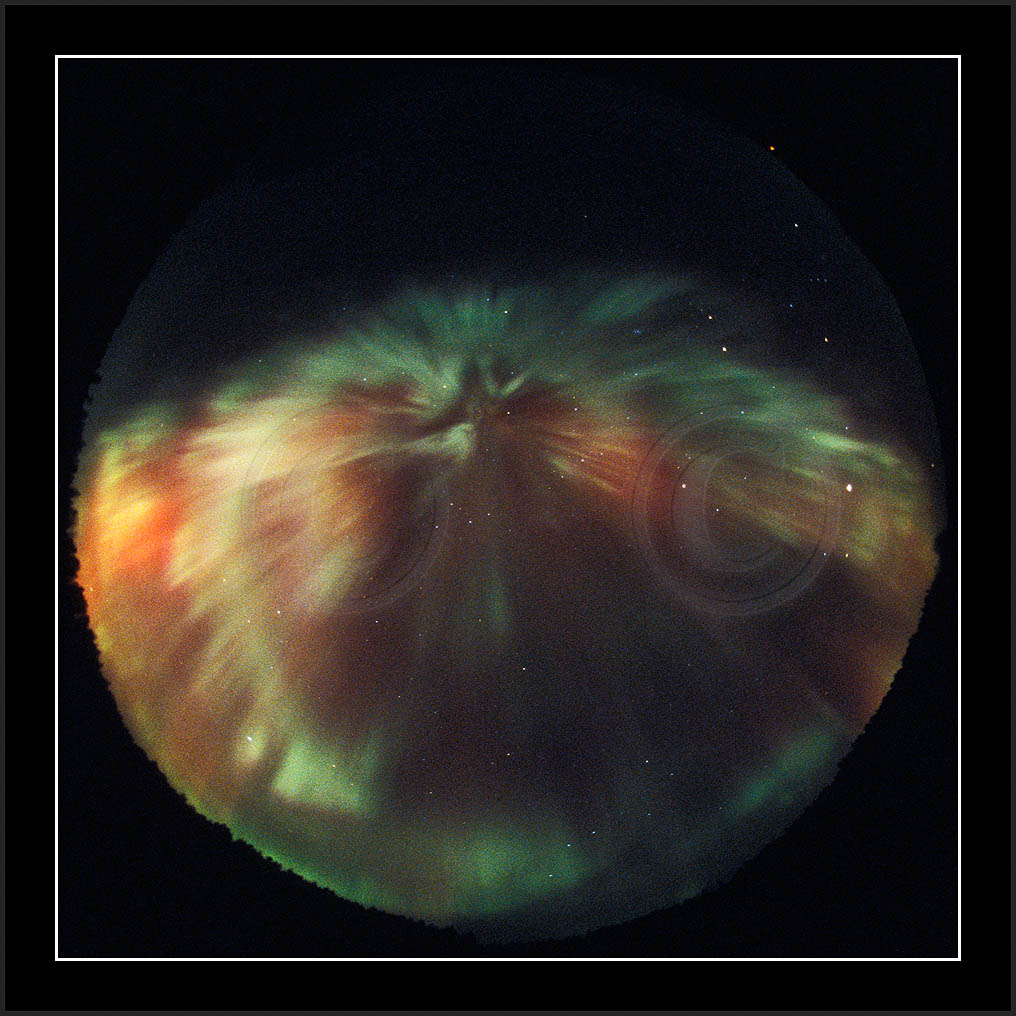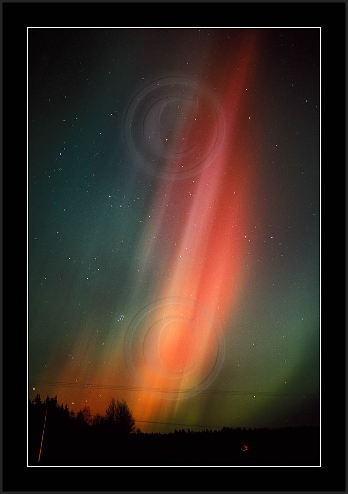 Weather was not optimal (we also lost here many good displays due to daylight), but still several displays were monitored. The best observed at my latitude was 22/23 Oct (starting from image au16742). This display produced exceptionally active corona; it was photographed with 8 mm fisheye using Fuji's Provia 400 push processed to 1600ASA; grainy image is the price to pay to freeze movement. Pay attention to the many shapes of corona found in 8 mm pictures.