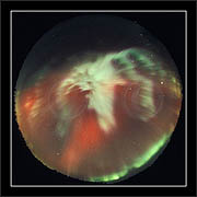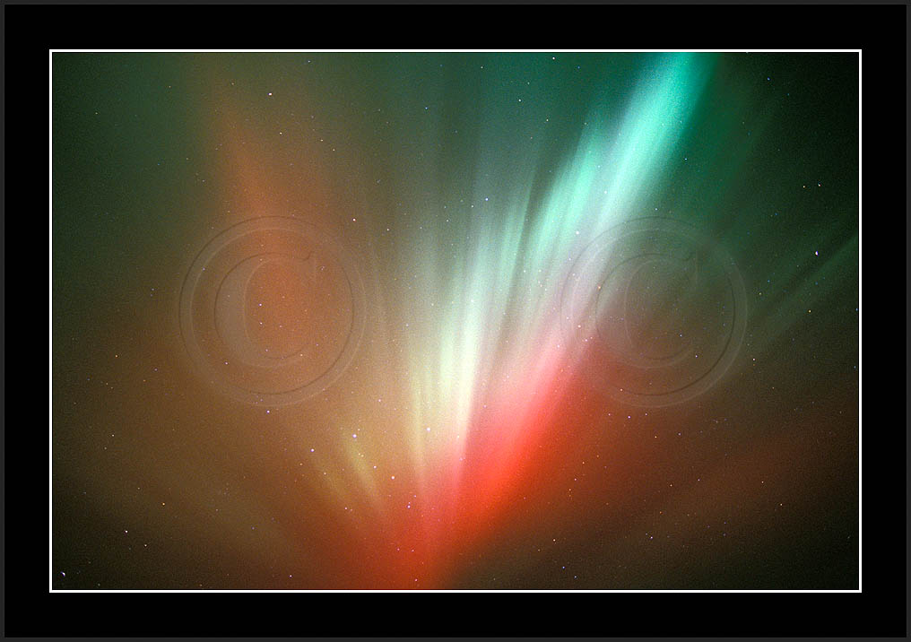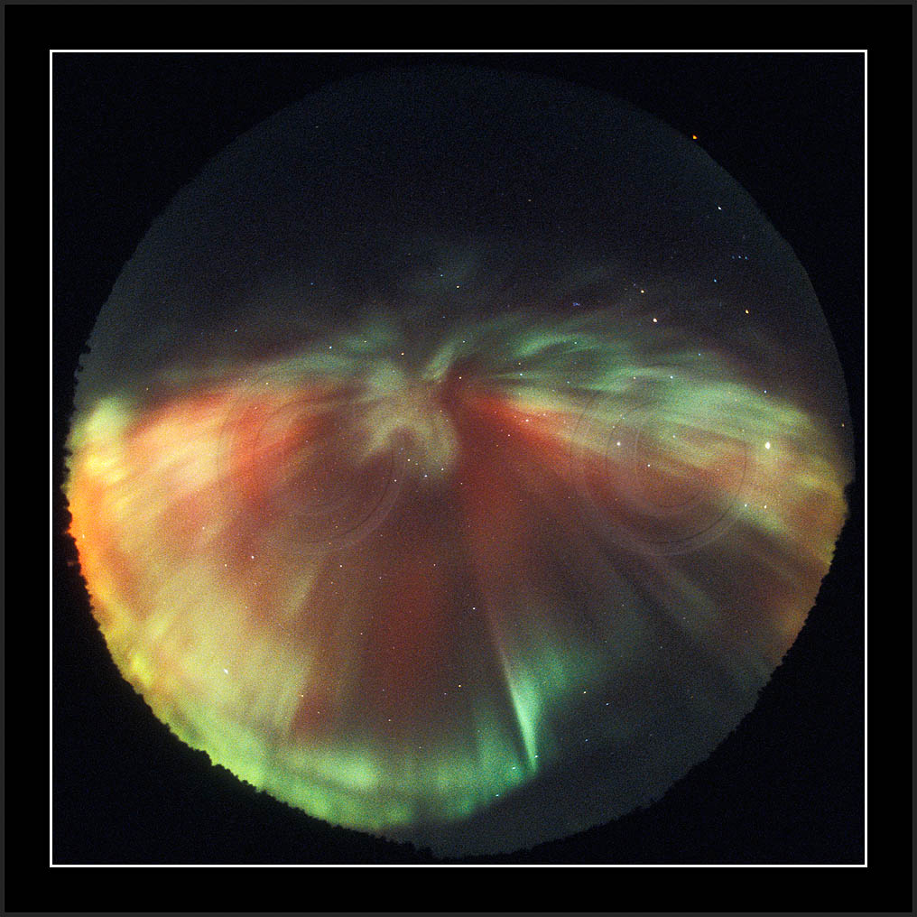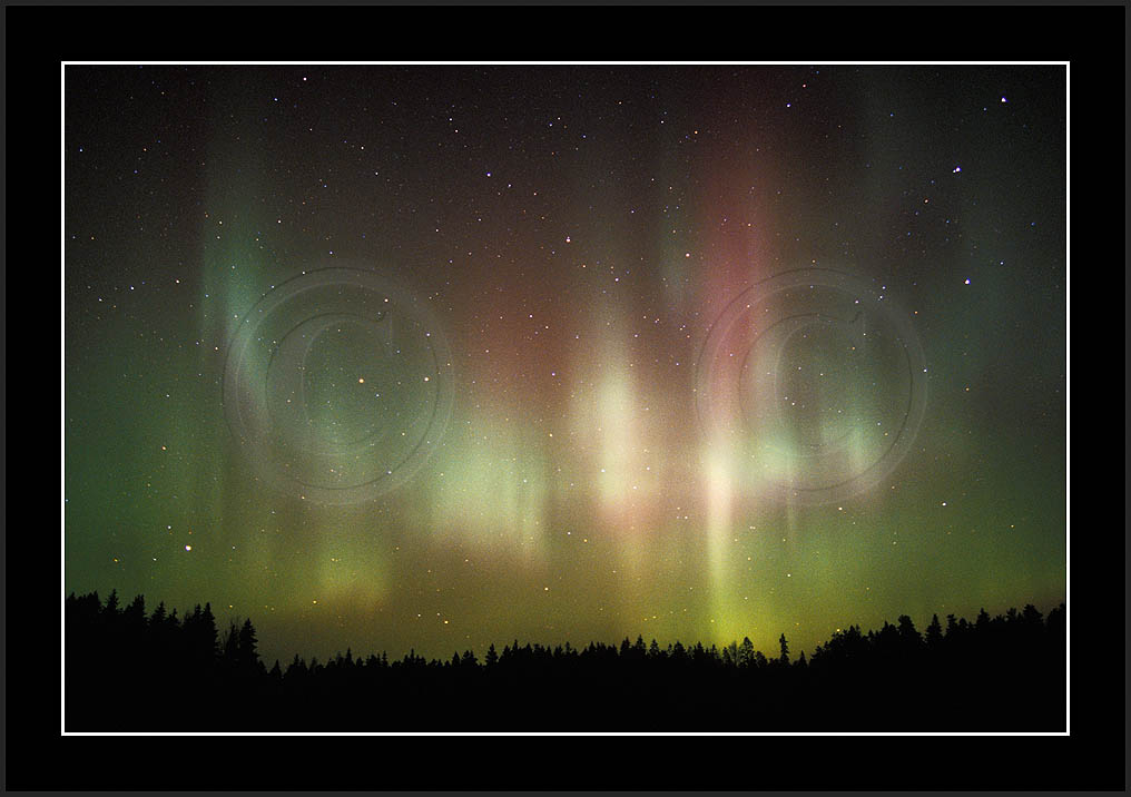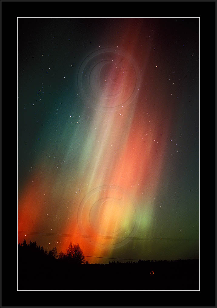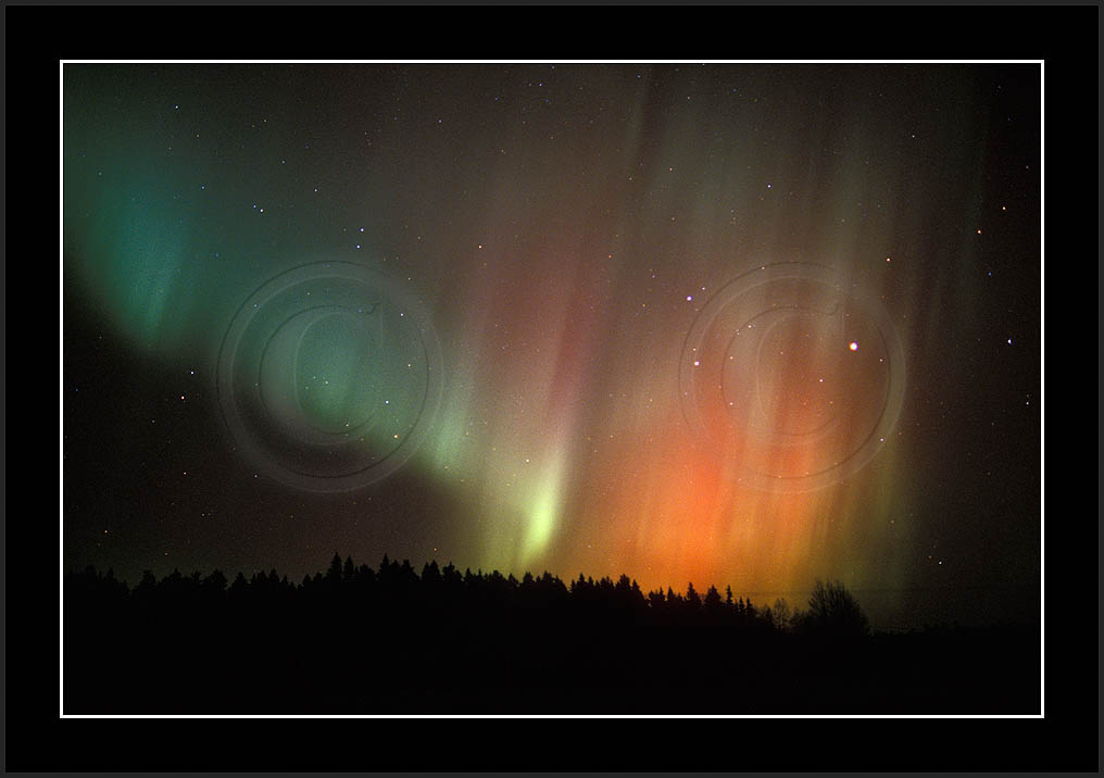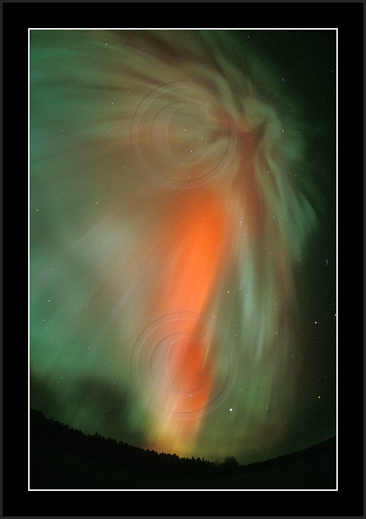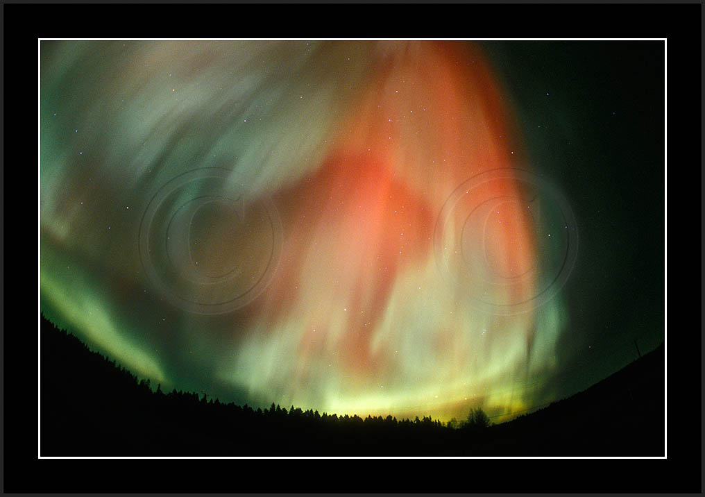 Weather was not optimal (we also lost here many good displays due to daylight), but still several displays were monitored. The best observed at my latitude was 22/23 Oct (starting from image au16742). This display produced exceptionally active corona; it was photographed with 8 mm fisheye using Fuji's Provia 400 push processed to 1600ASA; grainy image is the price to pay to freeze movement. Pay attention to the many shapes of corona found in 8 mm pictures.