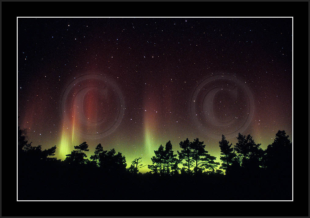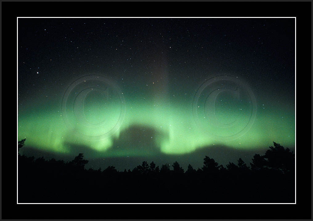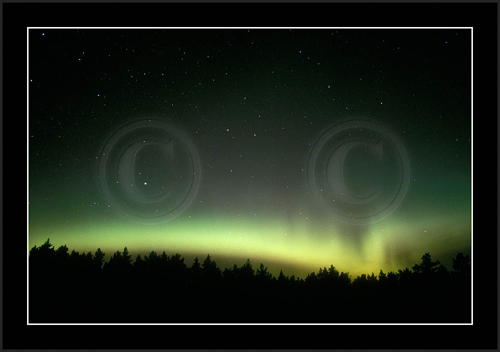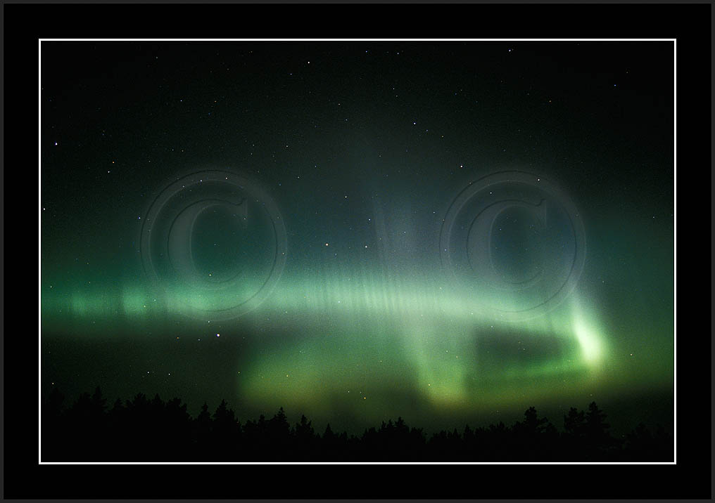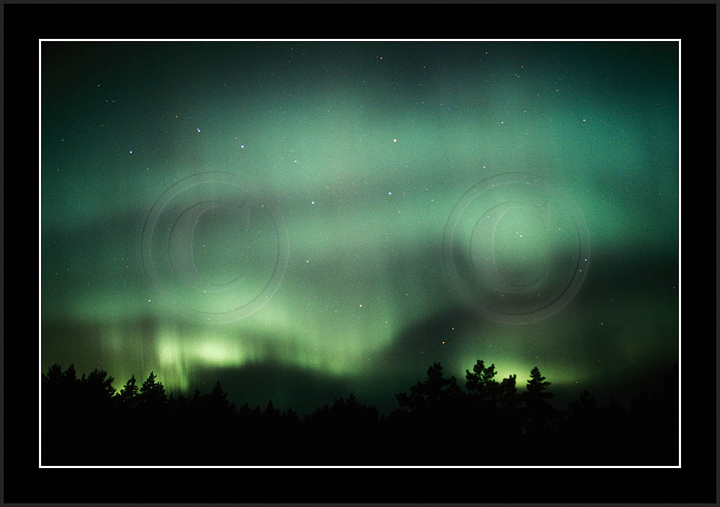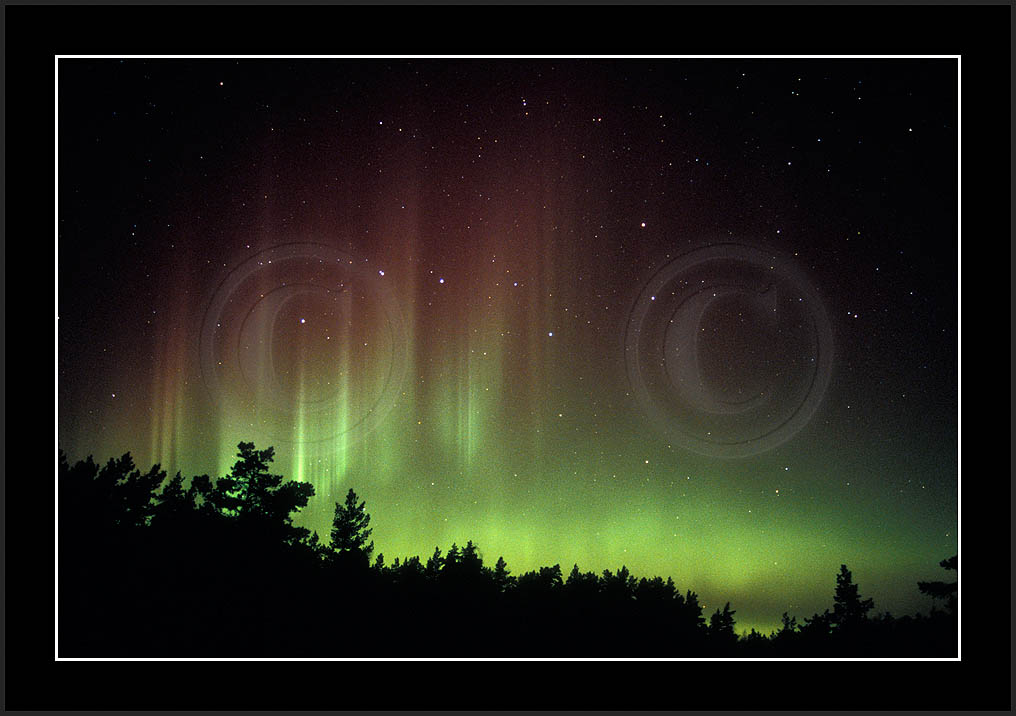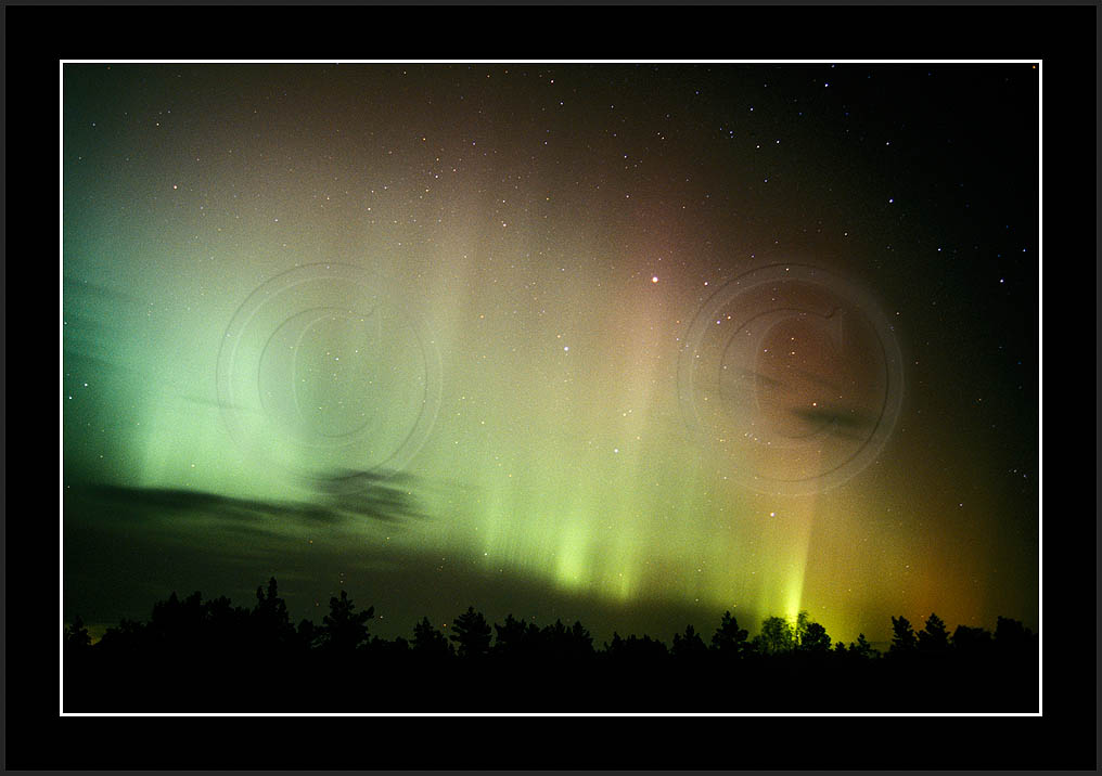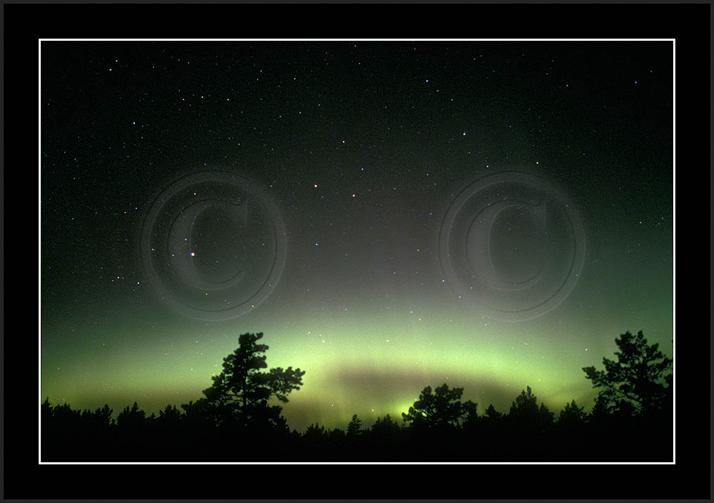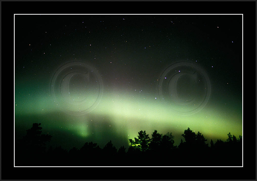 After October's first major storm one cloudy (and also "aurora free") night was followed by another major display on 3/4 (all images here down to re29744). Missing colours (but green) was quite evident during the night; also there was not too much fine structure in the vast aurora forms. Again after a couple of cloudy (and again practically "aurora-free") nights one more night Oct 7/8 (images re29821-30813) was lit by heavenly lights. This night, however, was partly spoiled by clouds. Apparently I lost the very high point of the display although the final bright red column was very conspicious.