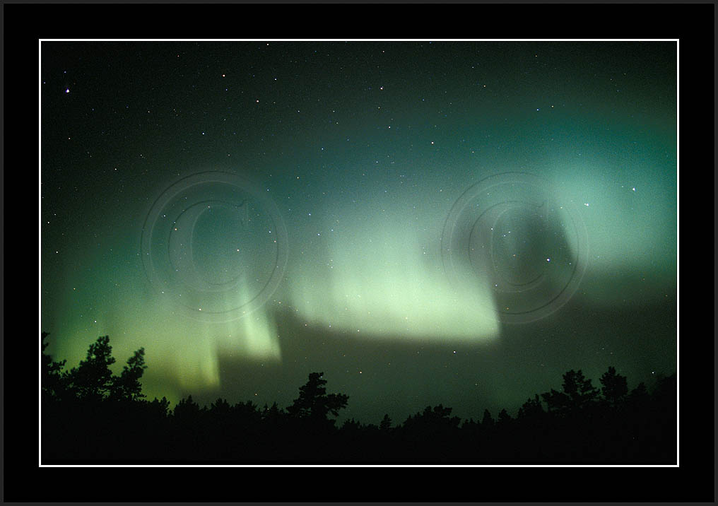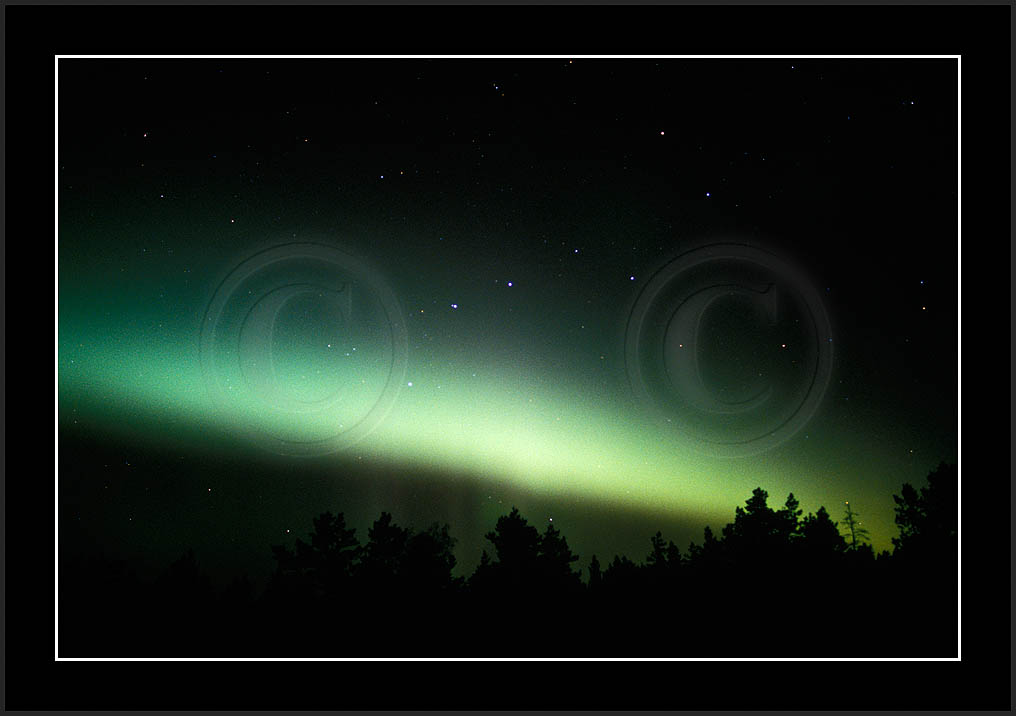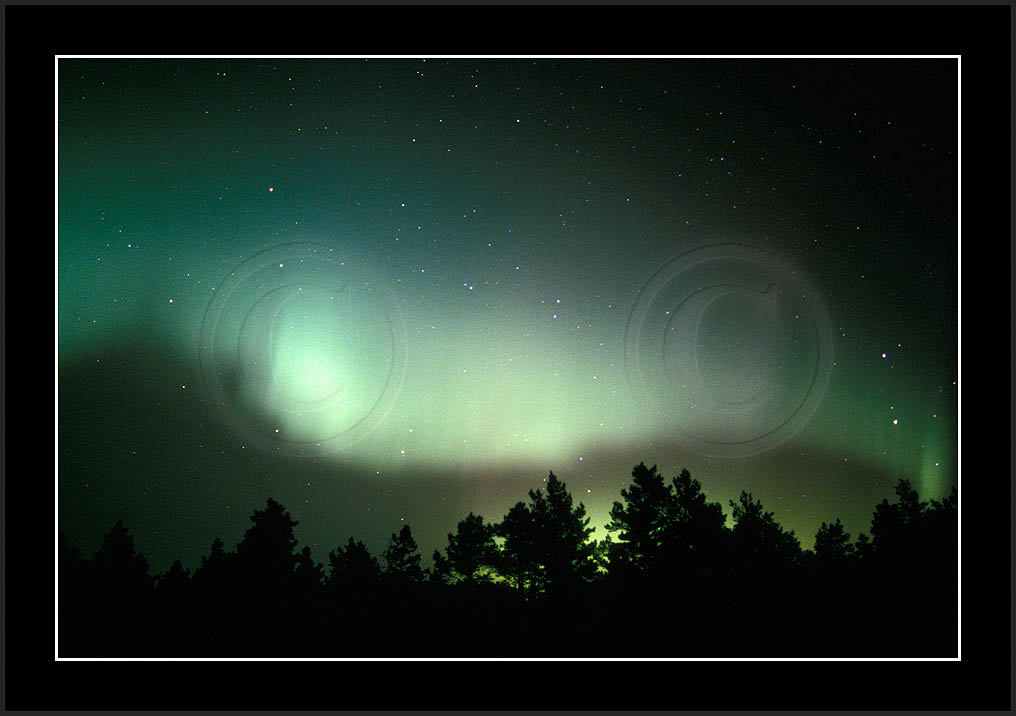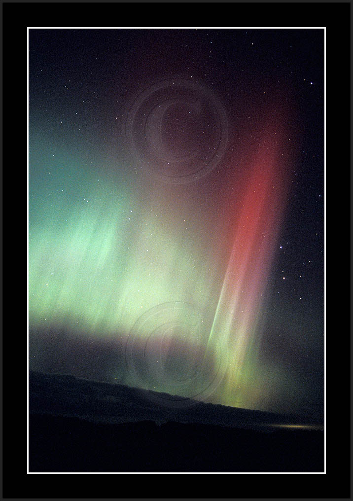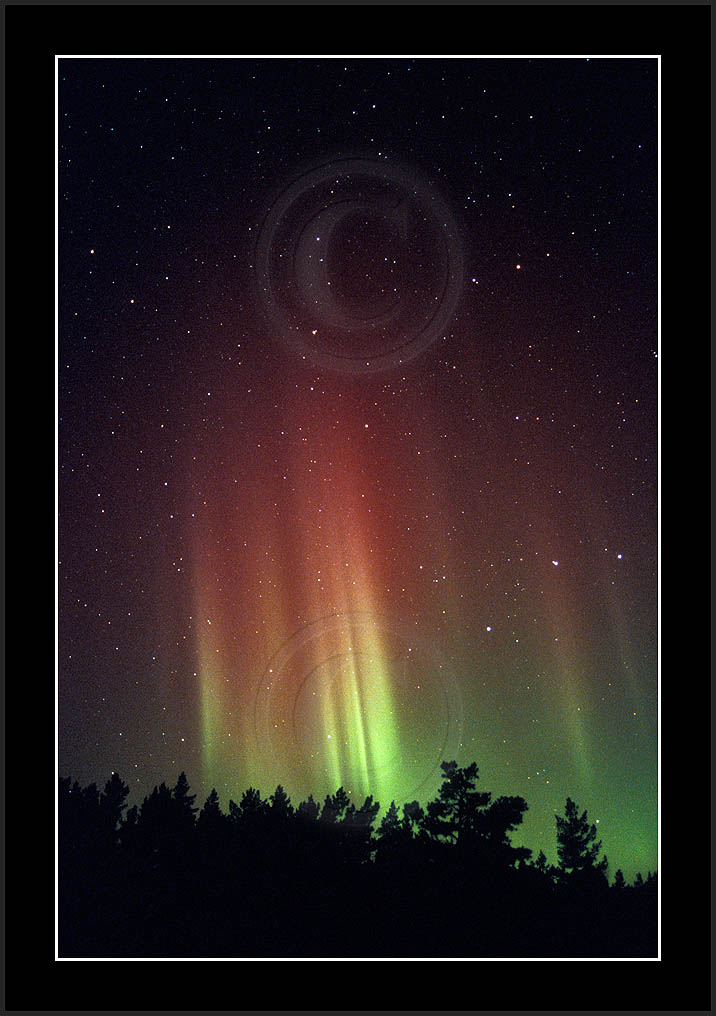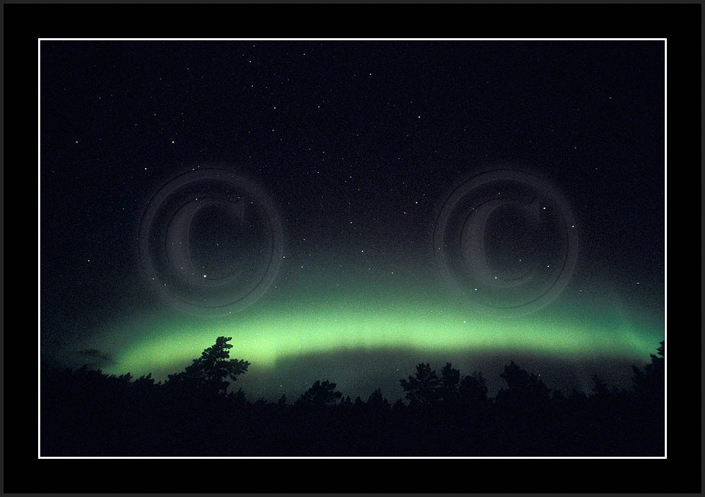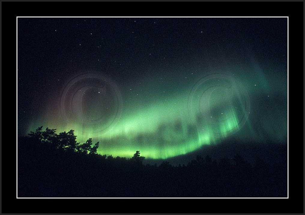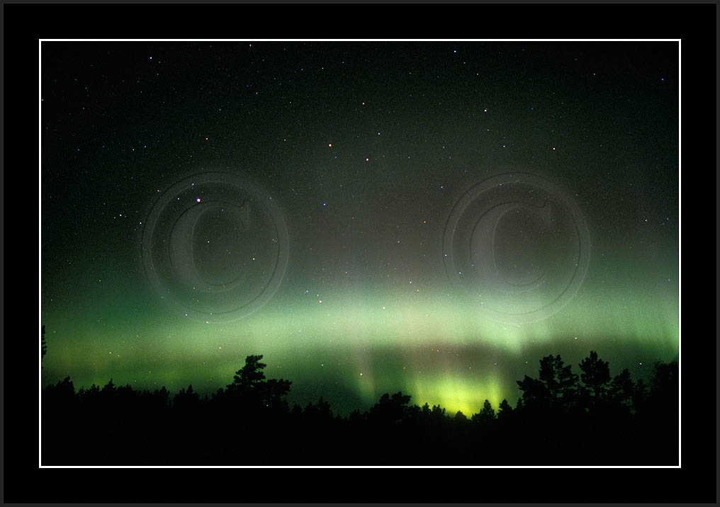 After October's first major storm one cloudy (and also "aurora free") night was followed by another major display on 3/4 (all images here down to re29744). Missing colours (but green) was quite evident during the night; also there was not too much fine structure in the vast aurora forms. Again after a couple of cloudy (and again practically "aurora-free") nights one more night Oct 7/8 (images re29821-30813) was lit by heavenly lights. This night, however, was partly spoiled by clouds. Apparently I lost the very high point of the display although the final bright red column was very conspicious.