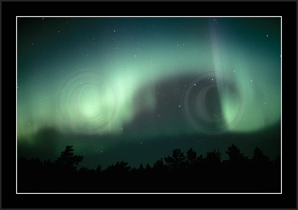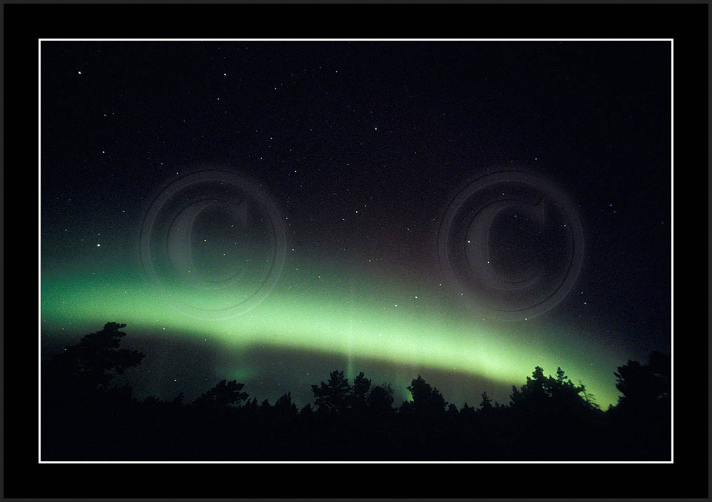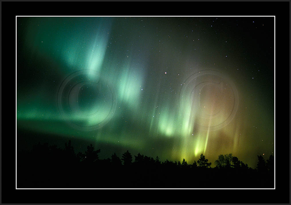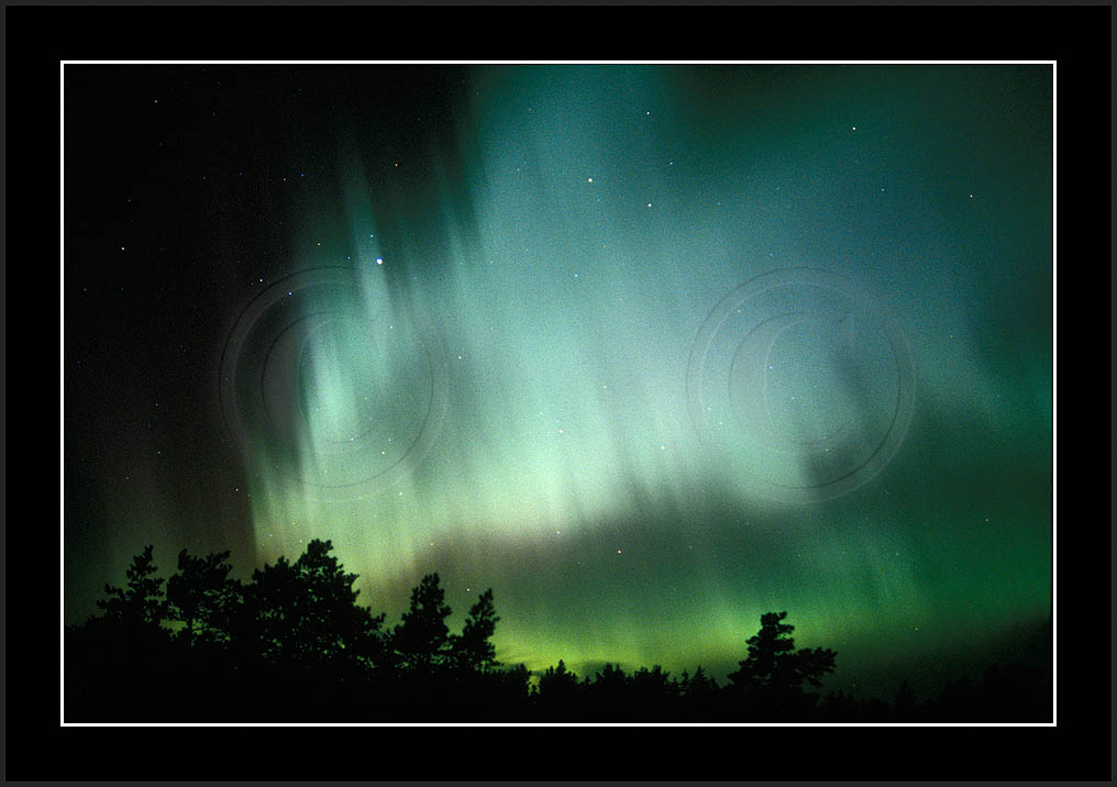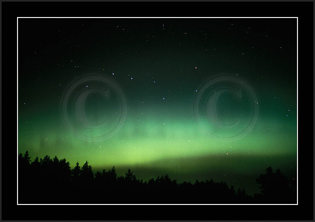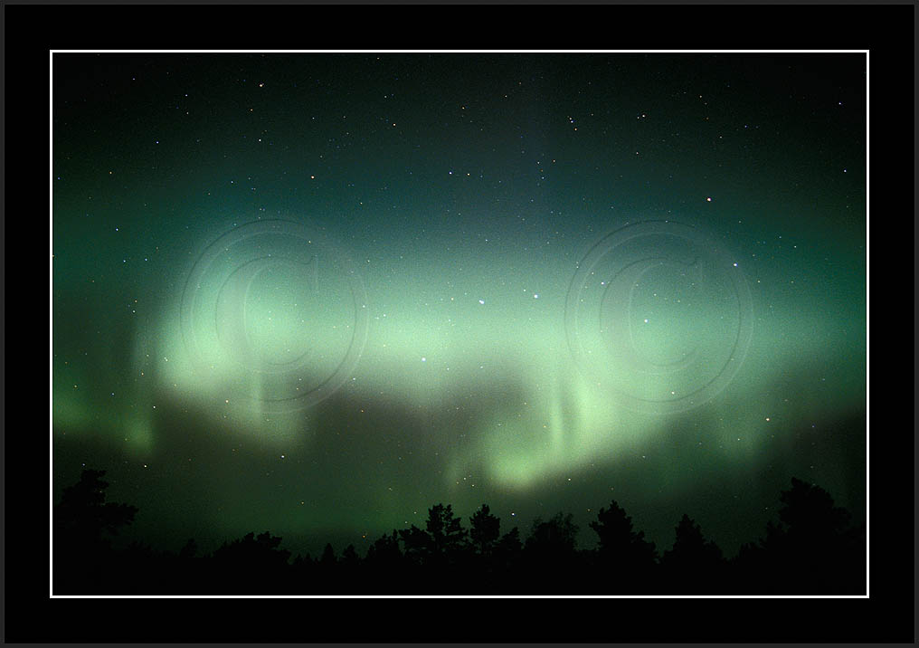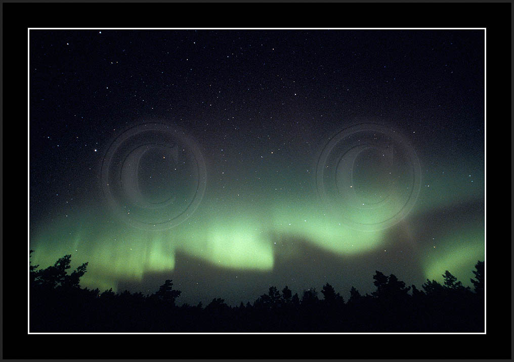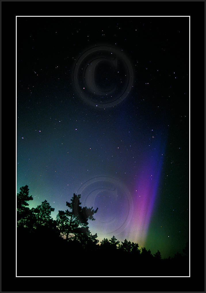 After October's first major storm one cloudy (and also "aurora free") night was followed by another major display on 3/4 (all images here down to re29744). Missing colours (but green) was quite evident during the night; also there was not too much fine structure in the vast aurora forms. Again after a couple of cloudy (and again practically "aurora-free") nights one more night Oct 7/8 (images re29821-30813) was lit by heavenly lights. This night, however, was partly spoiled by clouds. Apparently I lost the very high point of the display although the final bright red column was very conspicious.