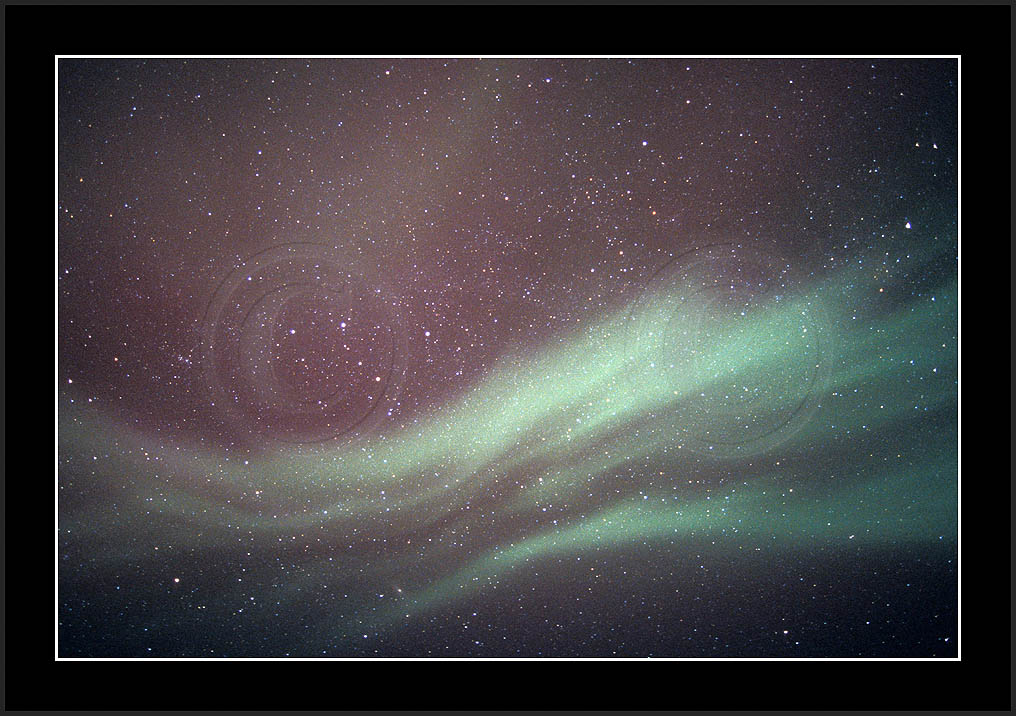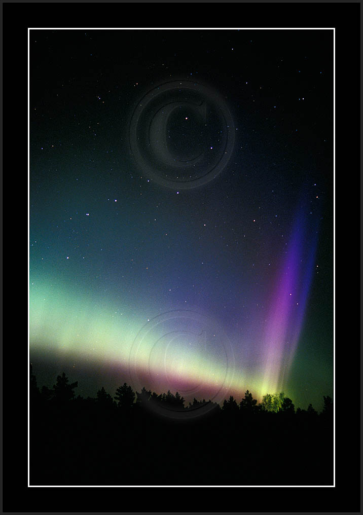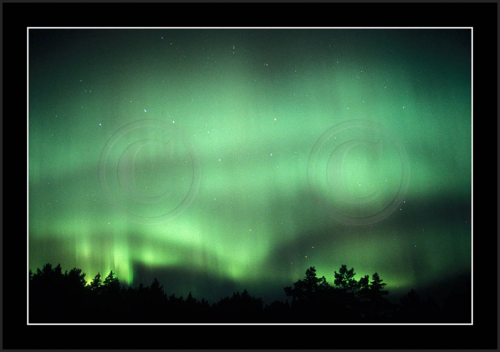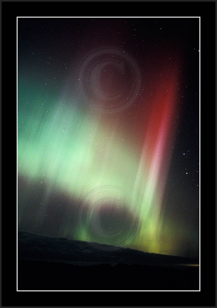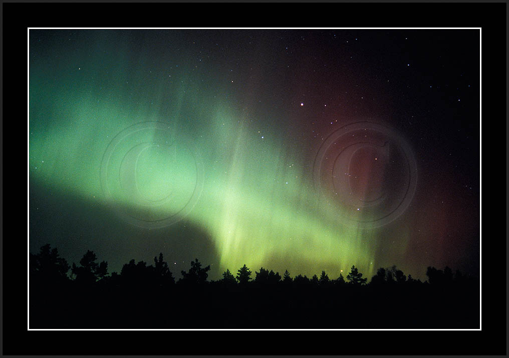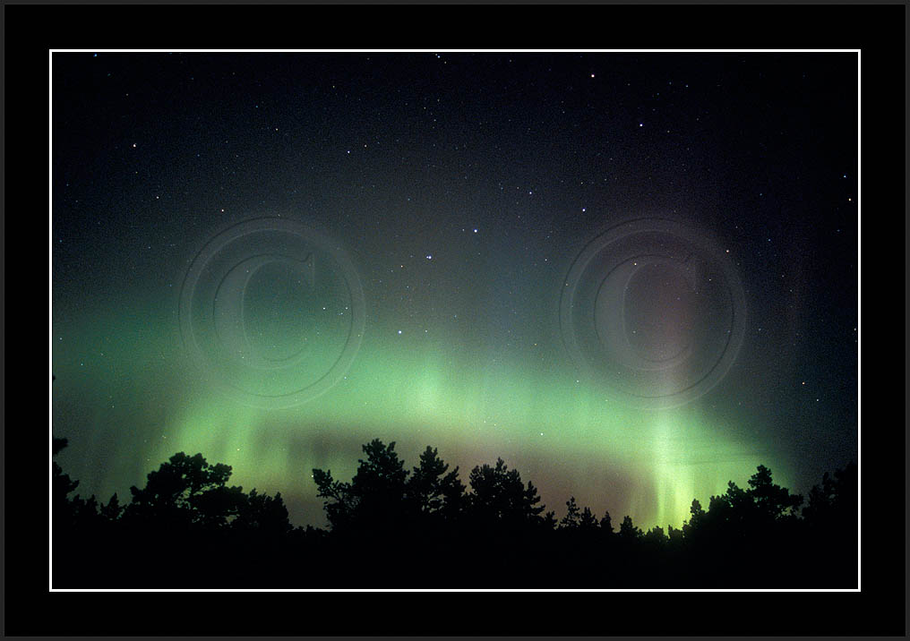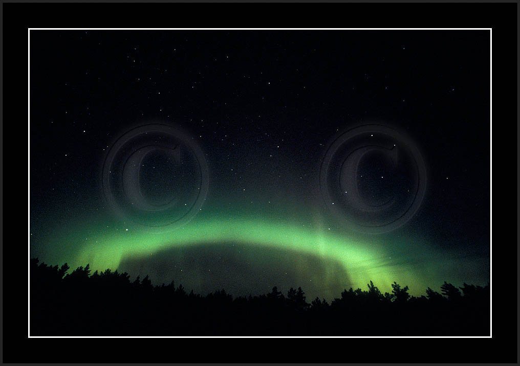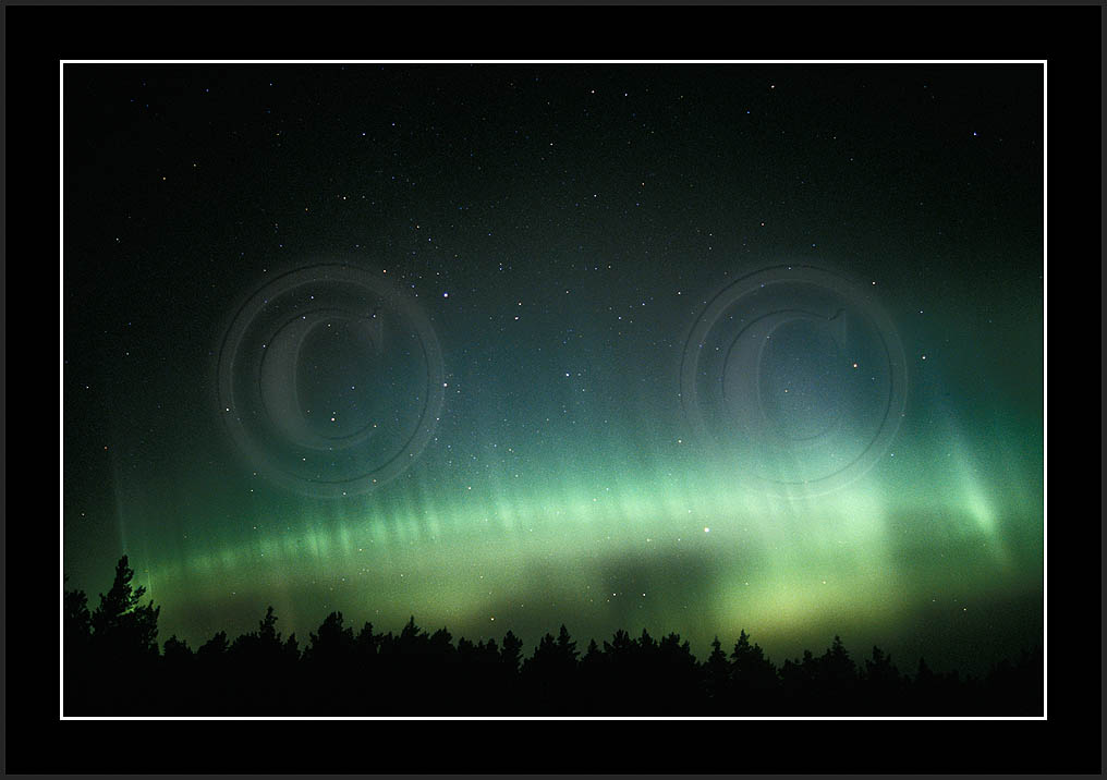 After October's first major storm one cloudy (and also "aurora free") night was followed by another major display on 3/4 (all images here down to re29744). Missing colours (but green) was quite evident during the night; also there was not too much fine structure in the vast aurora forms. Again after a couple of cloudy (and again practically "aurora-free") nights one more night Oct 7/8 (images re29821-30813) was lit by heavenly lights. This night, however, was partly spoiled by clouds. Apparently I lost the very high point of the display although the final bright red column was very conspicious.