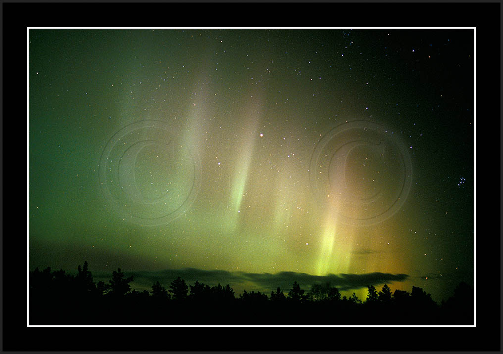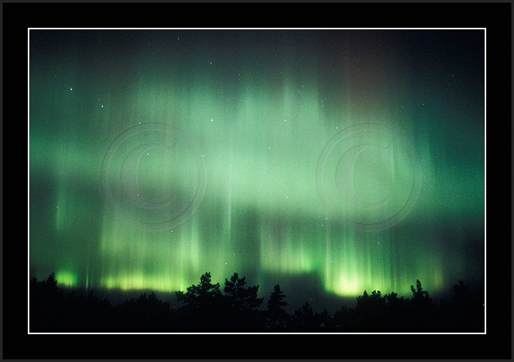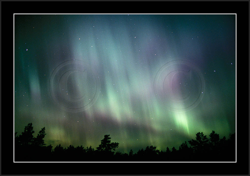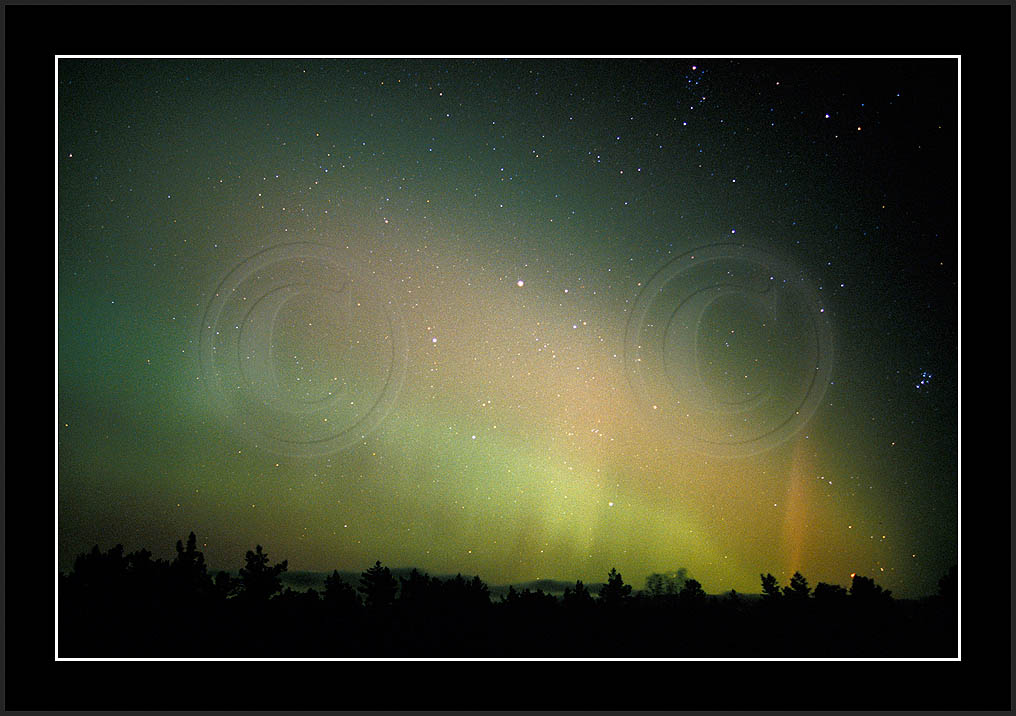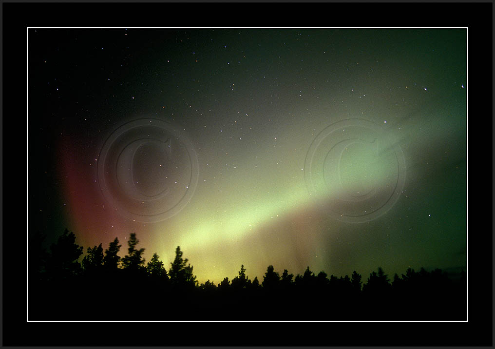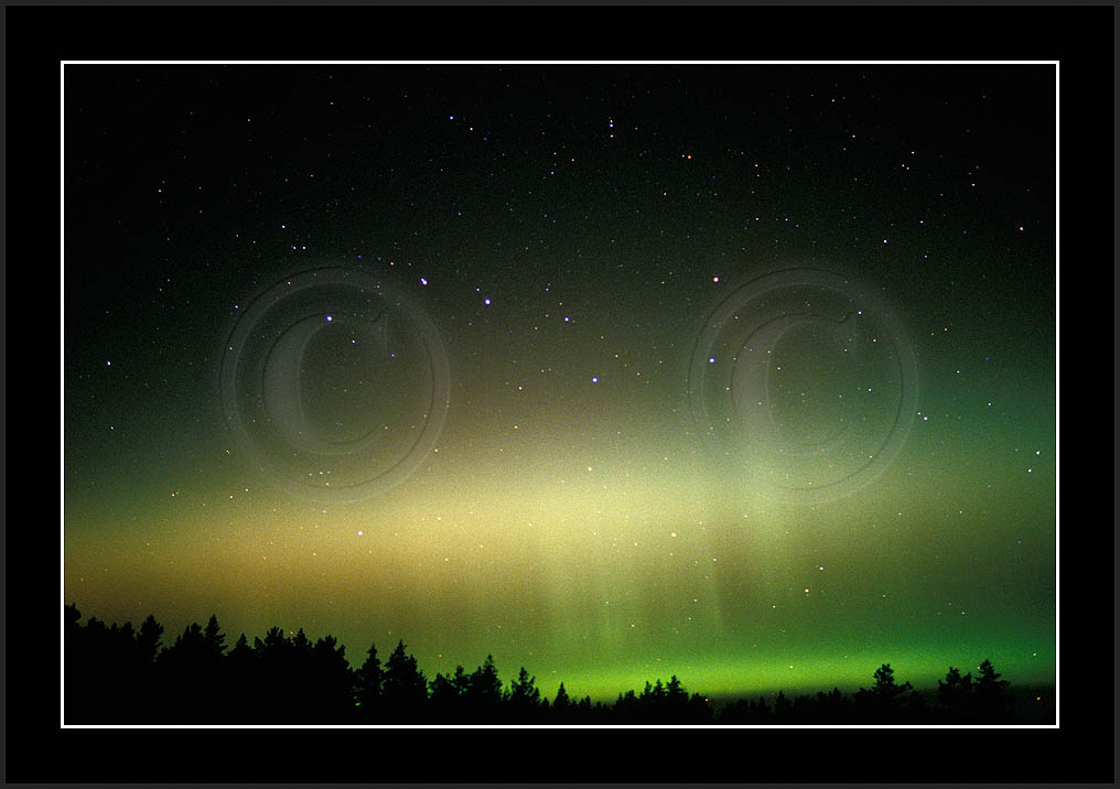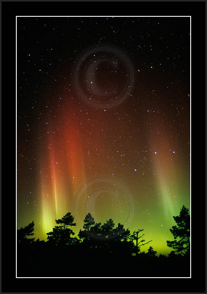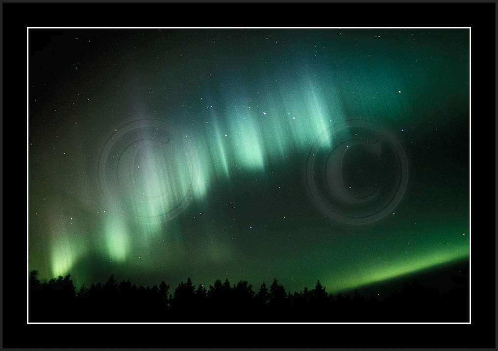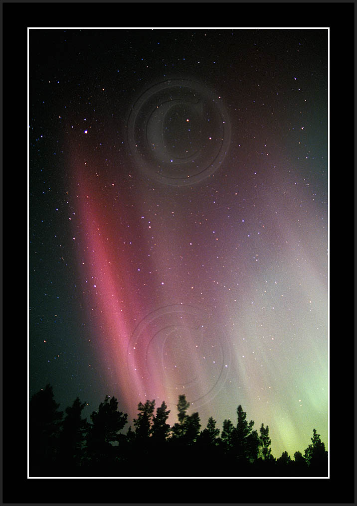 After October's first major storm one cloudy (and also "aurora free") night was followed by another major display on 3/4 (all images here down to re29744). Missing colours (but green) was quite evident during the night; also there was not too much fine structure in the vast aurora forms. Again after a couple of cloudy (and again practically "aurora-free") nights one more night Oct 7/8 (images re29821-30813) was lit by heavenly lights. This night, however, was partly spoiled by clouds. Apparently I lost the very high point of the display although the final bright red column was very conspicious.