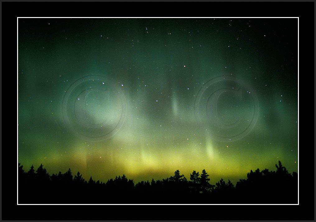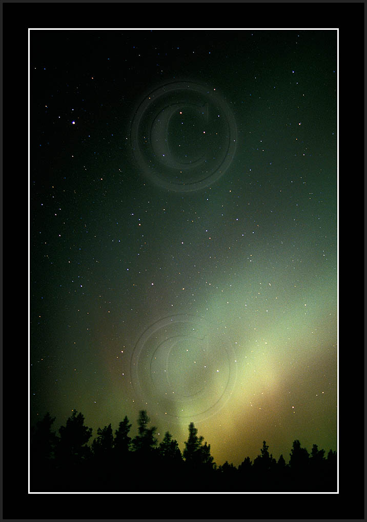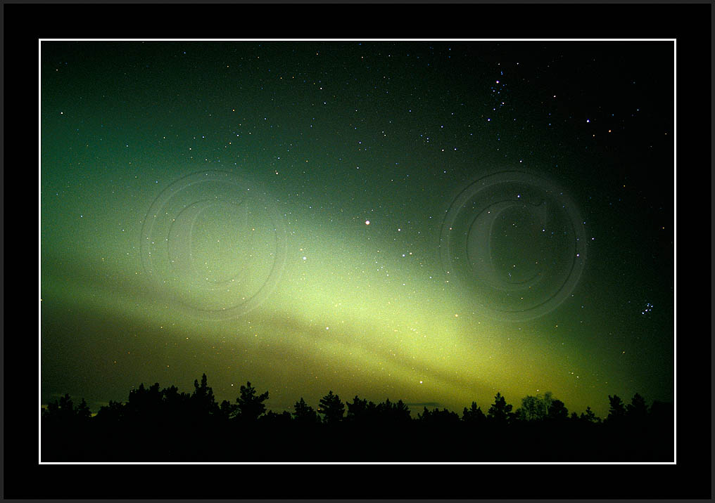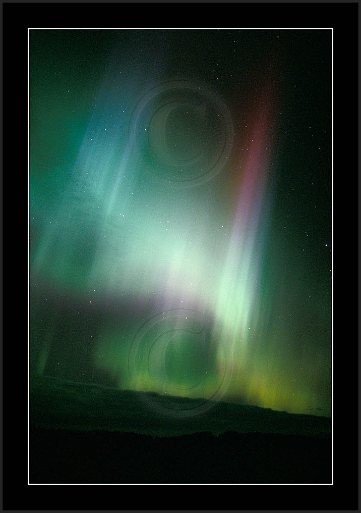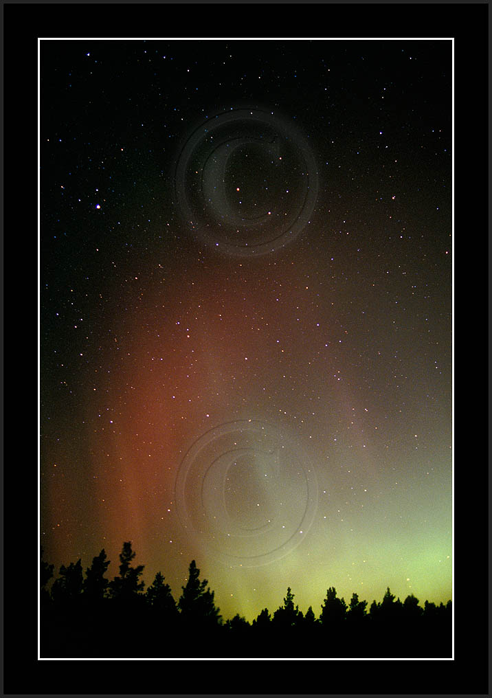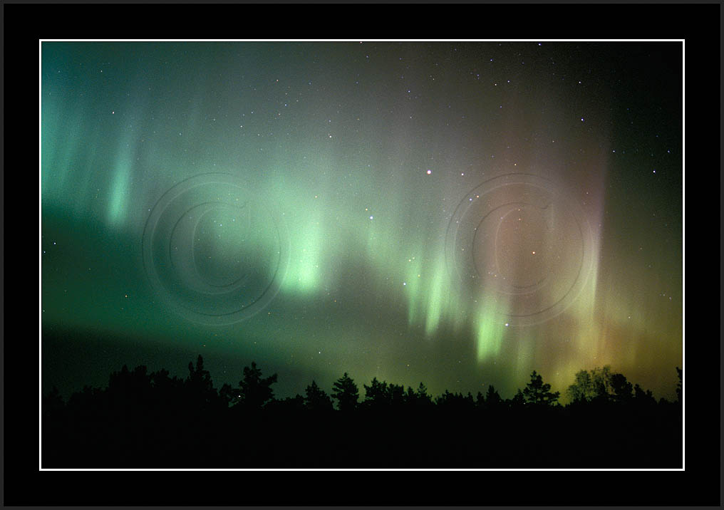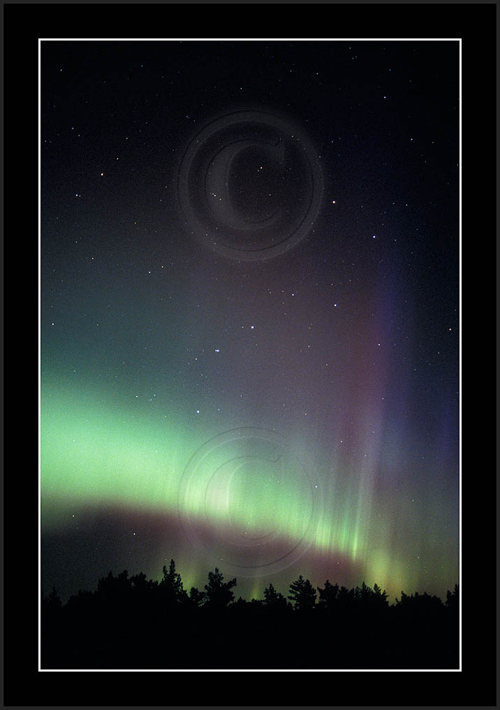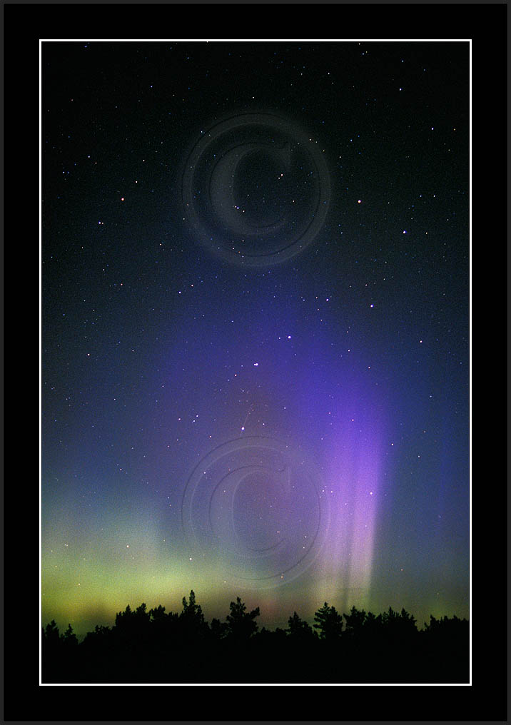 After October's first major storm one cloudy (and also "aurora free") night was followed by another major display on 3/4 (all images here down to re29744). Missing colours (but green) was quite evident during the night; also there was not too much fine structure in the vast aurora forms. Again after a couple of cloudy (and again practically "aurora-free") nights one more night Oct 7/8 (images re29821-30813) was lit by heavenly lights. This night, however, was partly spoiled by clouds. Apparently I lost the very high point of the display although the final bright red column was very conspicious.