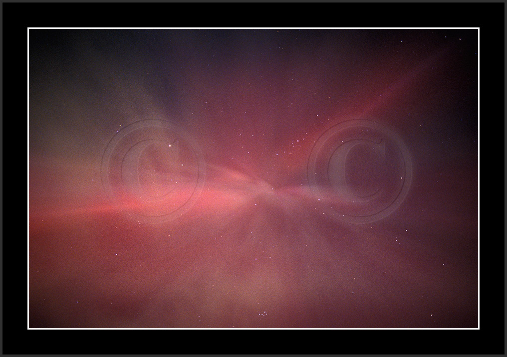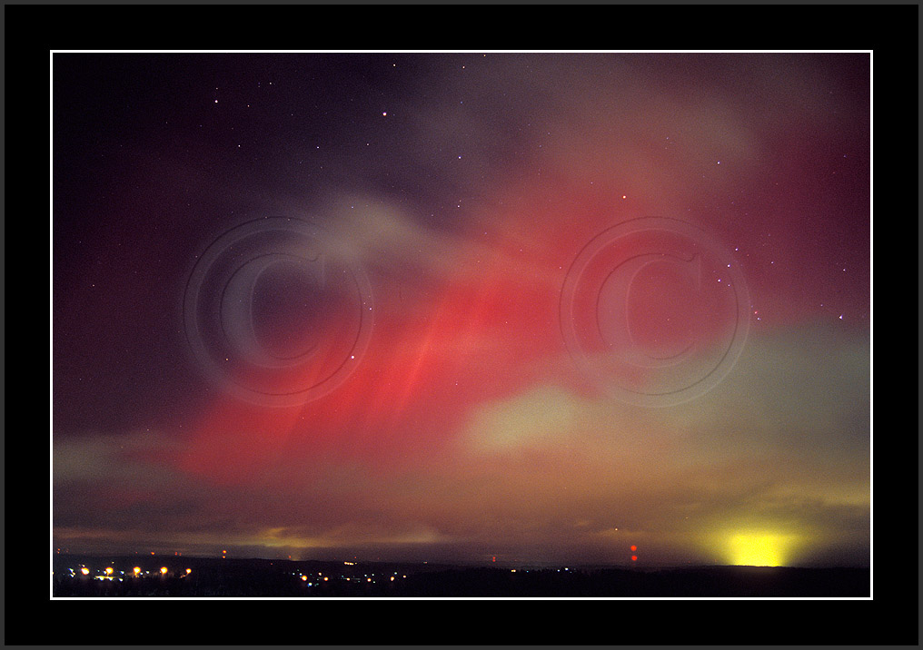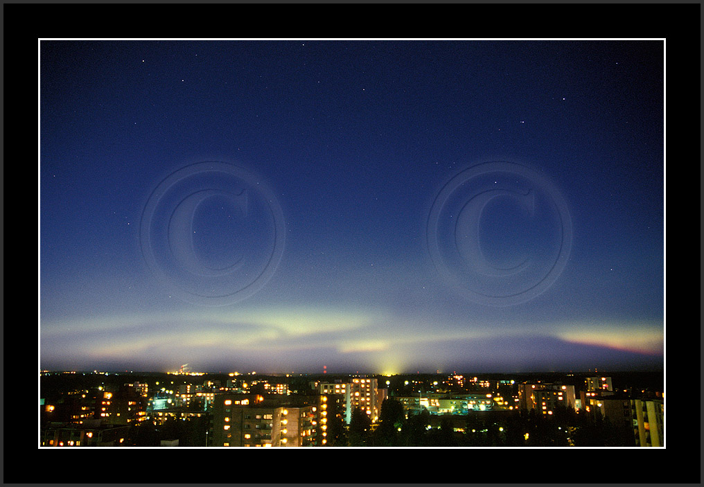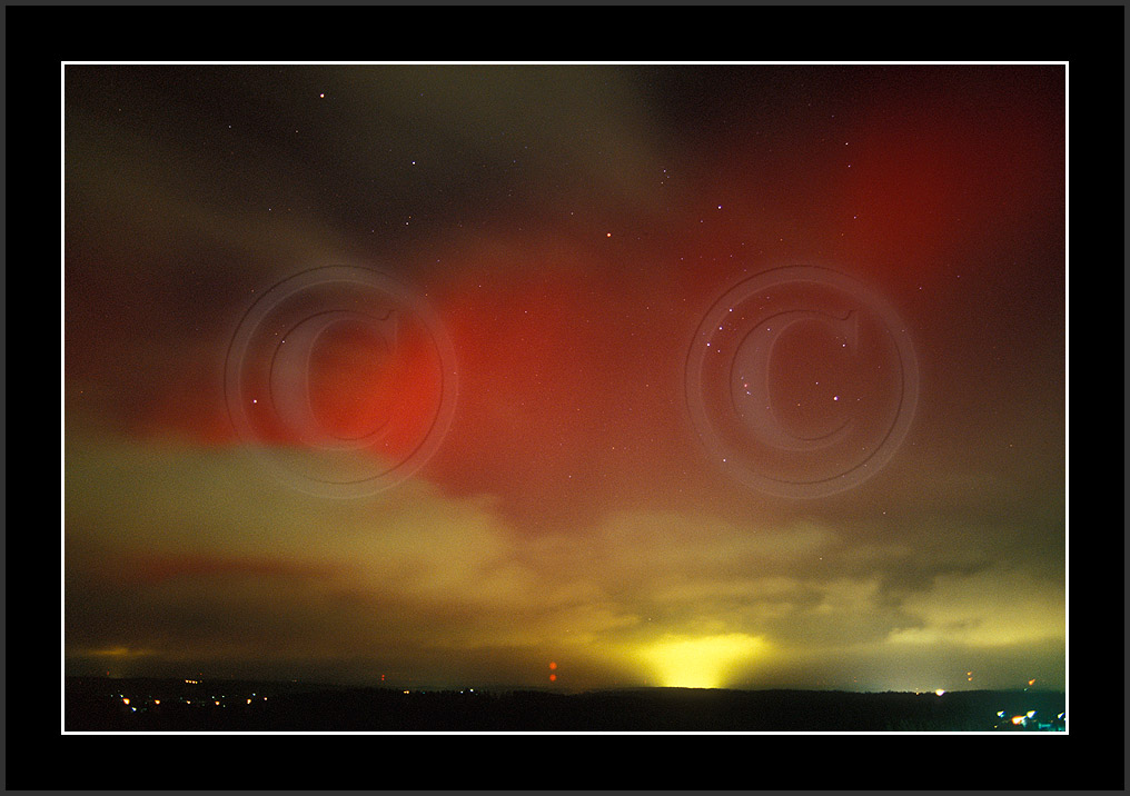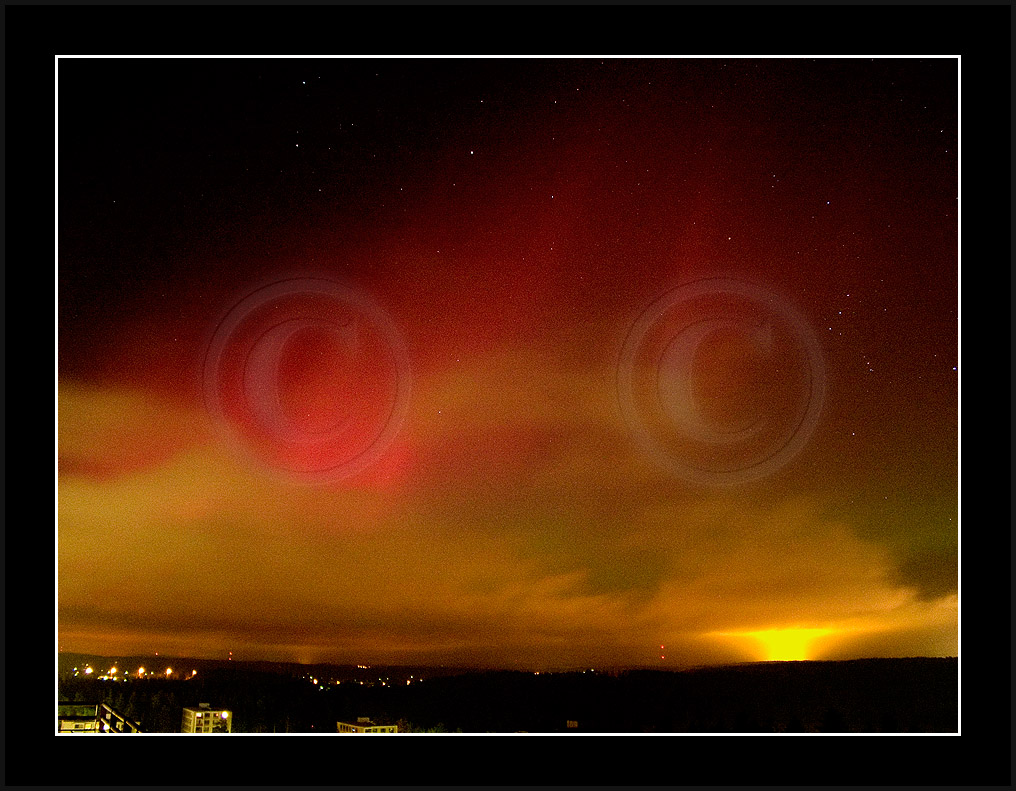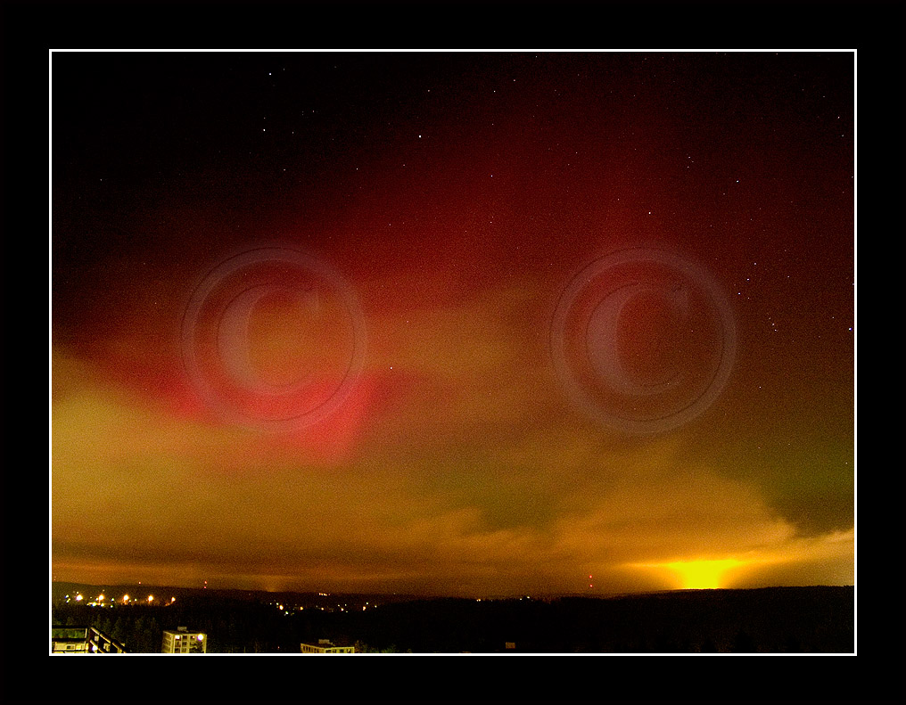 What was special in this display (much like in April the 6th 2000 display) was that northern sky was practically empty of auroras while in the south auroras extended as low as I could see under foggy conditions. Also the very extensive red colour resembled April's display. Physically both displays were "driven" with exceptionally negative figures in planetary magnetic field's z-component values (Bz): in April it was (if I recall it right) about -50nT while this new one showed values down to -55nT.