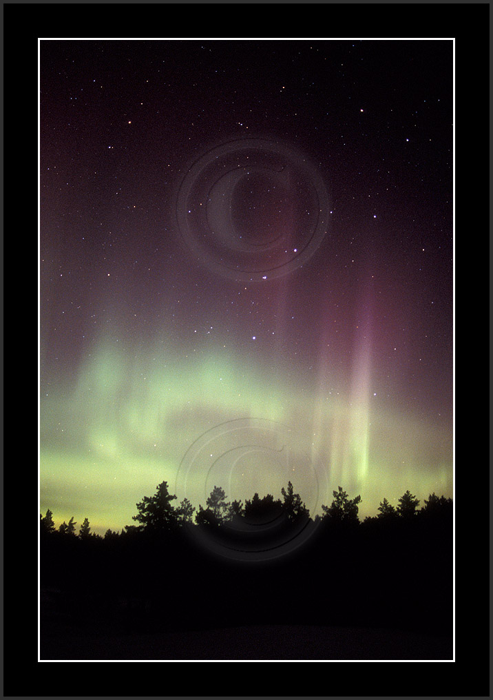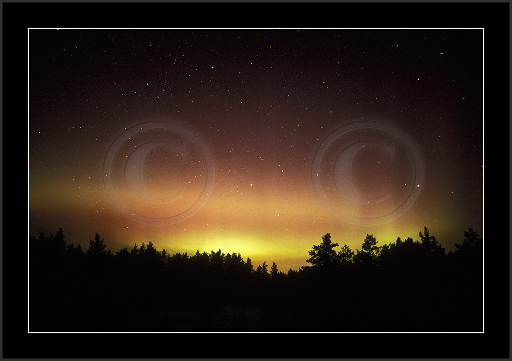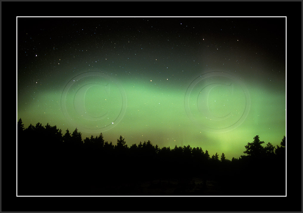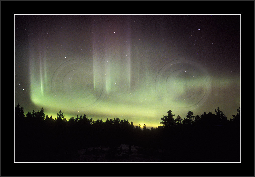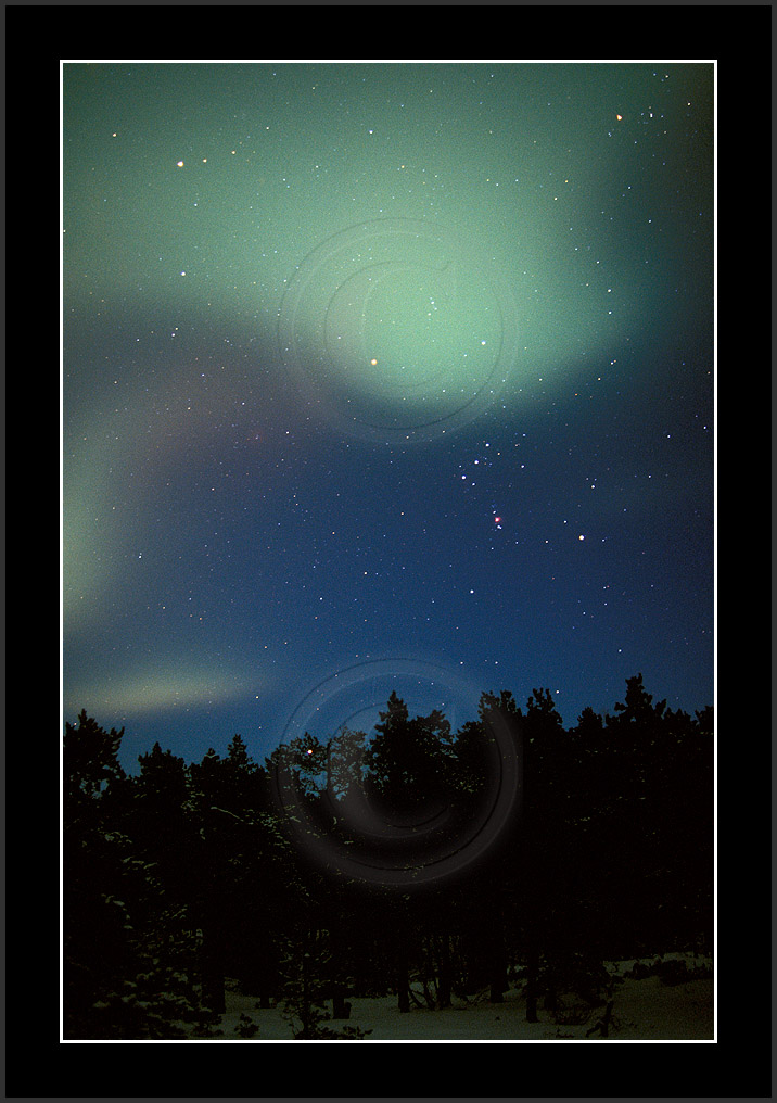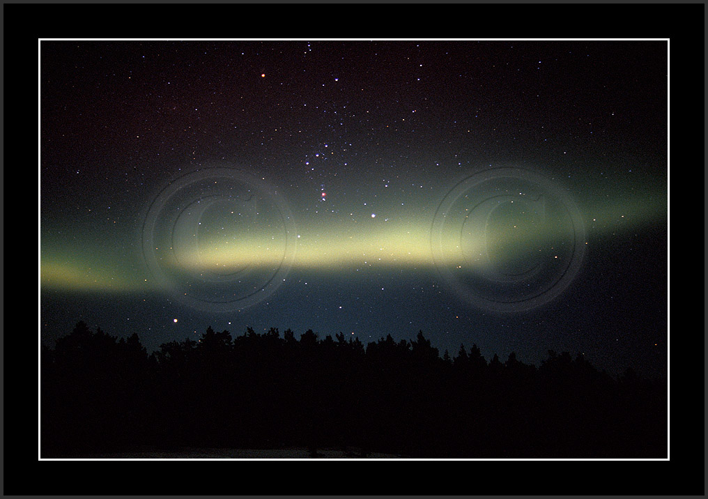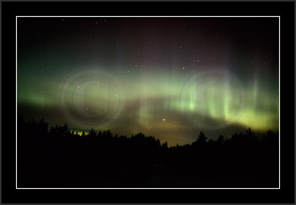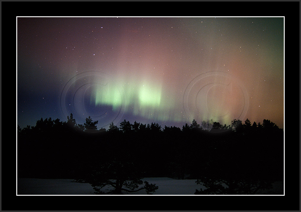 The rest of images are from a "surprise" display 11/12 Feb 2004. There was no CME known to arrive and also the most probable source - solar wind from a coronal hole - did not give too much hope of a good display. However, before leaving for star photography it was evident from Costello-prediction that there was moderate auroral activity on. In the early evening 17-19 UT the whole sky was full of diffuse and "peculiar" shaped aurora. It is not common at my relatively southern latitude to have auroras extending down to 10 degrees in south. The very last image with reddish aurora glow is from Feb 21/22.