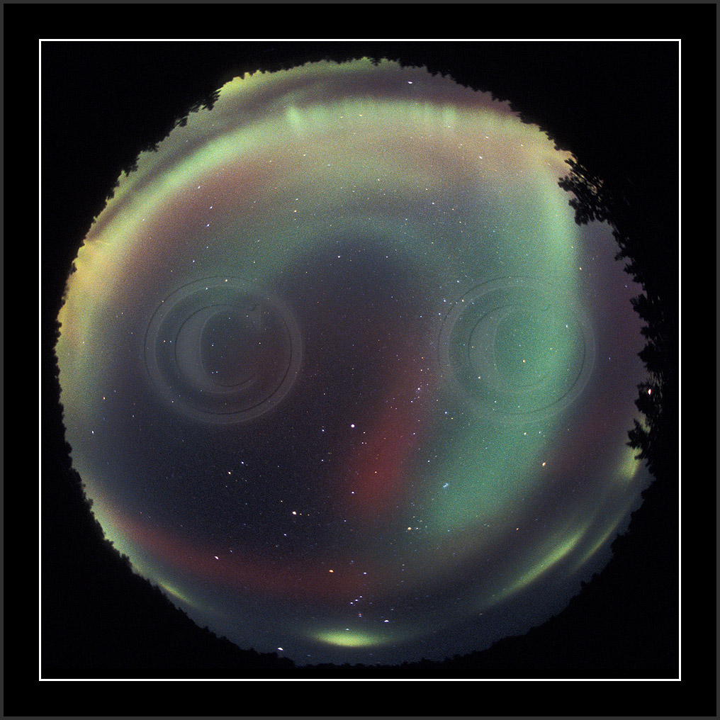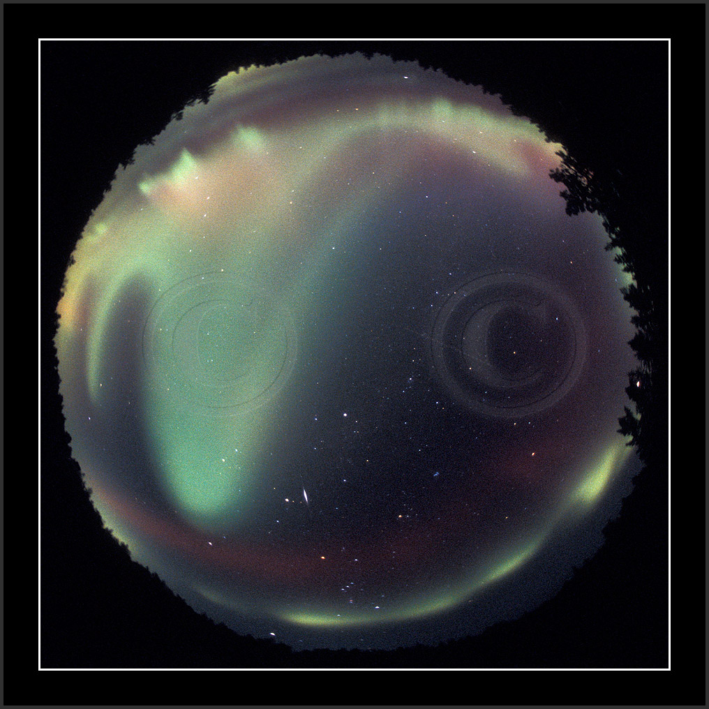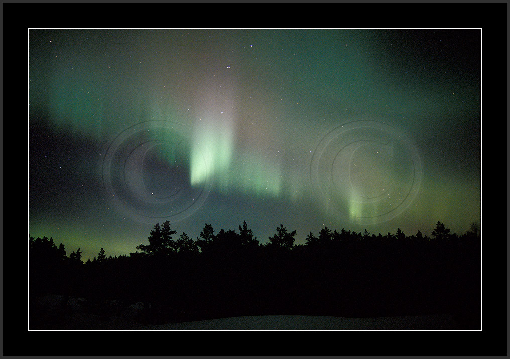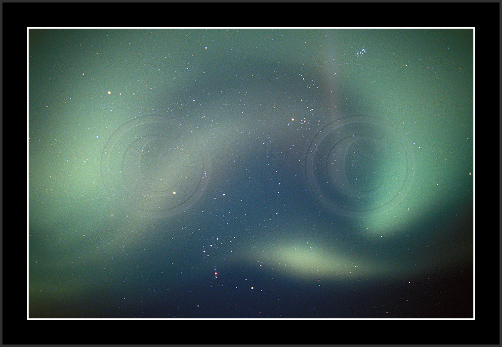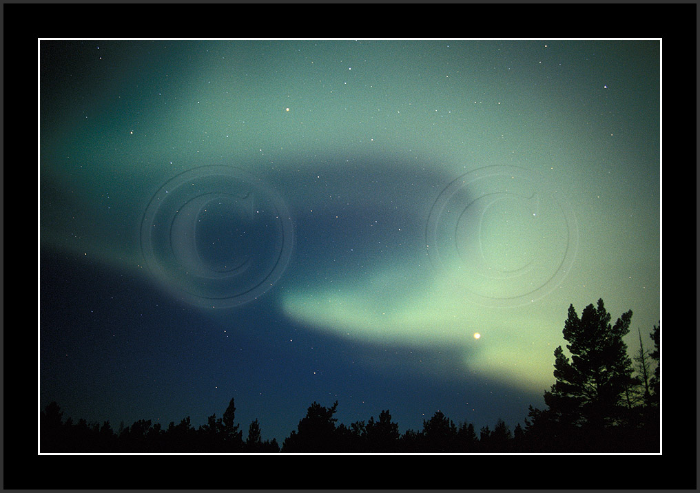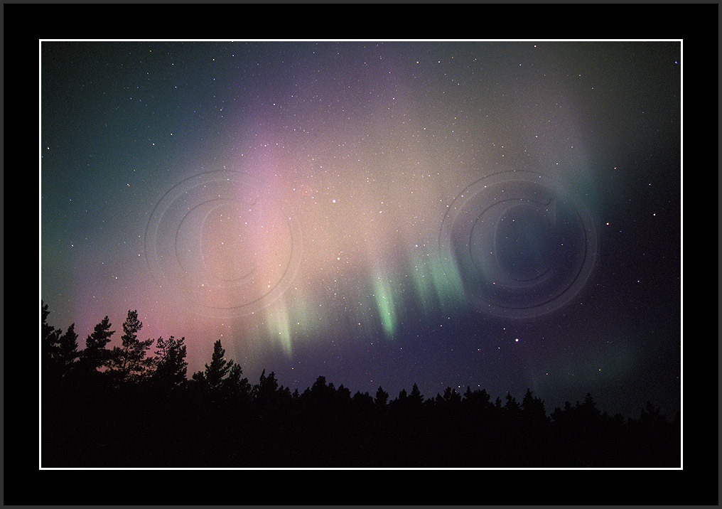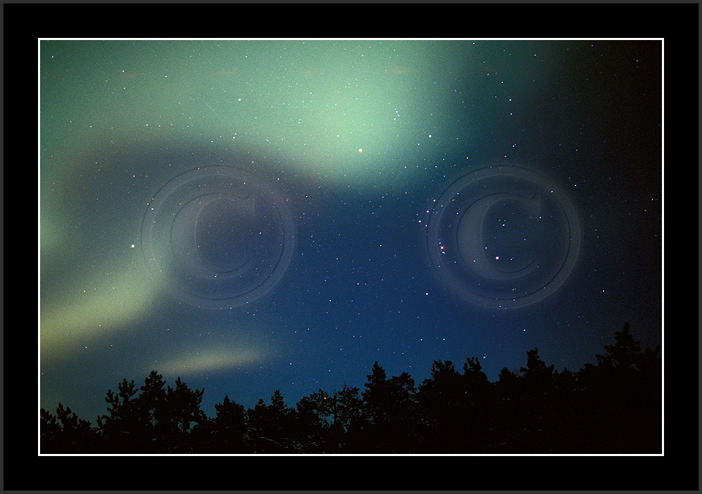 The rest of images are from a "surprise" display 11/12 Feb 2004. There was no CME known to arrive and also the most probable source - solar wind from a coronal hole - did not give too much hope of a good display. However, before leaving for star photography it was evident from Costello-prediction that there was moderate auroral activity on. In the early evening 17-19 UT the whole sky was full of diffuse and "peculiar" shaped aurora. It is not common at my relatively southern latitude to have auroras extending down to 10 degrees in south. The very last image with reddish aurora glow is from Feb 21/22.