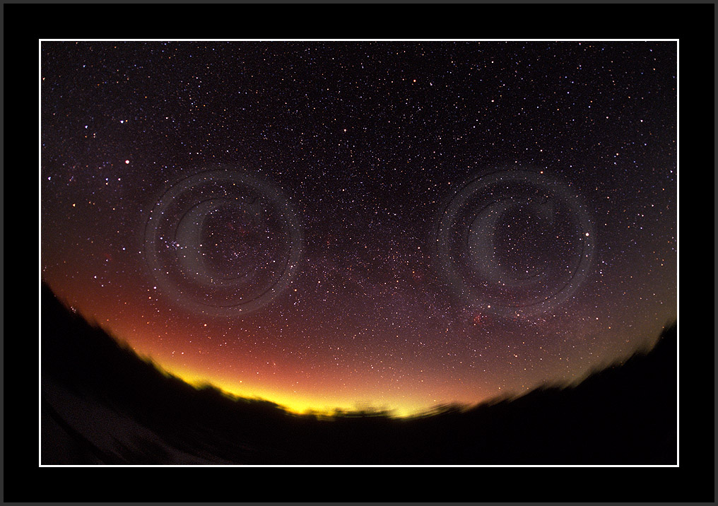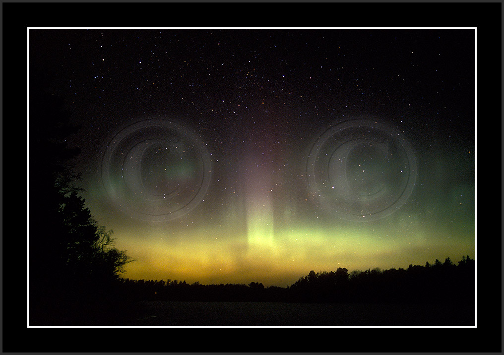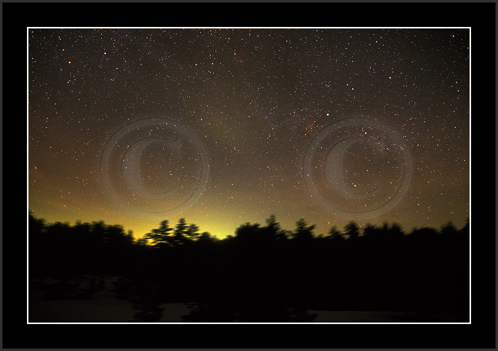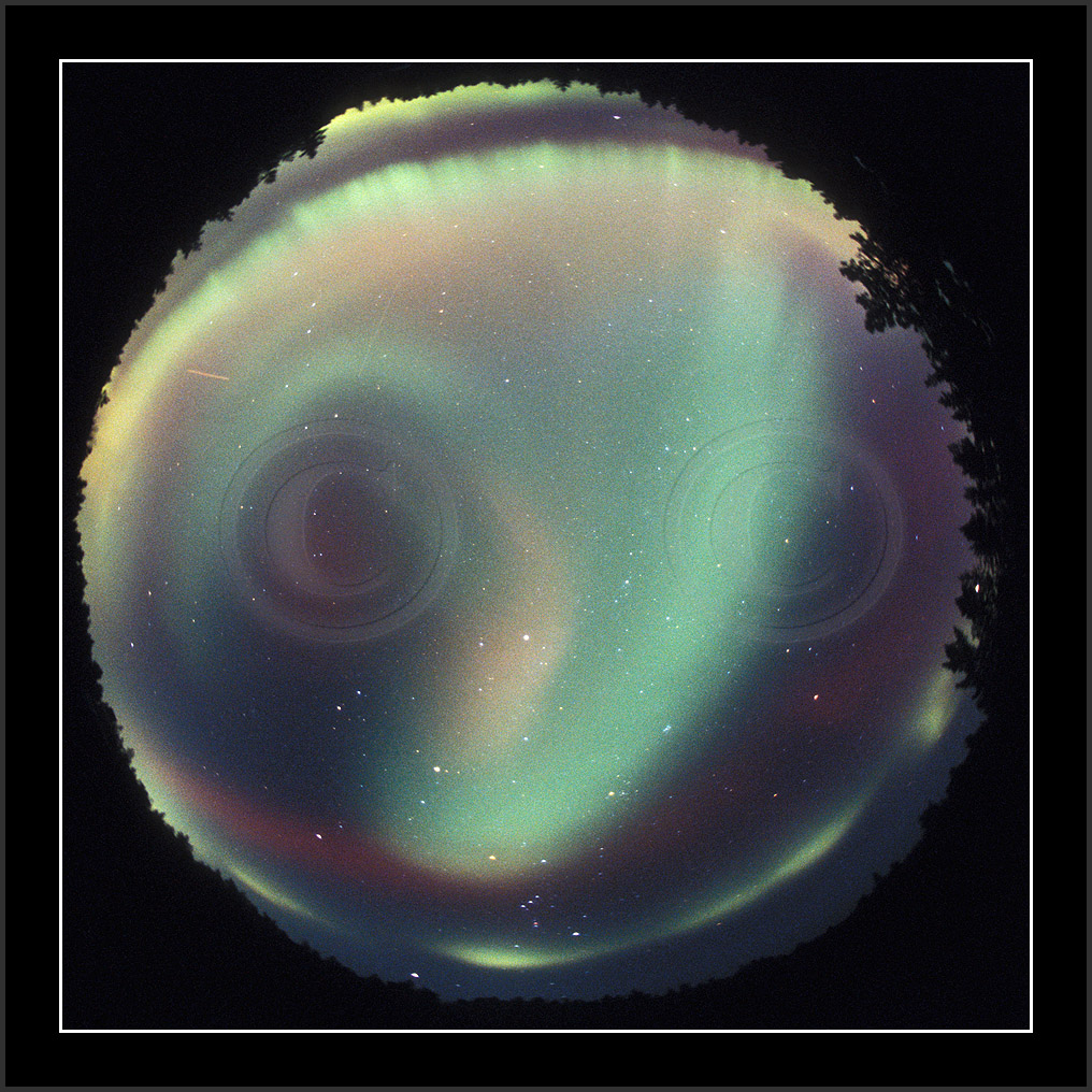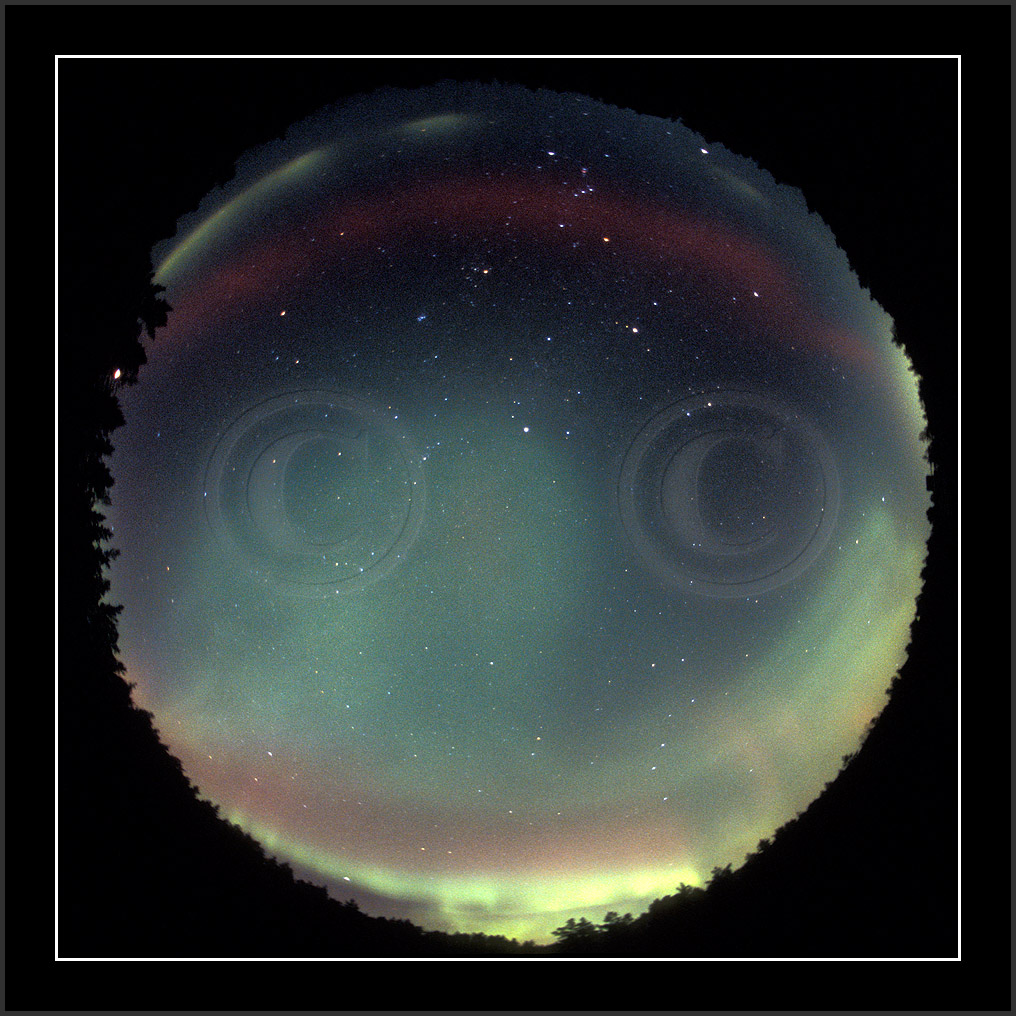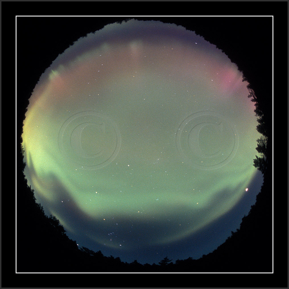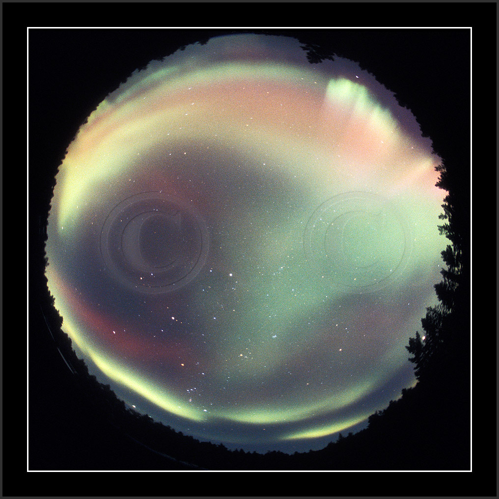 The rest of images are from a "surprise" display 11/12 Feb 2004. There was no CME known to arrive and also the most probable source - solar wind from a coronal hole - did not give too much hope of a good display. However, before leaving for star photography it was evident from Costello-prediction that there was moderate auroral activity on. In the early evening 17-19 UT the whole sky was full of diffuse and "peculiar" shaped aurora. It is not common at my relatively southern latitude to have auroras extending down to 10 degrees in south. The very last image with reddish aurora glow is from Feb 21/22.