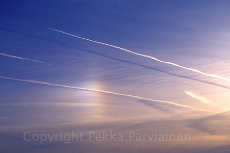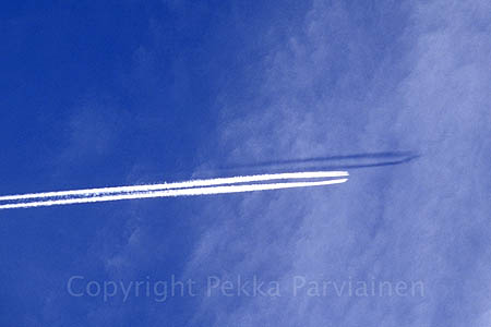 The bottom of the page shows contrails' and even plane's shaddow on cirrus clouds.