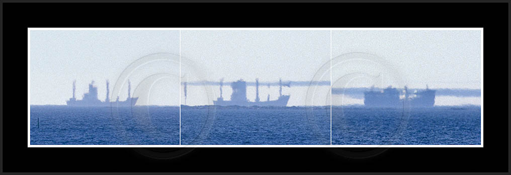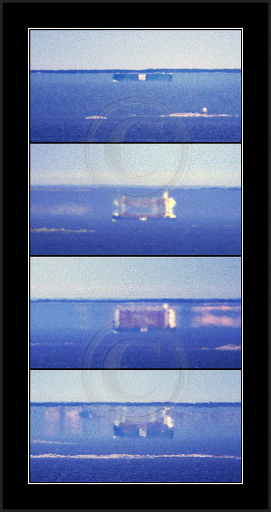 The first ten images show an inferior mirage on a ship; the rest of the images (this page and the next page) is a collection of superior mirages distorting ships.