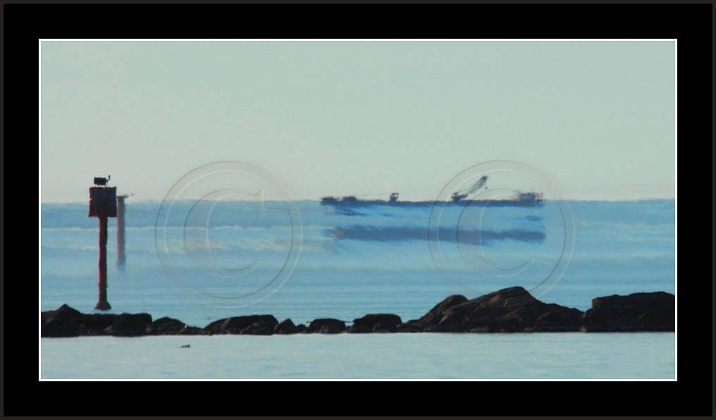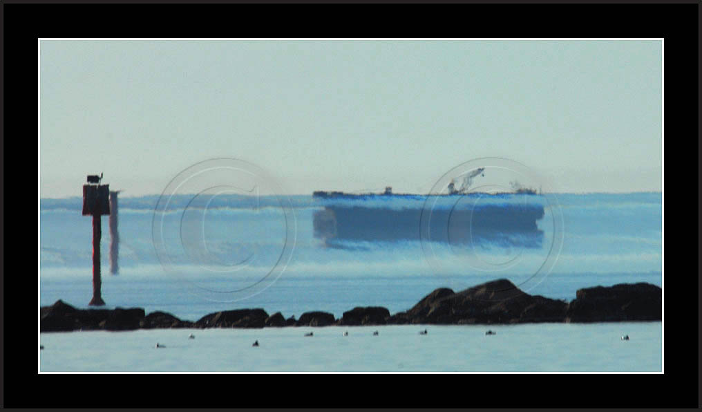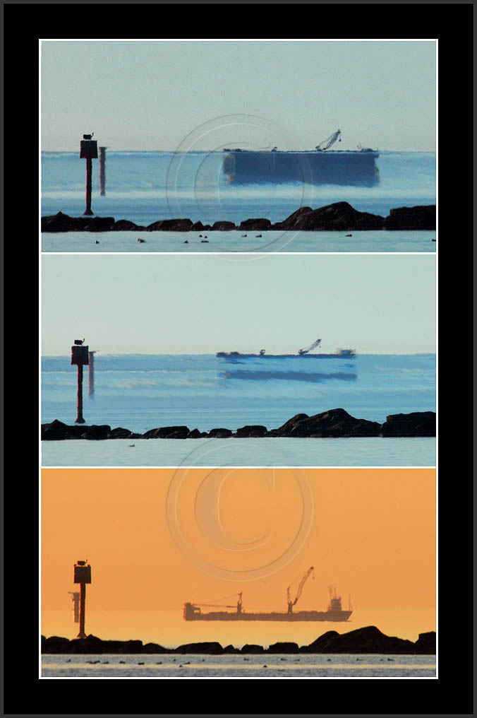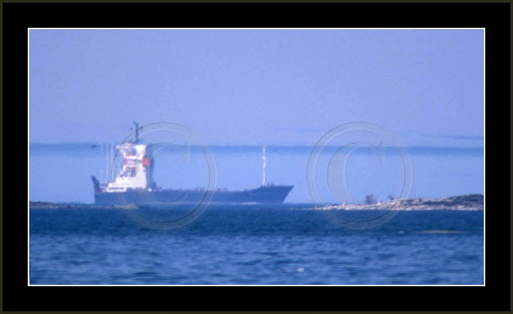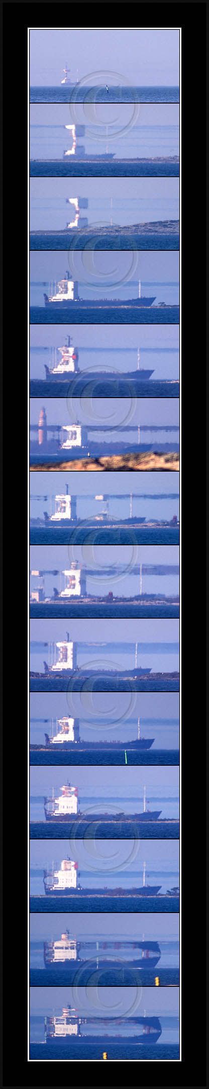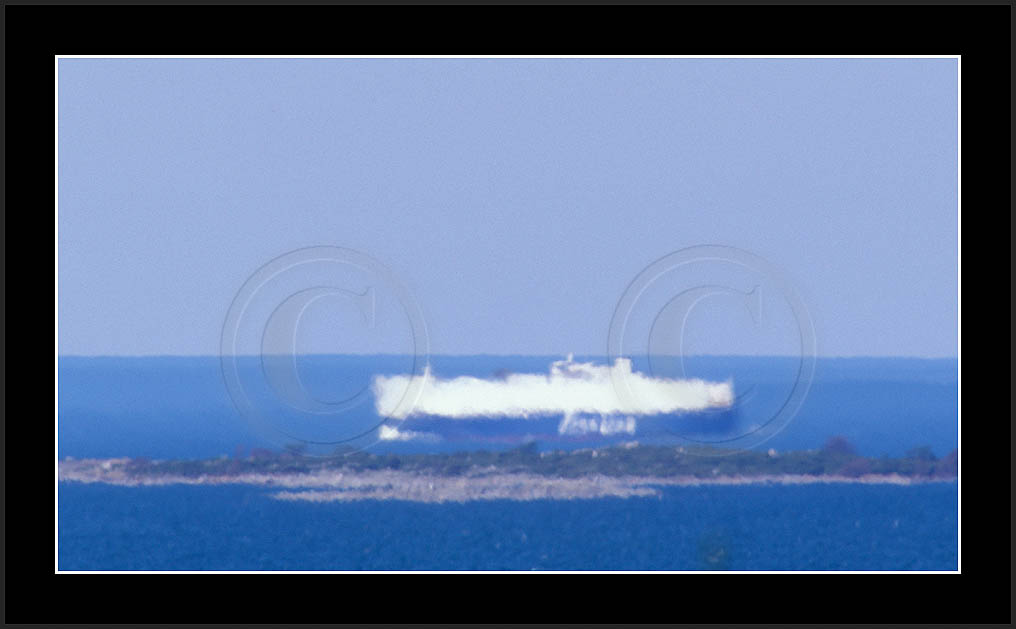 In the middle of the page a most dramatic display is posted. This is by far my best ever sequence of a superior mirage, rich in details and of good contrast. In this case the ship approached from far away and passed at close distance (10km) allowing a good view and a lot of different shapes due to changing distance. This mirage was recorded also with video and is posted in video section.