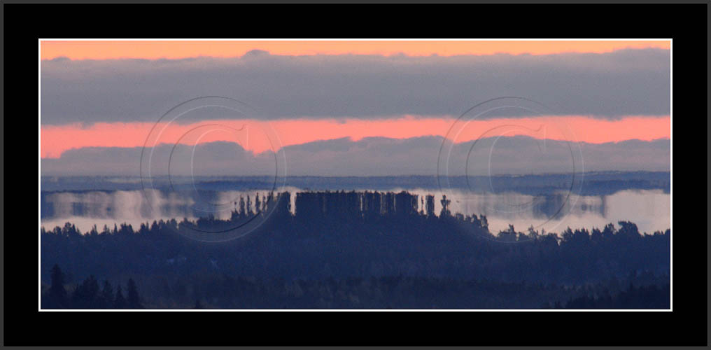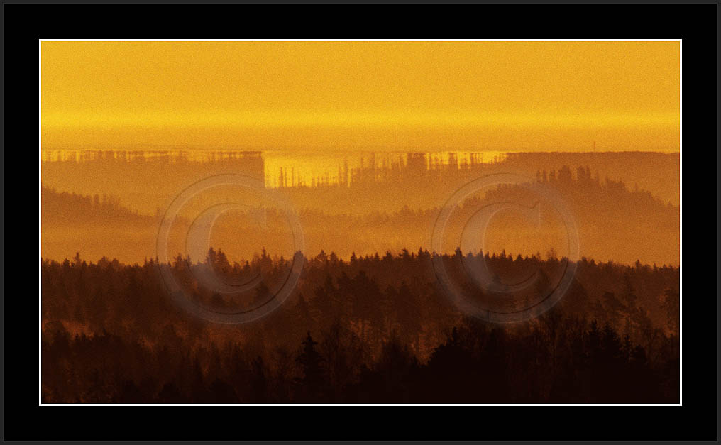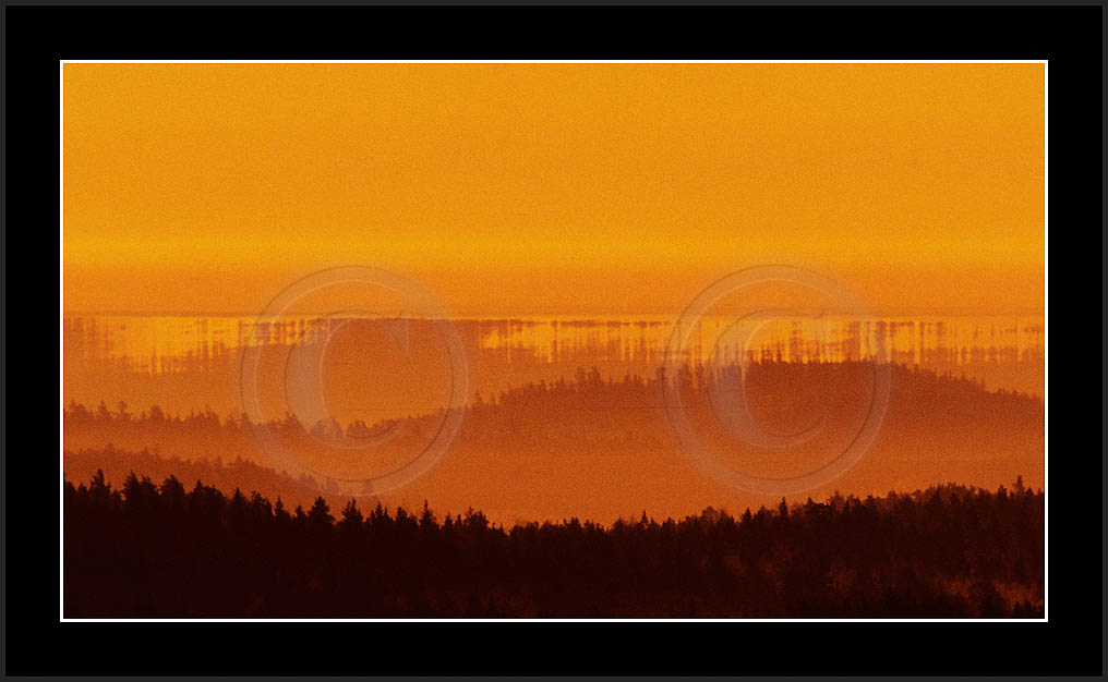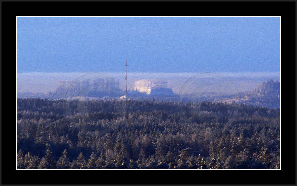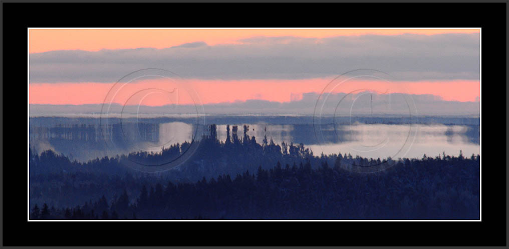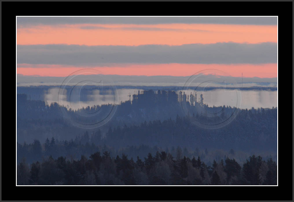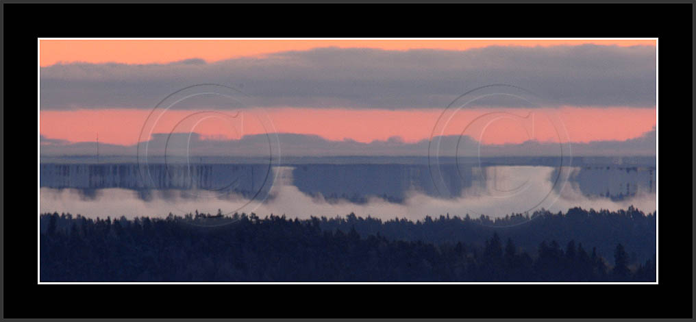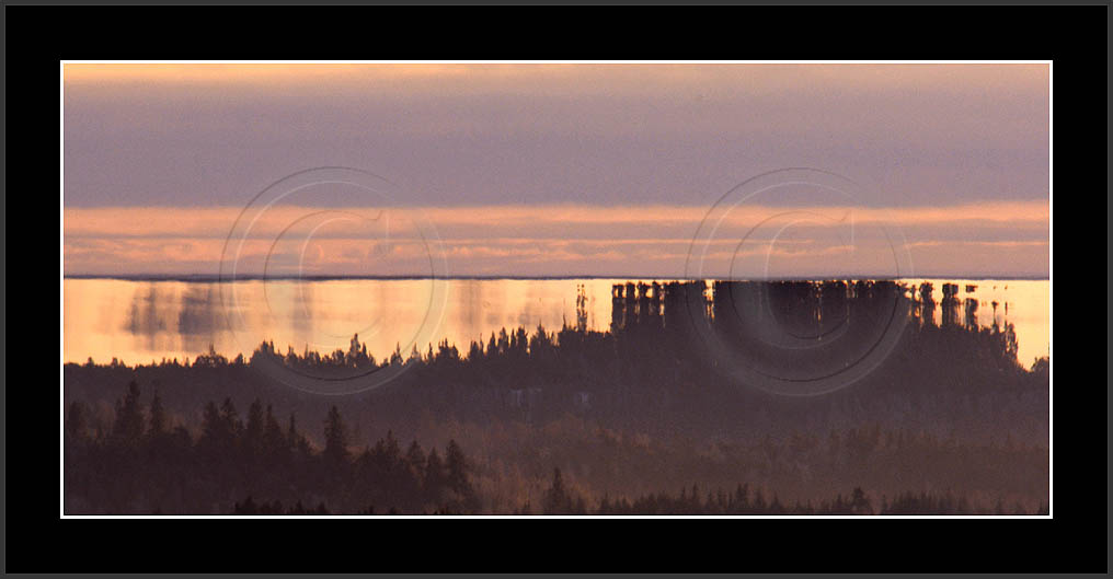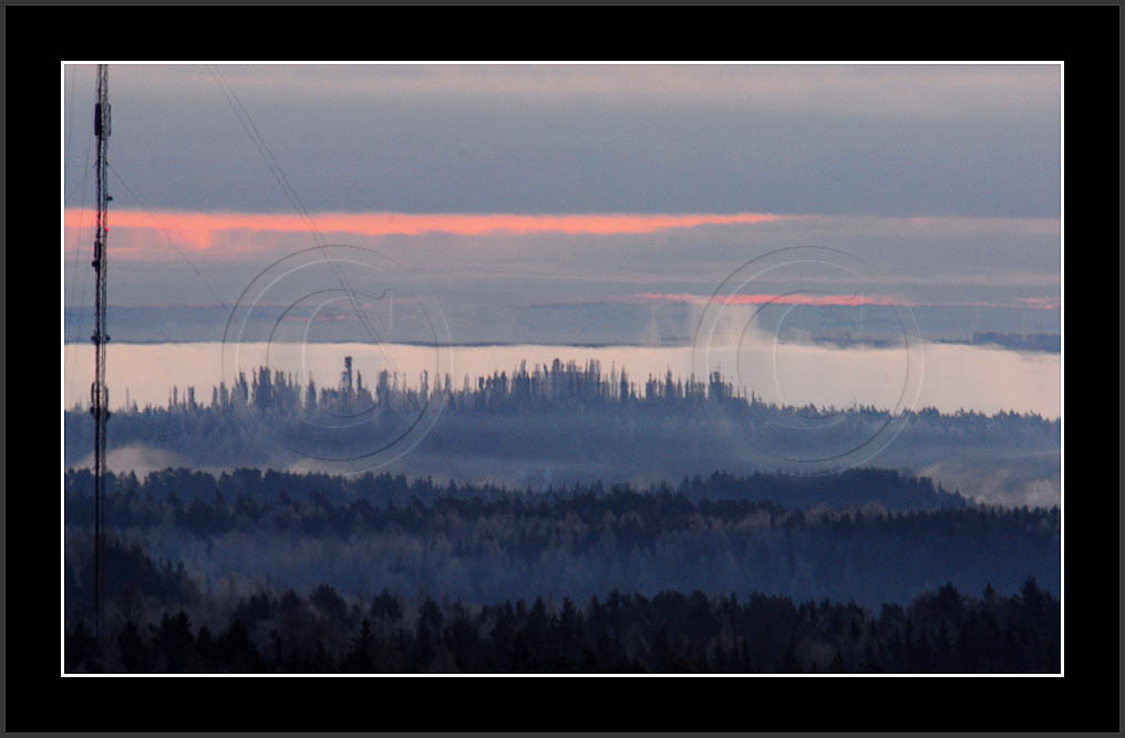 Open sea and large lakes are 'famous' of their (superior) mirages. Perhaps these phenomena are more frequent over water and perhaps stories of ghost ships and of Fata Morgana are familair and too thrilling leaving less interest in land observations. However, cold and calm winter mornings can create nice displays of distant tree lines as shown on this and on the next page. Note also how fog is miraging between tree lines.
