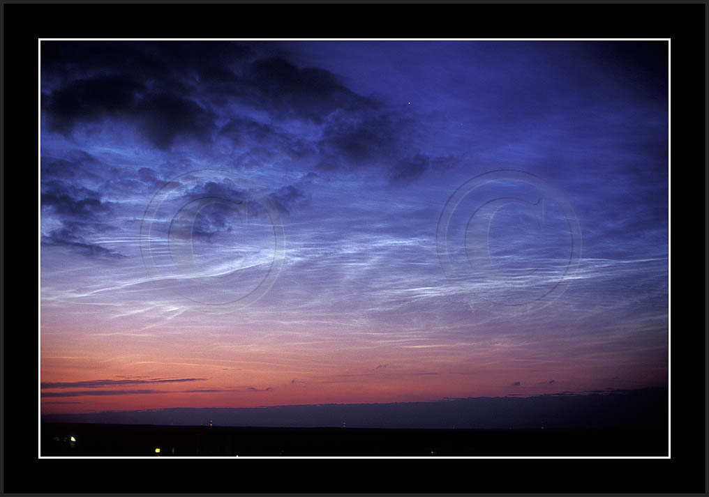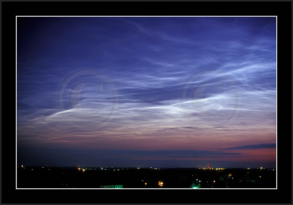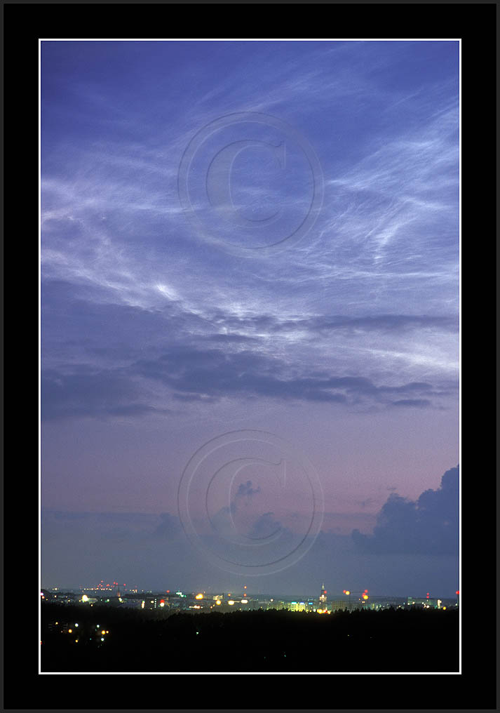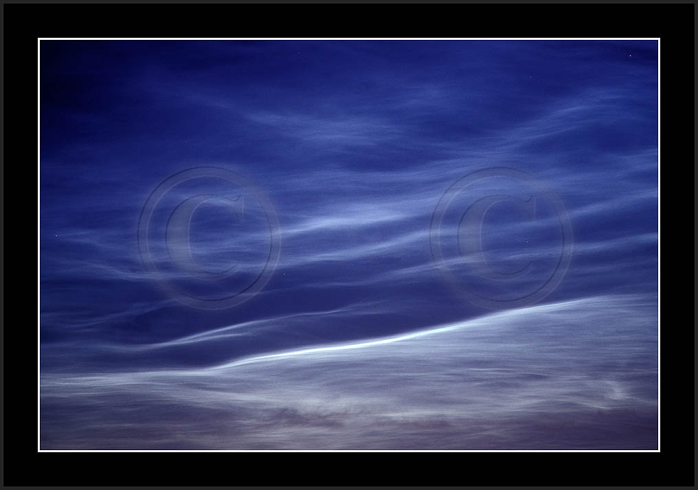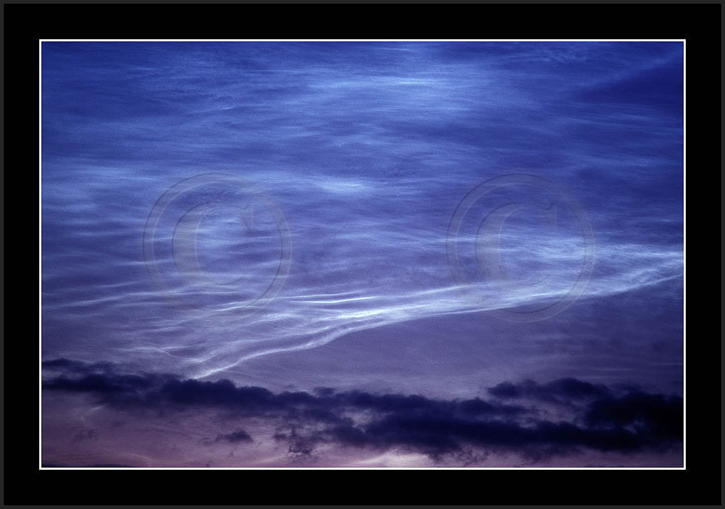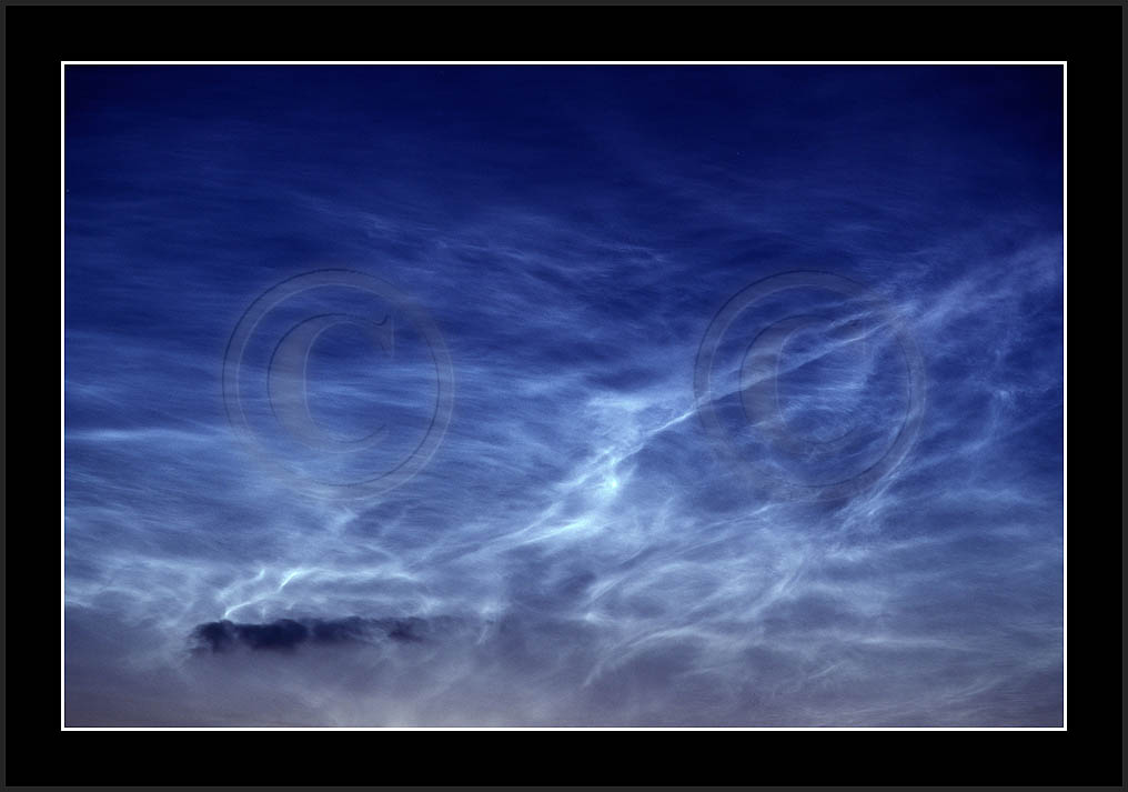 Starting this page July 25/26 shows extremely bright and compact bands. Later the display gave birth to complex structures. In NLC-morphology category IV clouds are named "whirls". One kind of a whirl can be identified in images vy28923 and vy28932. Whirls are defined as "partial or complete rings of cloud with dark centres", but it is also stated that "they are sometimes seen in veil, band and billow forms" - so much of the "dark centres"!