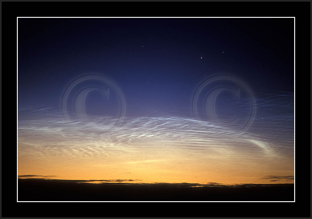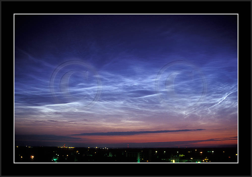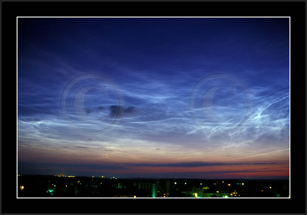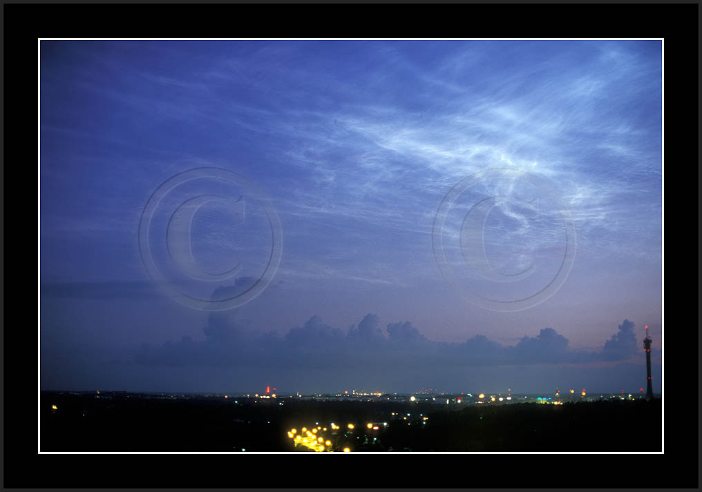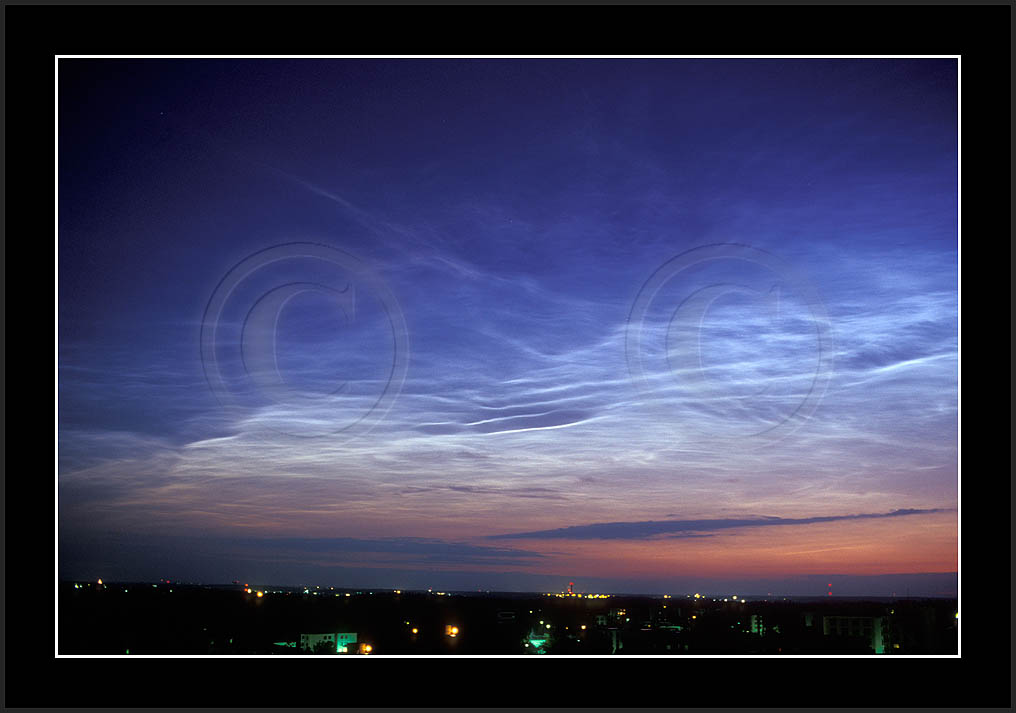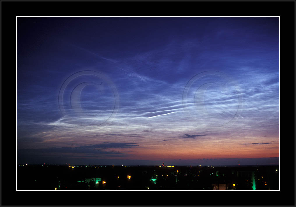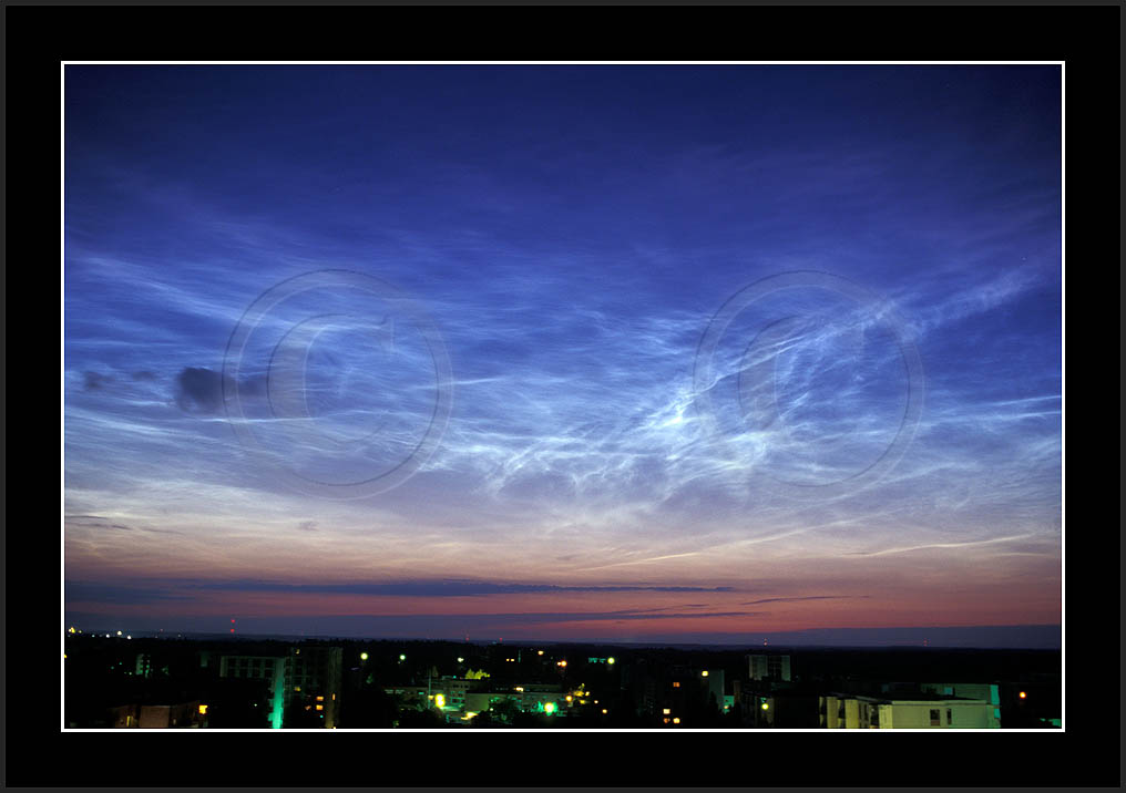 Starting this page July 25/26 shows extremely bright and compact bands. Later the display gave birth to complex structures. In NLC-morphology category IV clouds are named "whirls". One kind of a whirl can be identified in images vy28923 and vy28932. Whirls are defined as "partial or complete rings of cloud with dark centres", but it is also stated that "they are sometimes seen in veil, band and billow forms" - so much of the "dark centres"!