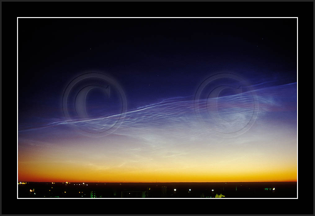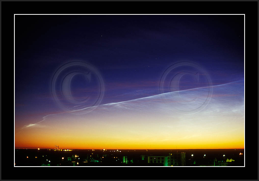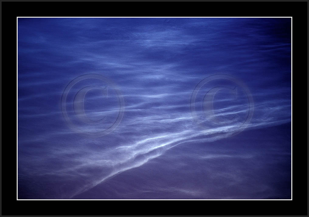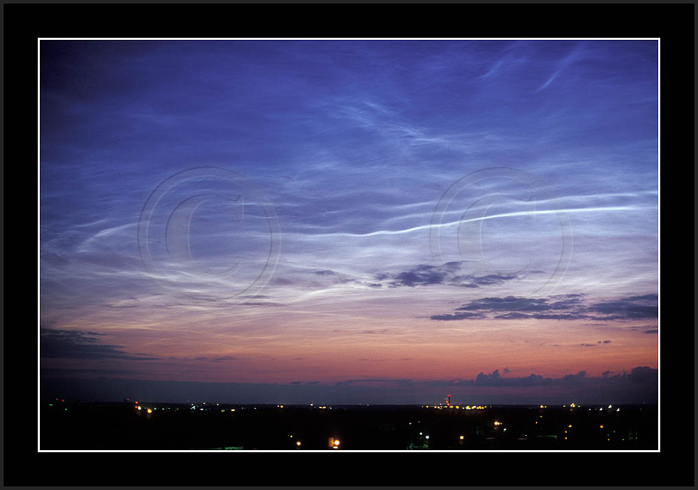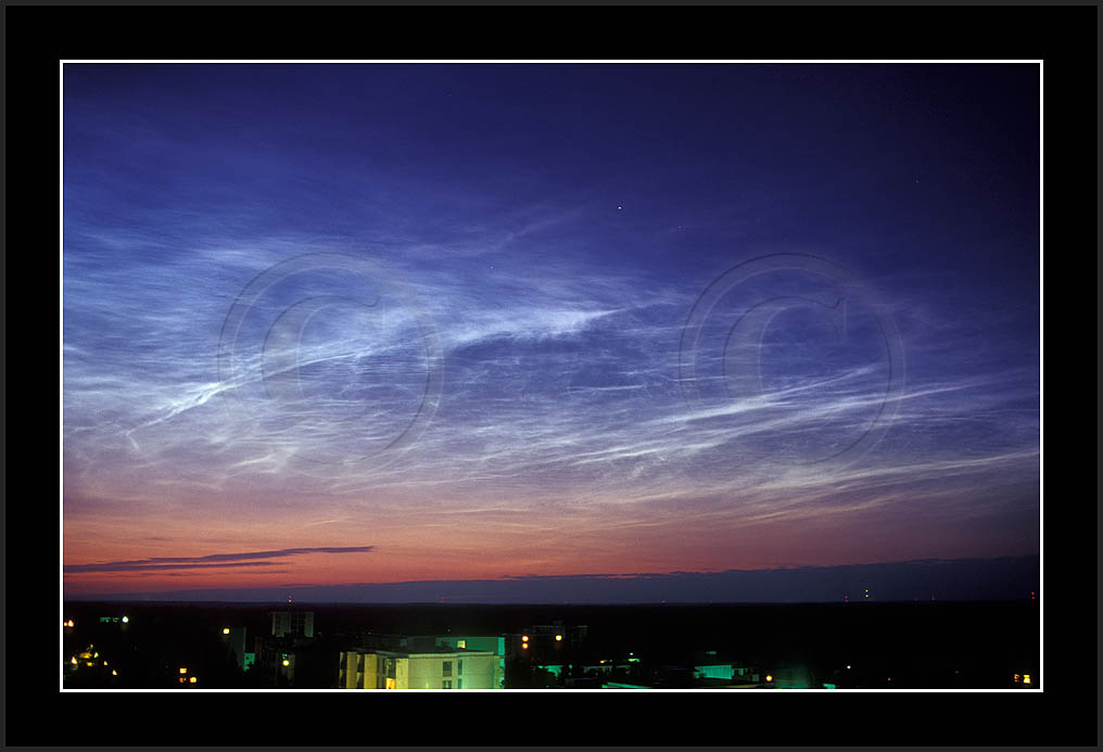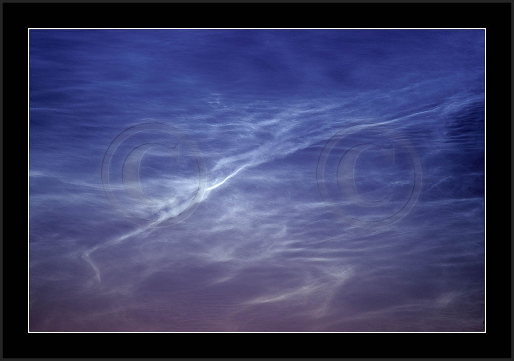 Starting this page July 25/26 shows extremely bright and compact bands. Later the display gave birth to complex structures. In NLC-morphology category IV clouds are named "whirls". One kind of a whirl can be identified in images vy28923 and vy28932. Whirls are defined as "partial or complete rings of cloud with dark centres", but it is also stated that "they are sometimes seen in veil, band and billow forms" - so much of the "dark centres"!
