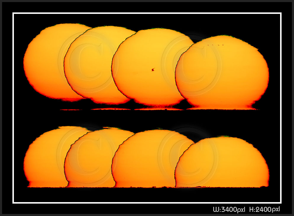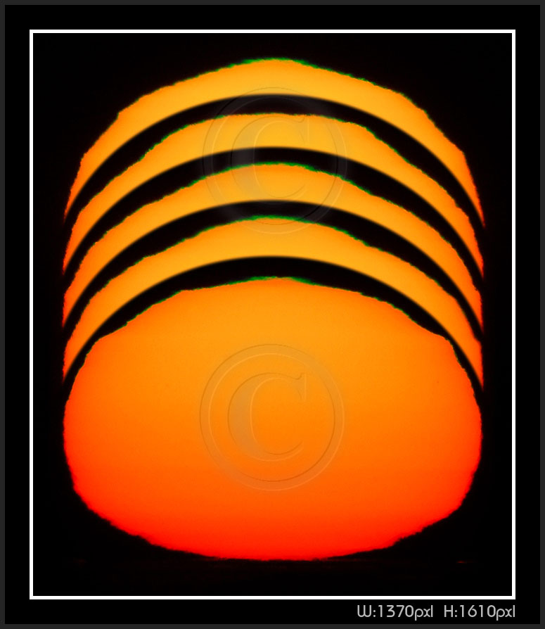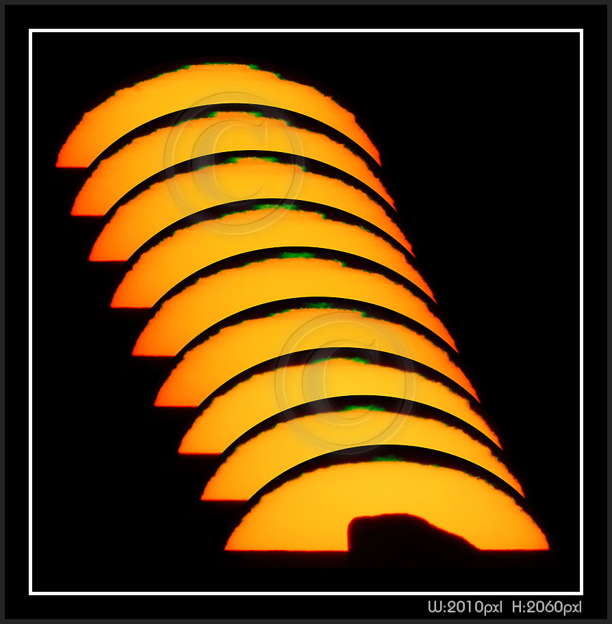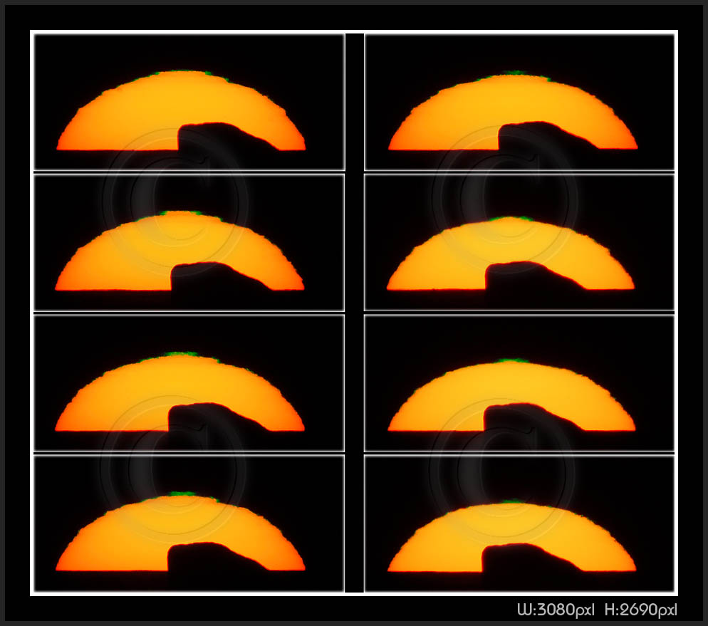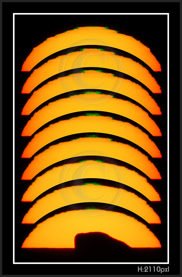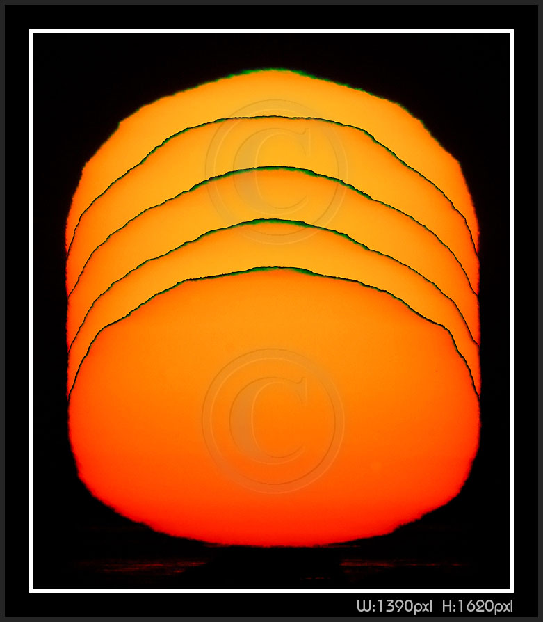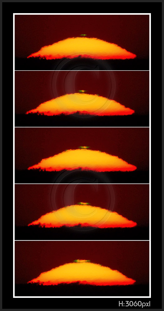 So, my solar distortion and green flash are now digital. Next thumbnail pages have been photographed 2009 on my new vantage point at sea level. Here is a number of facts to keep in mind while going through pictures.