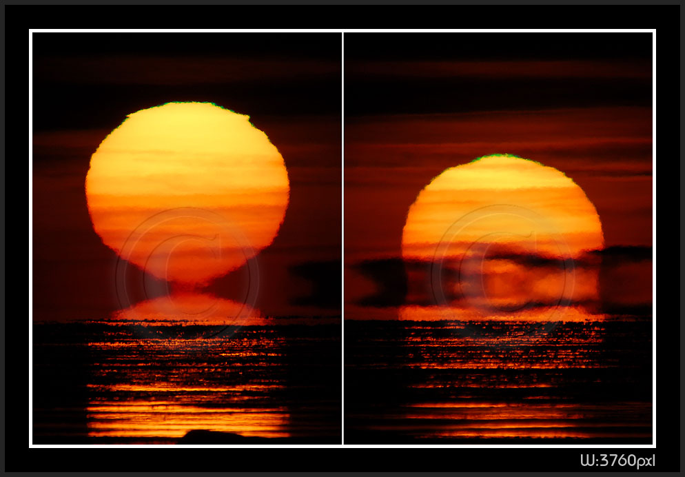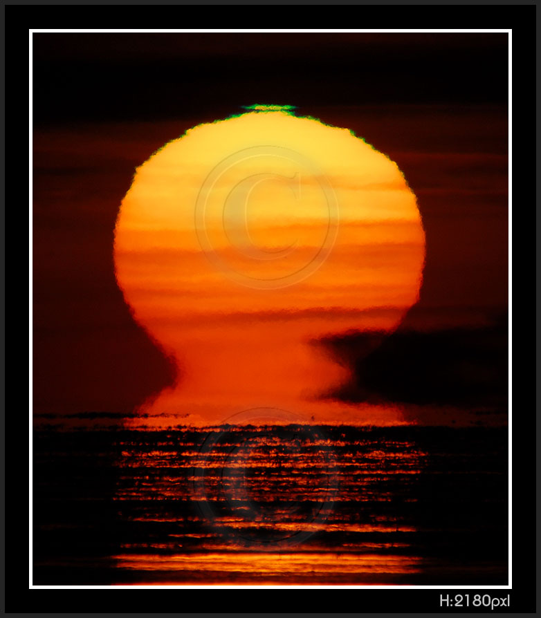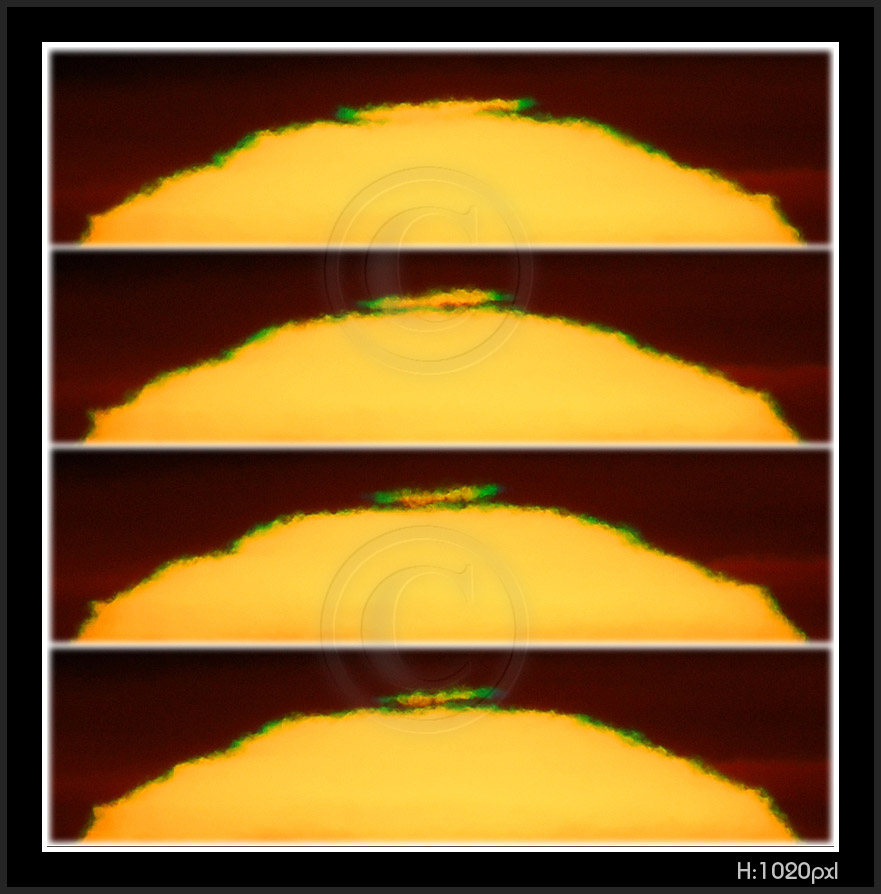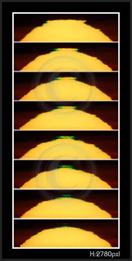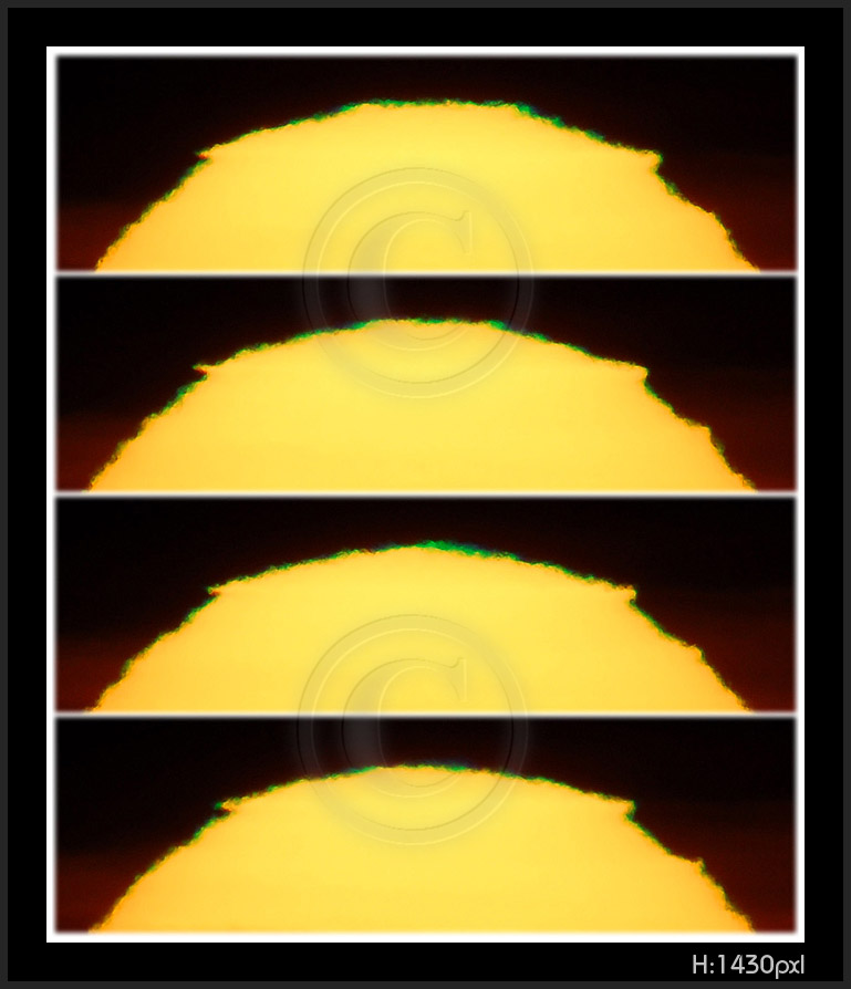 So, my solar distortion and green flash are now digital. Next 7 thumbnail pages have been photographed 2009 at my new vantage point at sea level. Here is a number of facts to keep in mind while going through pictures.